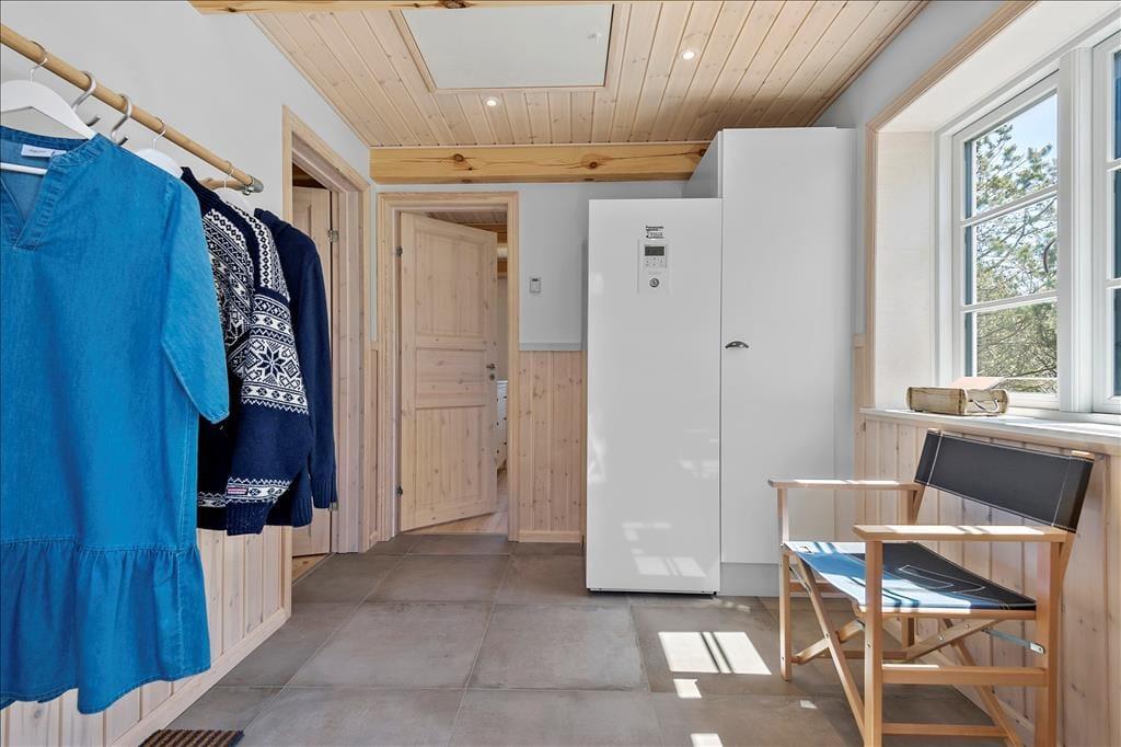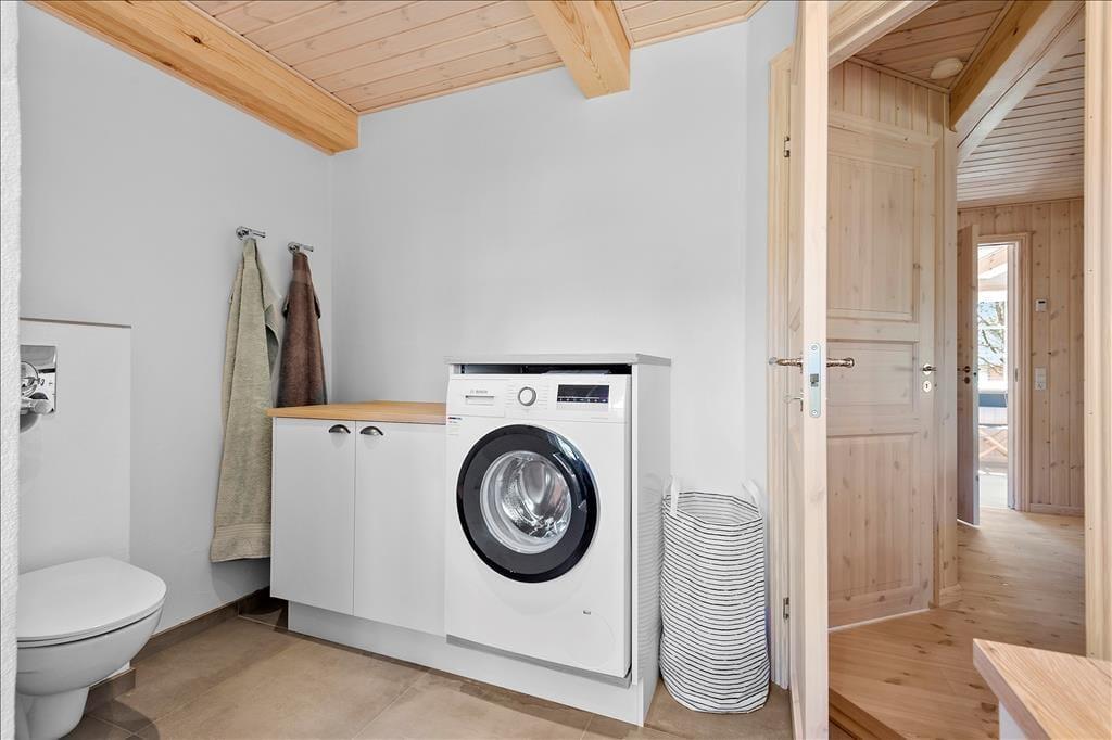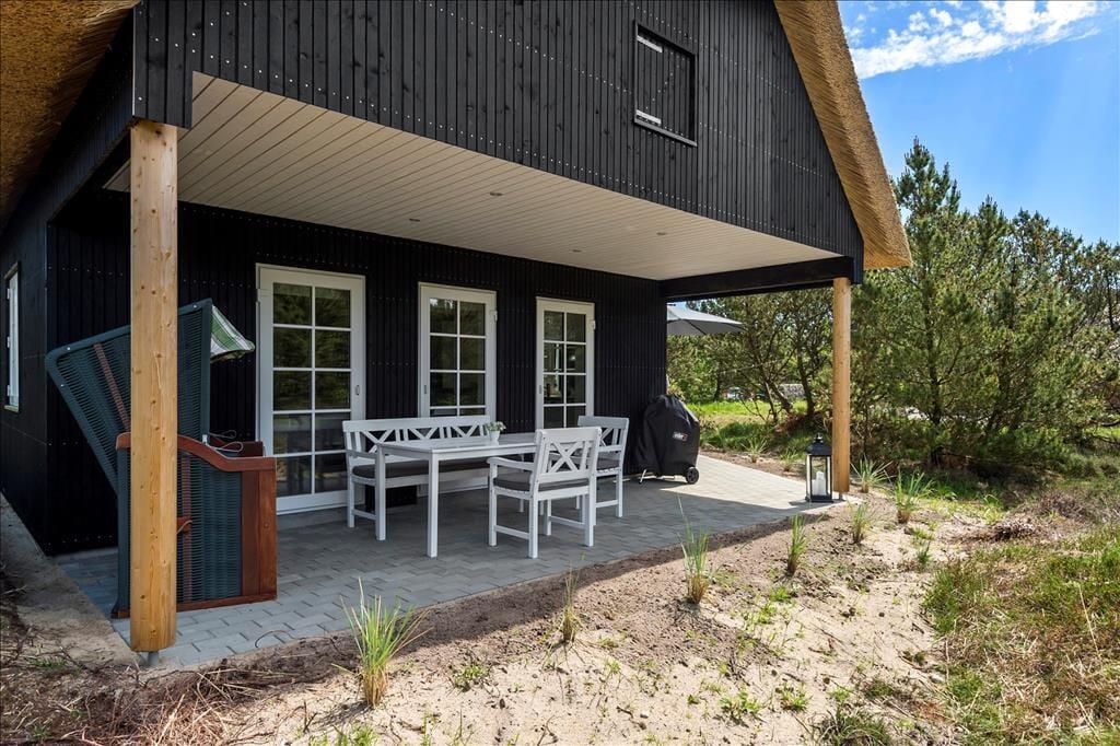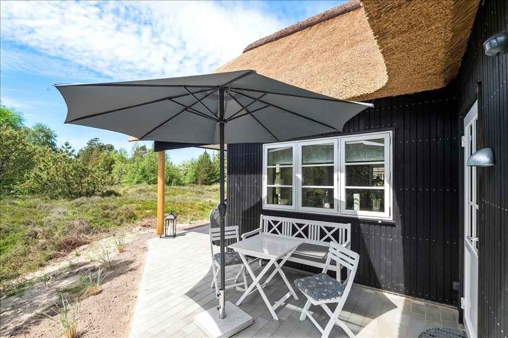 Rundt om sommerhuset er der flere fliseterrasser at vælge imellem. Den vestvendte er overdækket, hvis I søger skygge, men I har også rig mulighed for at finde en dejlig opholdsplads i solen. Uanset hvor I sætter jer, kan I nyde de fredfyldte omgivelser og udsigten til den vilde bevoksning på den 2.000 m2 store naturgrund.