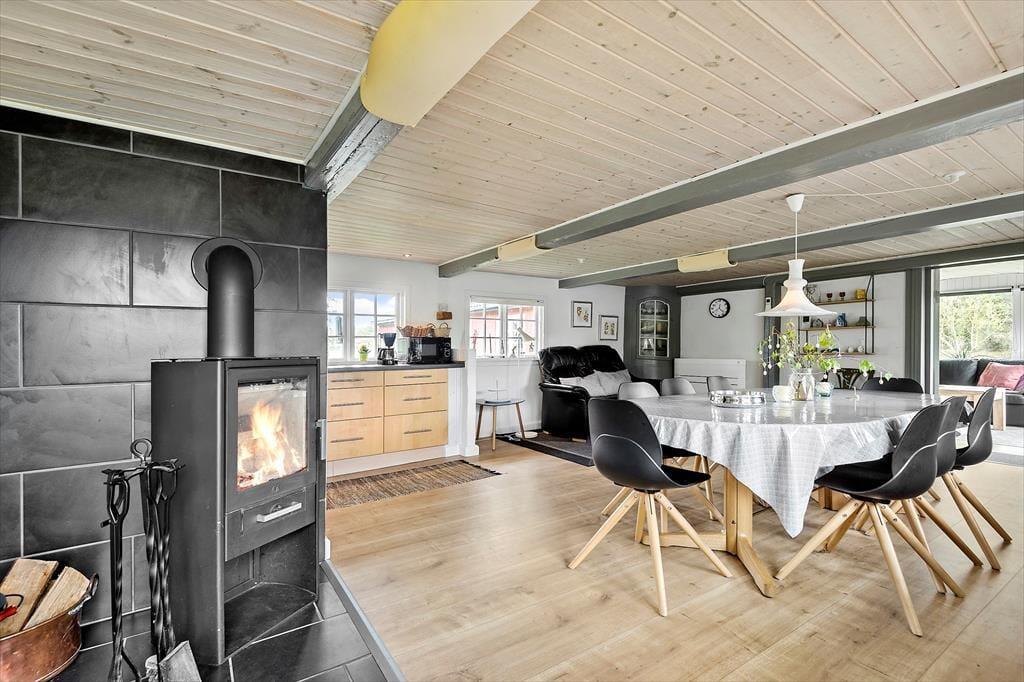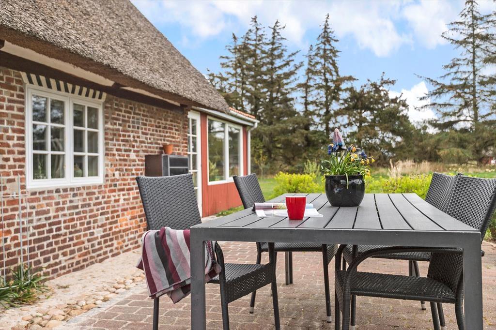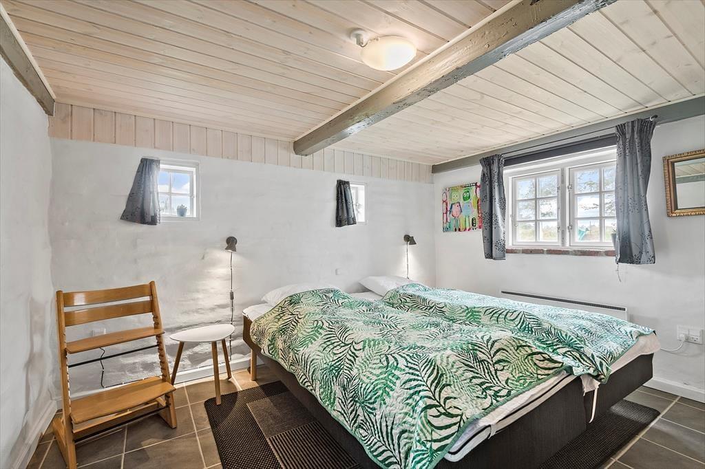 Den stråtækte murstensejendom har en historie, der går langt tilbage, men særligt inden for de seneste år er der sket en del forandringer. I 2018 blev huset nemlig grundigt renoveret, så du kan se frem til at holde ferie i lækre og komfortable rammer – med alskens hvidevarer i det veludstyrede køkken, gulvvarme på badeværelset og varmepumpe i stuen. Opdateringen er sket med respekt for den oprindelige byggestil, så markante loftsbjælker og andre fine detaljer kan stadig ses i de atmosfærefyldte rum, og som det kan forventes af et hus fra den tid, er loftshøjden under træbjælkerne visse steder cirka 180 cm. I stueetagen er køkkenet integreret med en dejlig spisestue med brændeovn, og herfra kan du træde ind i en skøn opholdsstue med bløde sofaer og store vinduespartier. To soveværelser og det førnævnte badeværelse ligger også i stueplan, mens førstesalen byder på yderligere to soveværelser og et hyggeligt gennemgangsrum.