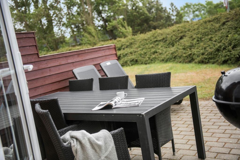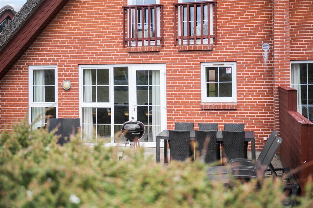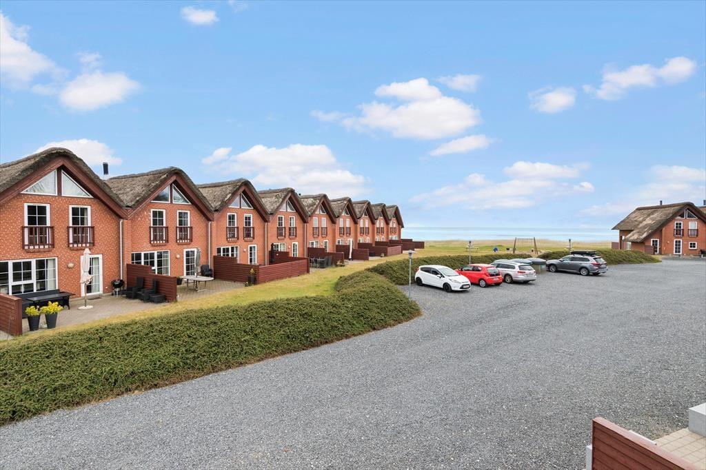 Fra køkken-alrummet har du direkte adgang til en stor fliseterrasse, hvor du kan sole dig i liggestolene, grille og hygge dig omkring havebordet. På den anden side af huset er der et mindre terrasseareal, og fra førstesalens stue kan du træde lige ud på en overdækket altan, hvor der også er godt at være. Ved huset er der gode parkeringsforhold, og på det grønne fællesareal er der legefaciliteter til børnene og bord-bænke-sæt, hvor du kan sidde og nyde udsigten over Vadehavet.