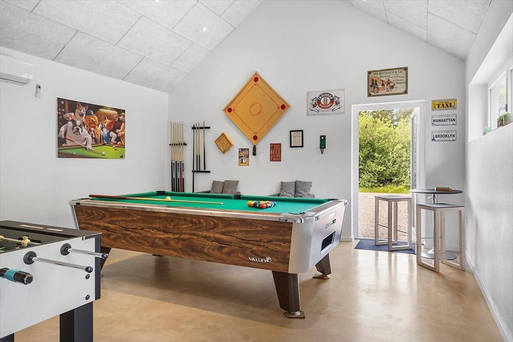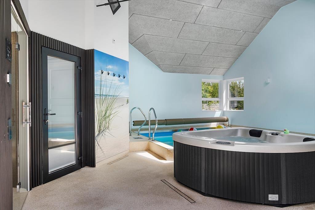 Ferien kommer til at udspille sig i lækre og afslappende omgivelser, når den foregår i dette dejlige og flot renoverede sommerhus, der kan prale af at have en stor pool afdeling og masser af plads til 18 personer.