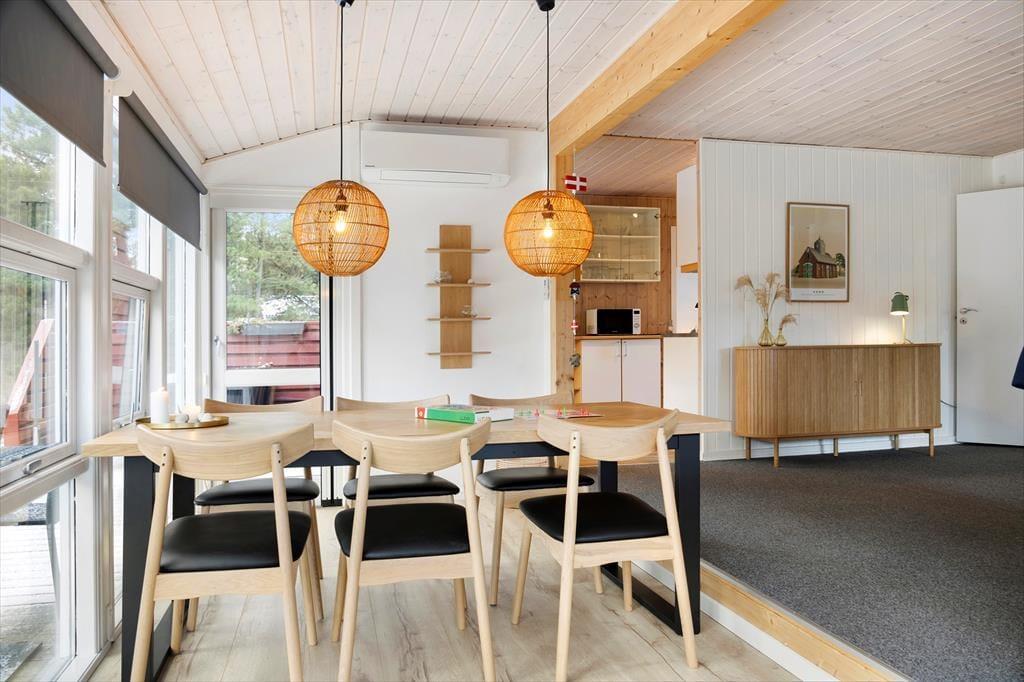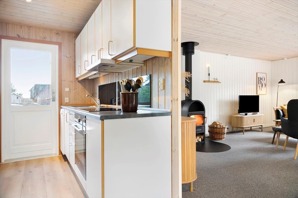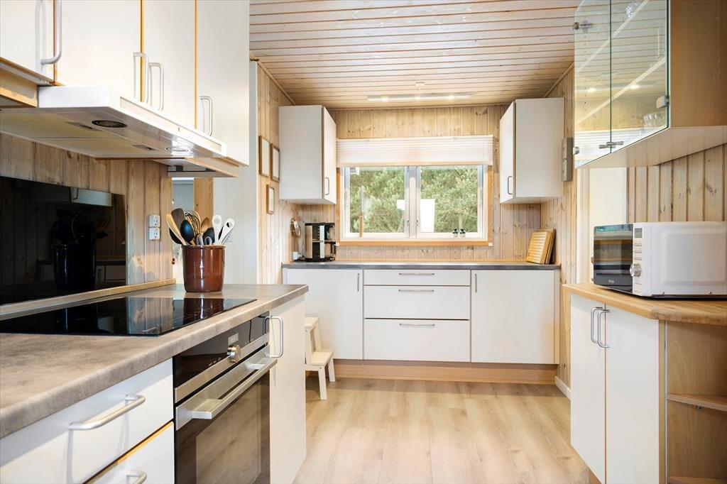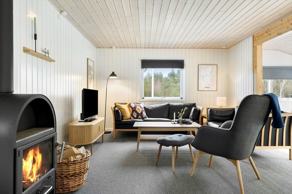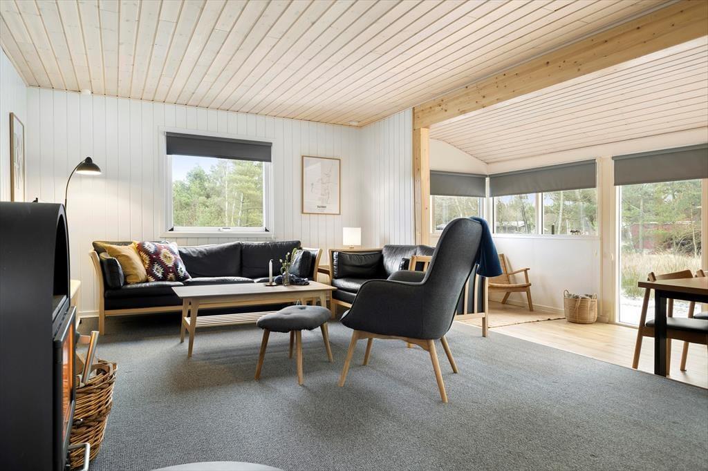 Sommerhuset præsenterer sig med en indbydende atmosfære, der straks får dig til at føle dig velkommen. Indenfor finder du et lyst og åbent rum, hvor møblerne er valgt for at skabe en hygge, der indbyder til afslapning. Store vinduer lukker solens stråler ind og giver udsigt til den dejlige naturgrund, hvor du måske engang imellem bemærker et rådyr eller en hare. Stuen bliver nok et naturligt samlingspunkt for familien, hvor der kan spilles brætspil eller hygges foran brændeovnen, mens regnen trommer let mod ruden. Køkkenet er praktisk indrettet, så madlavningen bliver en fornøjelse, uanset om du tilbereder en hurtig frokost eller en festmiddag. Med flere soveværelser er der plads til alle, så du trygt kan nyde en god nattesøvn efter en aktiv dag.