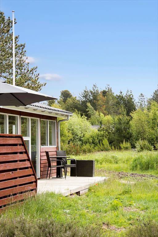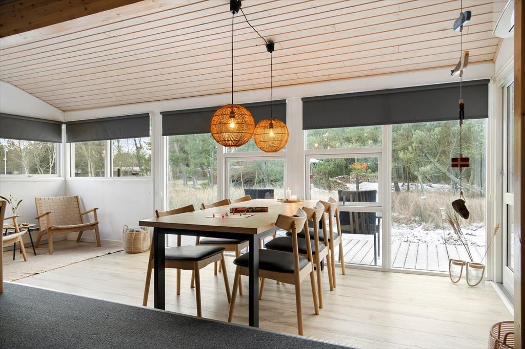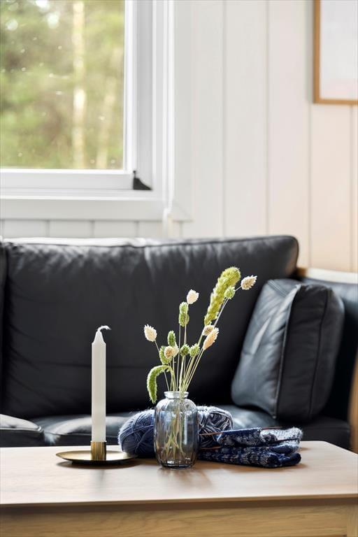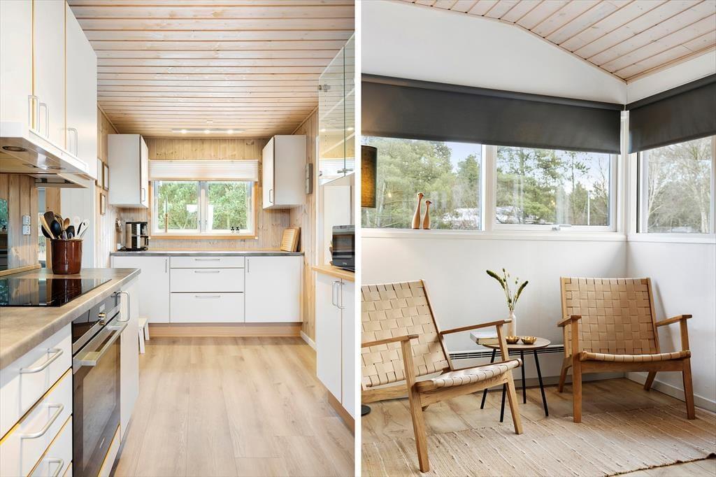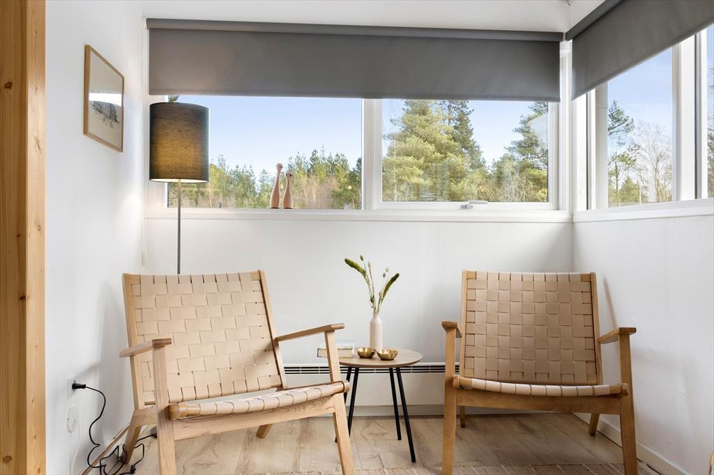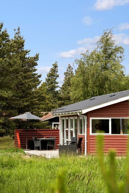 Sommerhuset præsenterer sig med en indbydende atmosfære, der straks får dig til at føle dig velkommen. Indenfor finder du et lyst og åbent rum, hvor møblerne er valgt for at skabe en hygge, der indbyder til afslapning. Store vinduer lukker solens stråler ind og giver udsigt til den dejlige naturgrund, hvor du måske engang imellem bemærker et rådyr eller en hare. Stuen bliver nok et naturligt samlingspunkt for familien, hvor der kan spilles brætspil eller hygges foran brændeovnen, mens regnen trommer let mod ruden. Køkkenet er praktisk indrettet, så madlavningen bliver en fornøjelse, uanset om du tilbereder en hurtig frokost eller en festmiddag. Med flere soveværelser er der plads til alle, så du trygt kan nyde en god nattesøvn efter en aktiv dag.