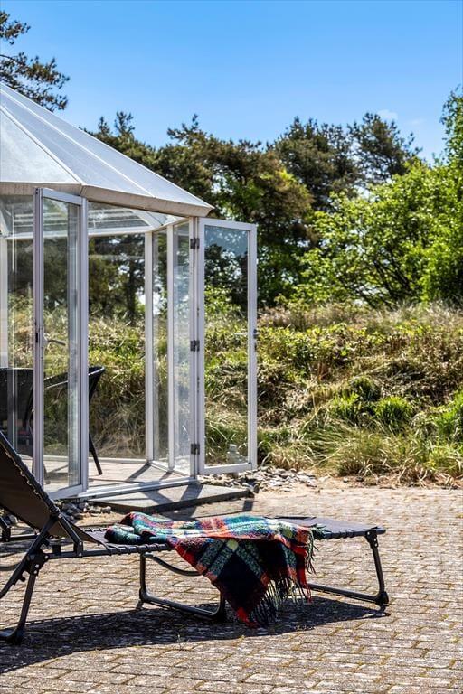 Med en naturgrund på hele 2652 m2 får udendørslivet fine betingelser. Grunden glider naturligt ind i det omgivende landskab, hvor husene ligger spredt med god afstand imellem sig. Her kan du nyde ferieidyllen på ugeneret vis, og der er mange hyggelige kroge, hvor du kan slappe af i solen og den friske luft. Der medfølger blandt andet en pavillon og en overdækket bålplads. På den store terrasse mod syd kan du dække op til hyggelige frokoster i det fri, og familiens yngste vil med sikkerhed elske at lege i de tilbagelænede omgivelser. Drømmer du om fred, ro og flot natur på ferieturen, er dette uden tvivl en ideel beliggenhed.
