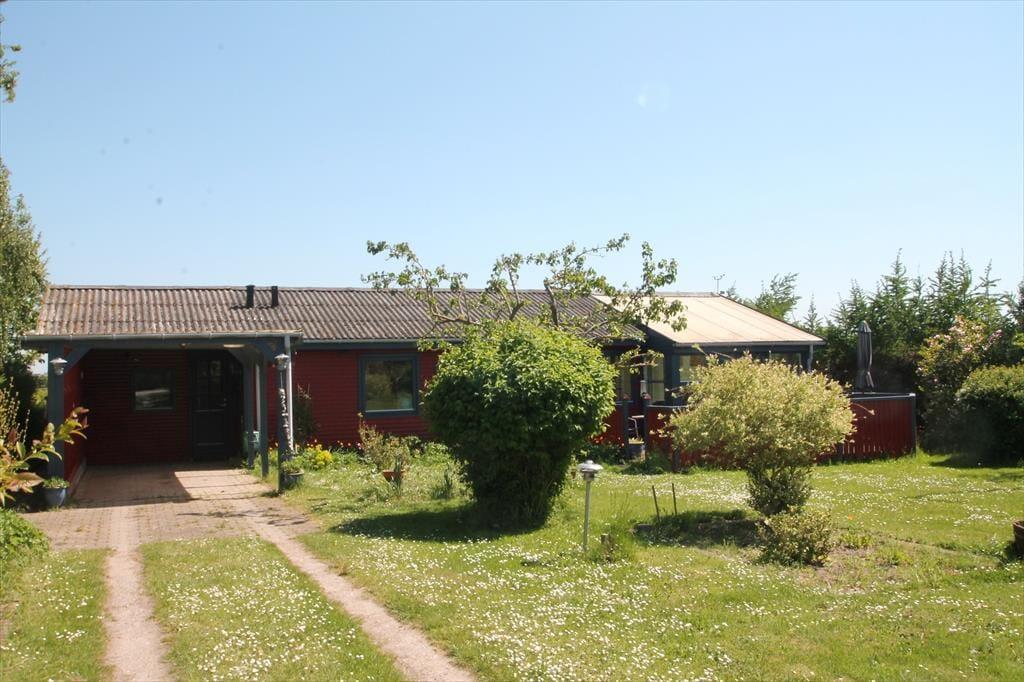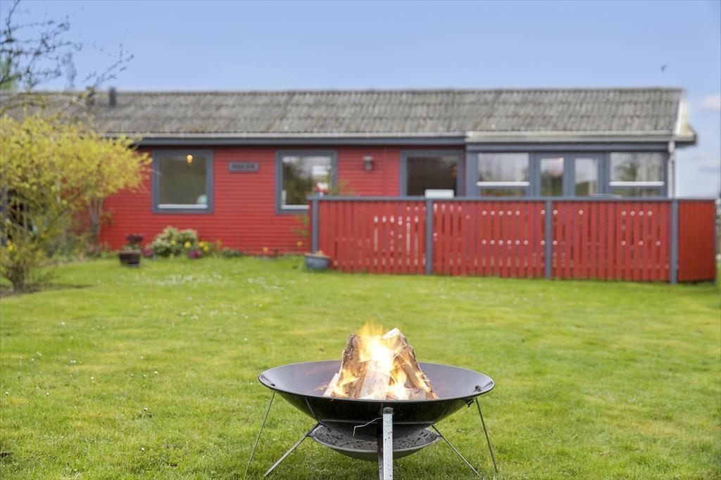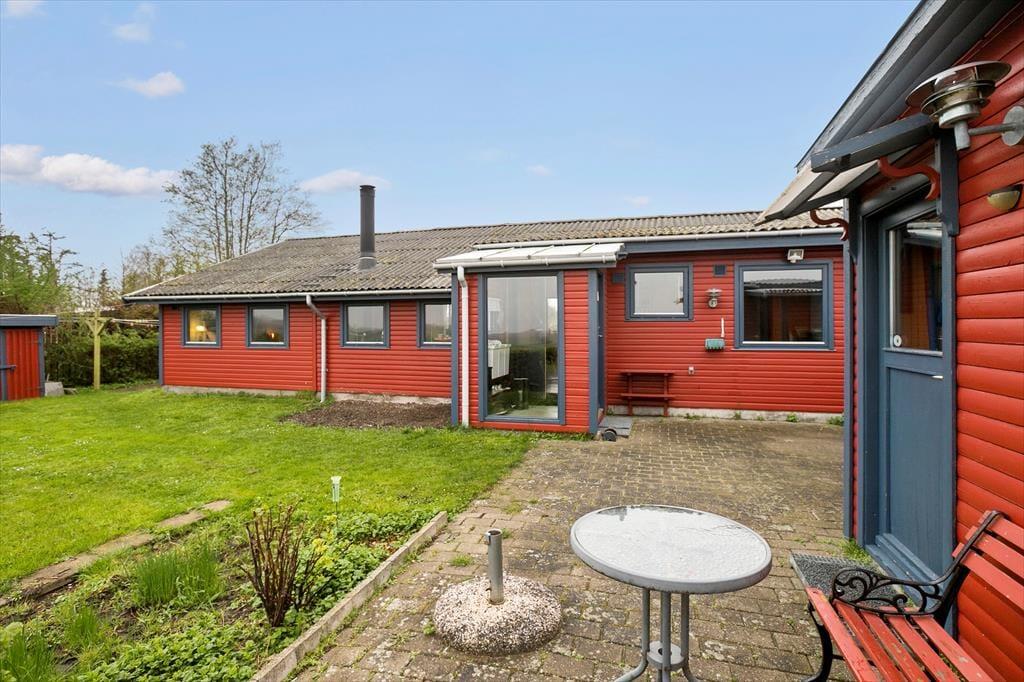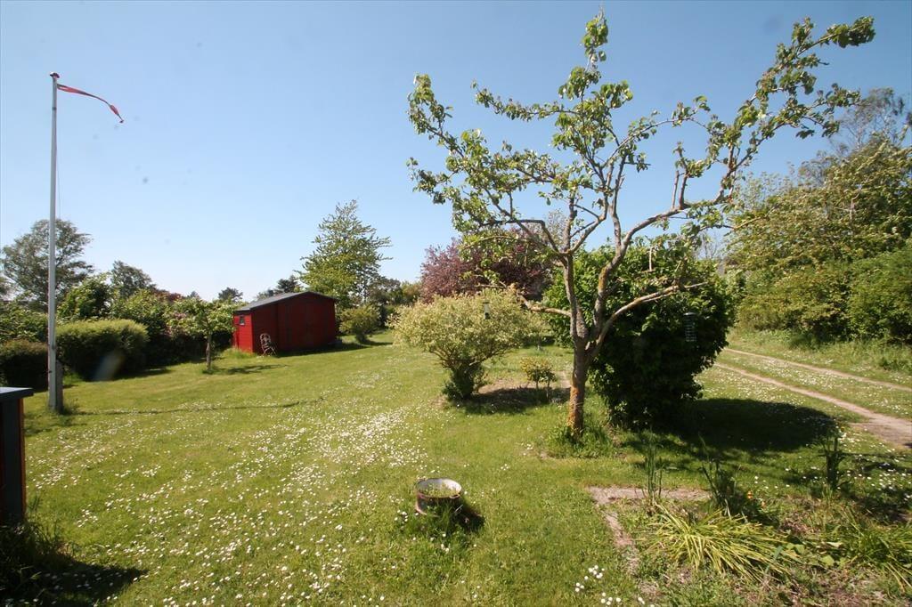Huset har en 1.130 m2 stor grund, med en ugeneret have, en vestvendt afskærmet Træterrasse som inviterer til total afslapning. Desuden er der en åben østvendt fliseterrasse hvor morgensolen kan nydes. Ved huset er der havemøbler, parasol, grill, bålfad og diverse spil