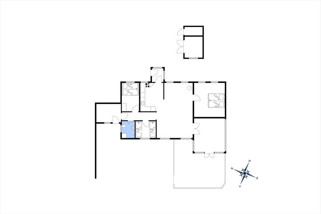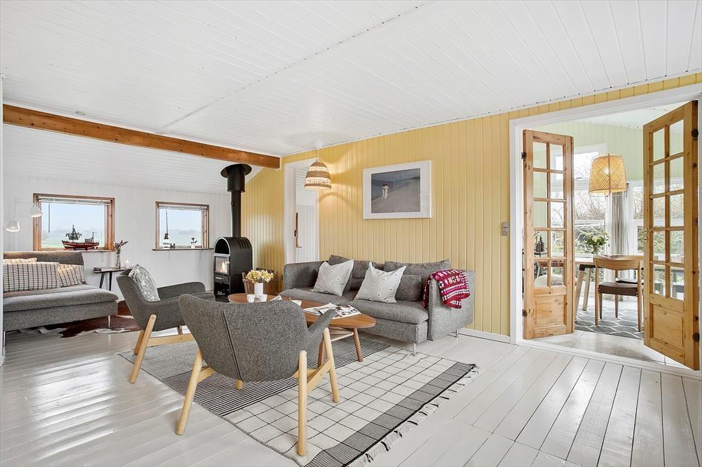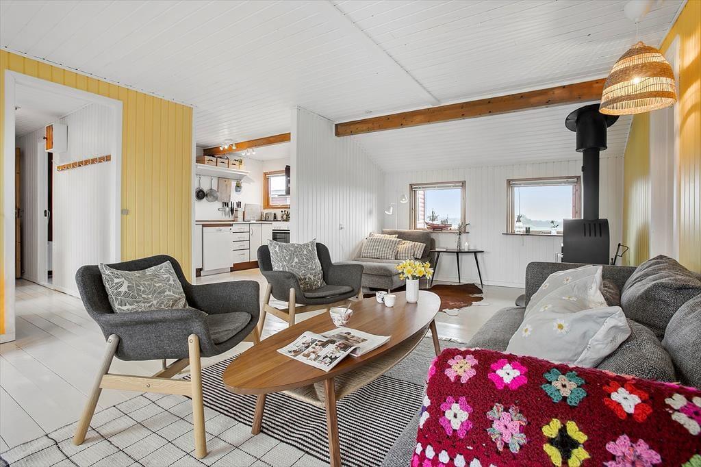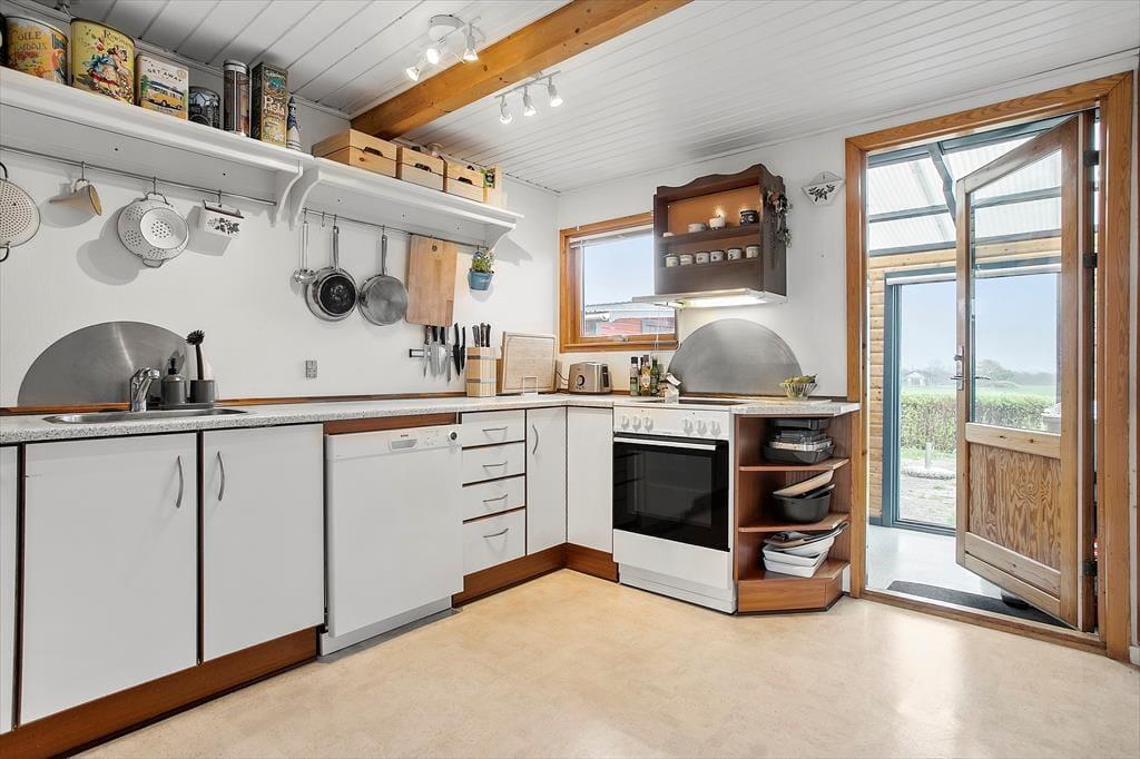 Feriehuset som er delvist renoveret i 2023, er helårsanvendeligt og indeholder kombineret køkken og opholdsstue. Køkkenet toner frem i et enkelt, rent design med hvide fronter og indeholder keramisk komfur, opvaskemaskine, mikroovn og køleskab. Opholdsstue med loft til kip, store vinduespartier som giver masser af lys i huset, sofa og lænestole, brændeovn og TV med danske DR programmer (via app) på TV og Chromecast med adgang til streamingtjenester (kræver eget login). I forbindelse med opholdsstuen er der en 14 m3 integreret udestue med store glaspartier, som kan benyttes det meste af året, hyggelig spiseplads, og med udgang til terrassen, Badeværelse med bruseniche og vaskemaskine. Tre soveværelser, To med dobbeltsenge og et med 2 enkeltsenge. Huset opvarmes med varmepumpe, brændeovn og elvarme.