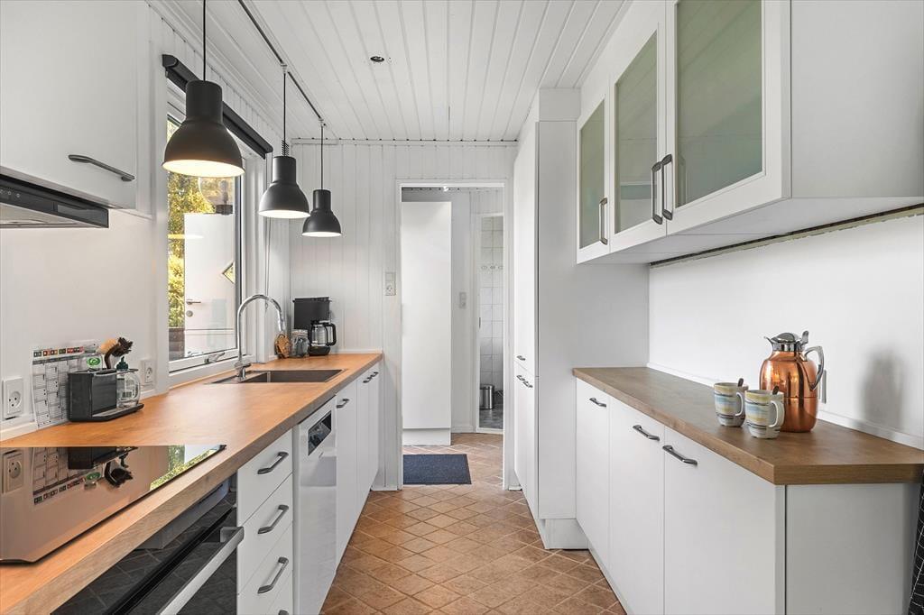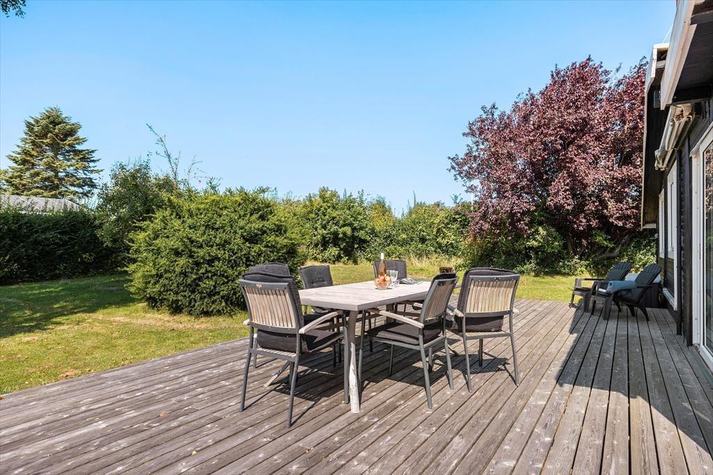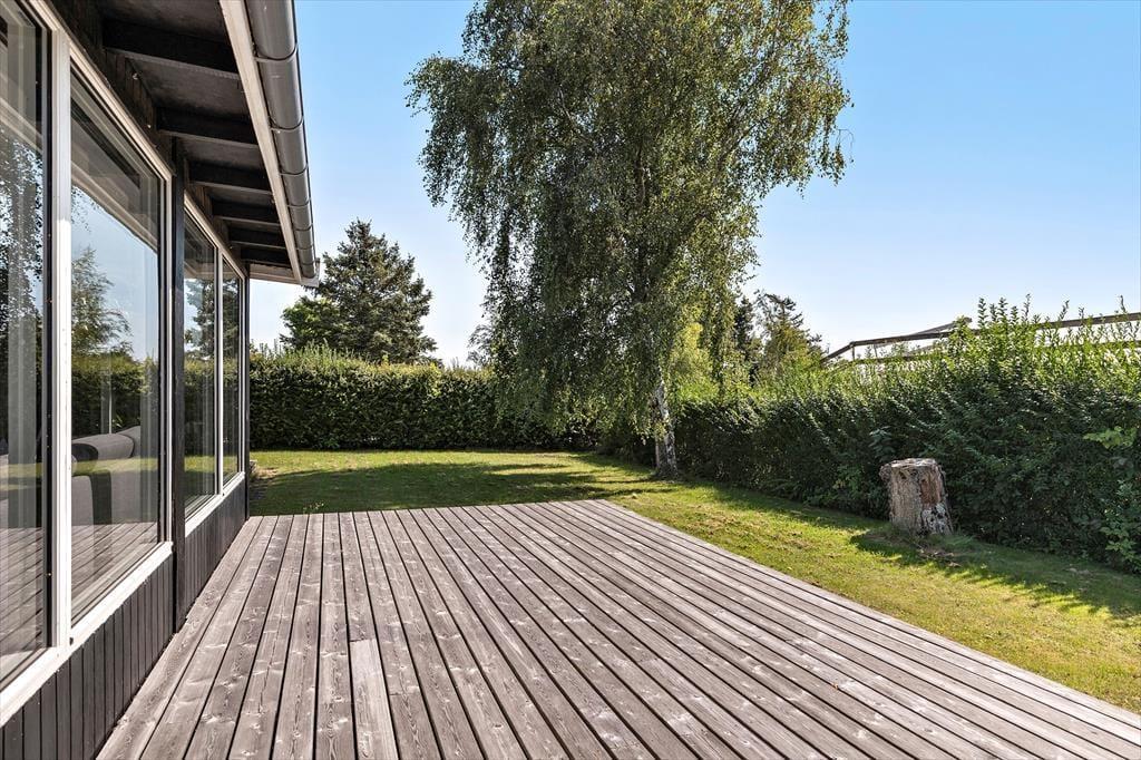 Nyd livet udenfor: Træd ud i den dejlige have eller på den store terrasse, hvor du kan nyde naturen og roen i fulde drag. Huset er placeret i et dejligt roligt sommerhusområde i grønne omgivelser, hvor du kan nyde ferien uforstyrret. Tag også en tur til stranden, hvor du kan nyde en frisk dukkert eller en dejlig strandtur.