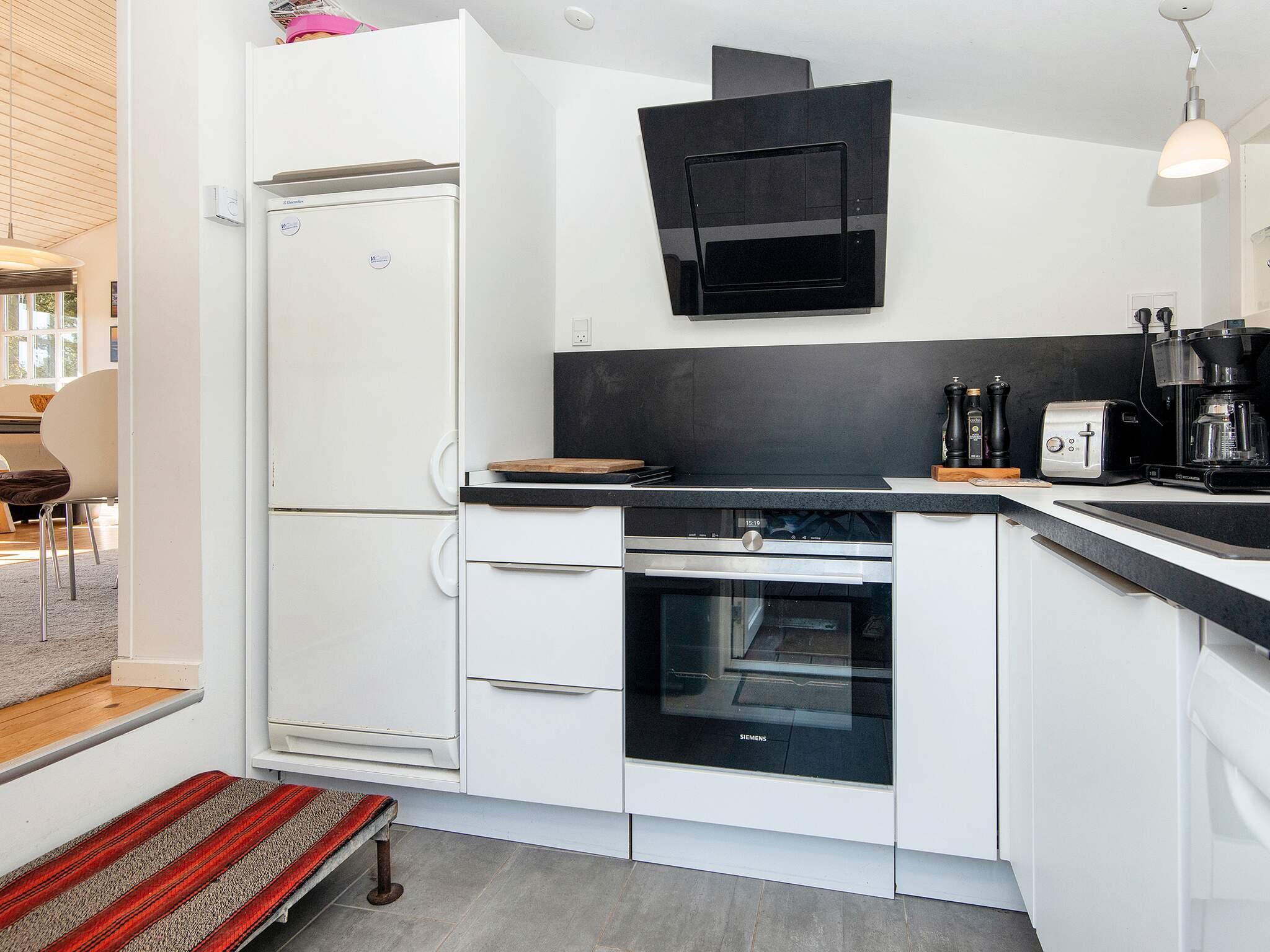 Huset har tre soveværelser: to med dobbeltsenge og et med køjesenge, samt to veludstyrede badeværelser, hvoraf det ene har vaskemaskine og tørretumbler. Huset er udstyret med elvarme og en moderne luft-til-luft-varmepumpe, der sikrer allergivenlig luft og energieffektiv komfort. Fra køkkenet eller stuen er der direkte adgang til en af de tre terrasser – to åbne og en overdækket – der er ideelle til udendørs spisning eller afslapning i naturen.