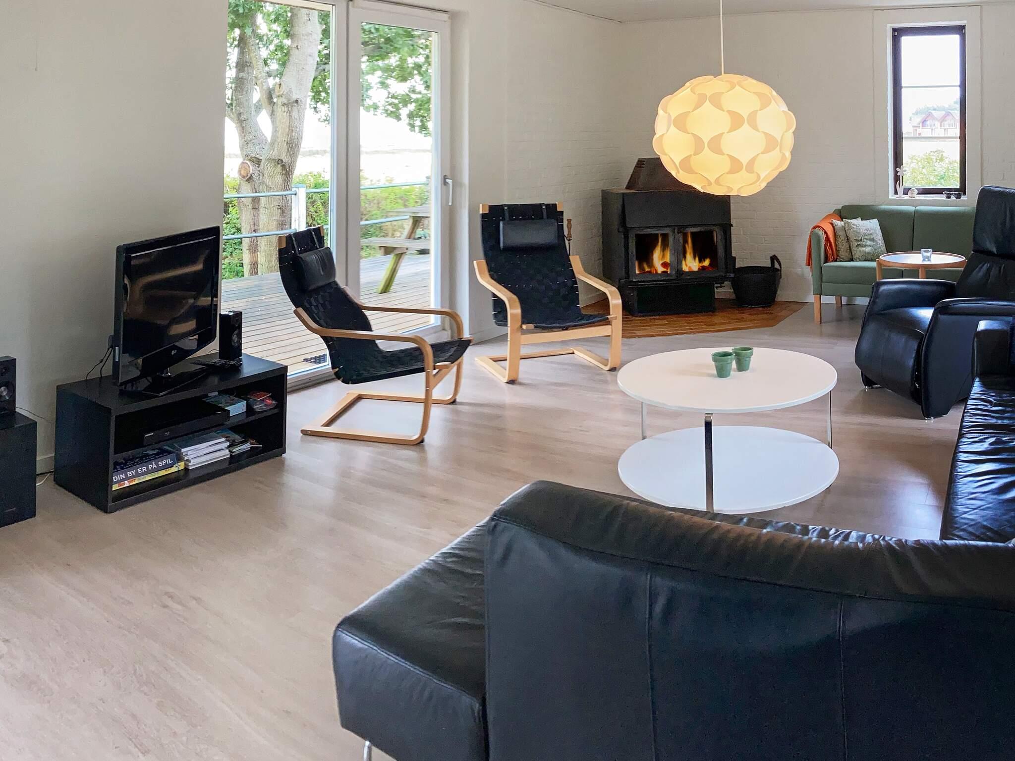 1 Opholdsstue: Brændeovn, stereoanlæg med cd, dvd-afspiller, tv, høj stol