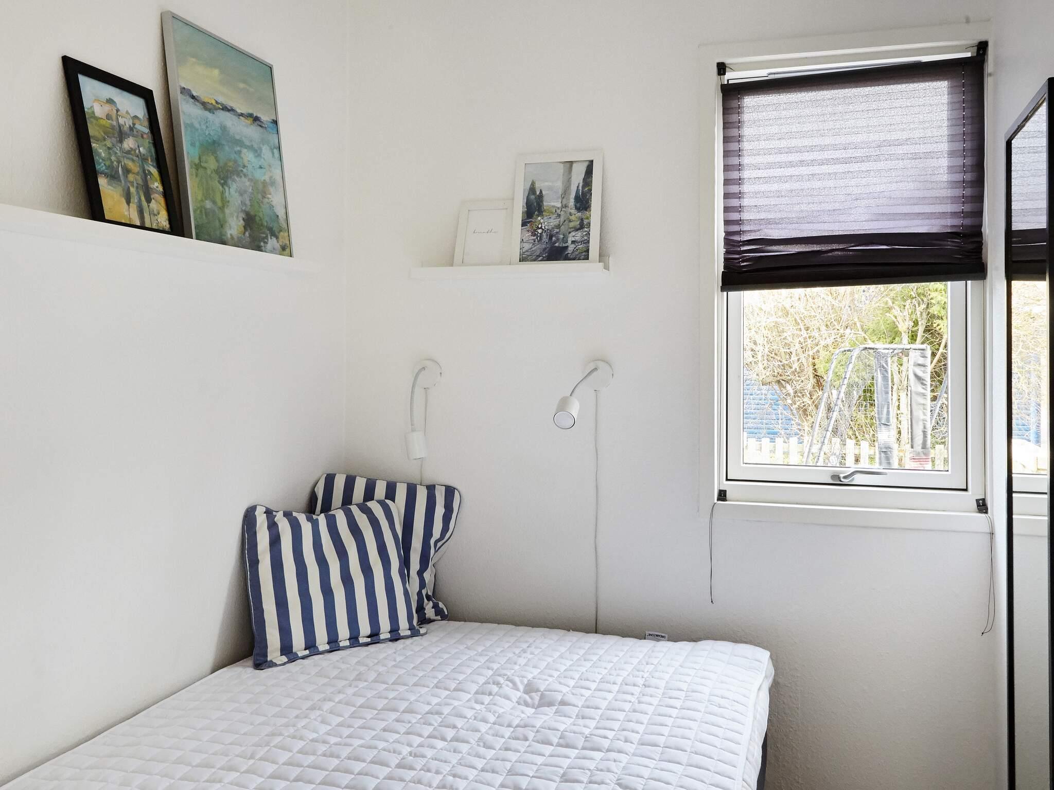 Dette charmerende feriehus ligger på en indhegnet grund i et fredeligt sommerhusområde nær Kongsmark Strand, kun en kort gåtur fra en børnevenlig strand. Huset er lyst og åbent indrettet med store vinduer i stuen og køkkenet. Med tre soveværelser - herunder en dobbeltseng, en enkeltseng og en køjeseng - og et badeværelse er det velegnet til familier. Den hyggelige stue har brændeovn, tv og spillekonsol til indendørs underholdning.