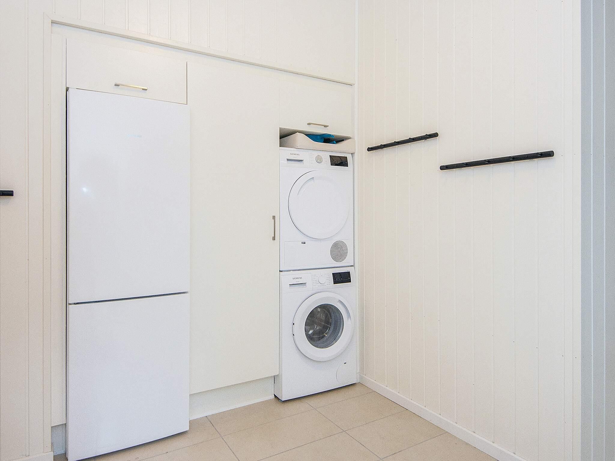 Når du bliver sulten, kan du tilberede mad i det stilrene køkken, som er veludstyret og placeret ved siden af ??stuen. Måltider kan nydes ved sommerhusets store spisebord, hvor plads og hygge er i højsædet.