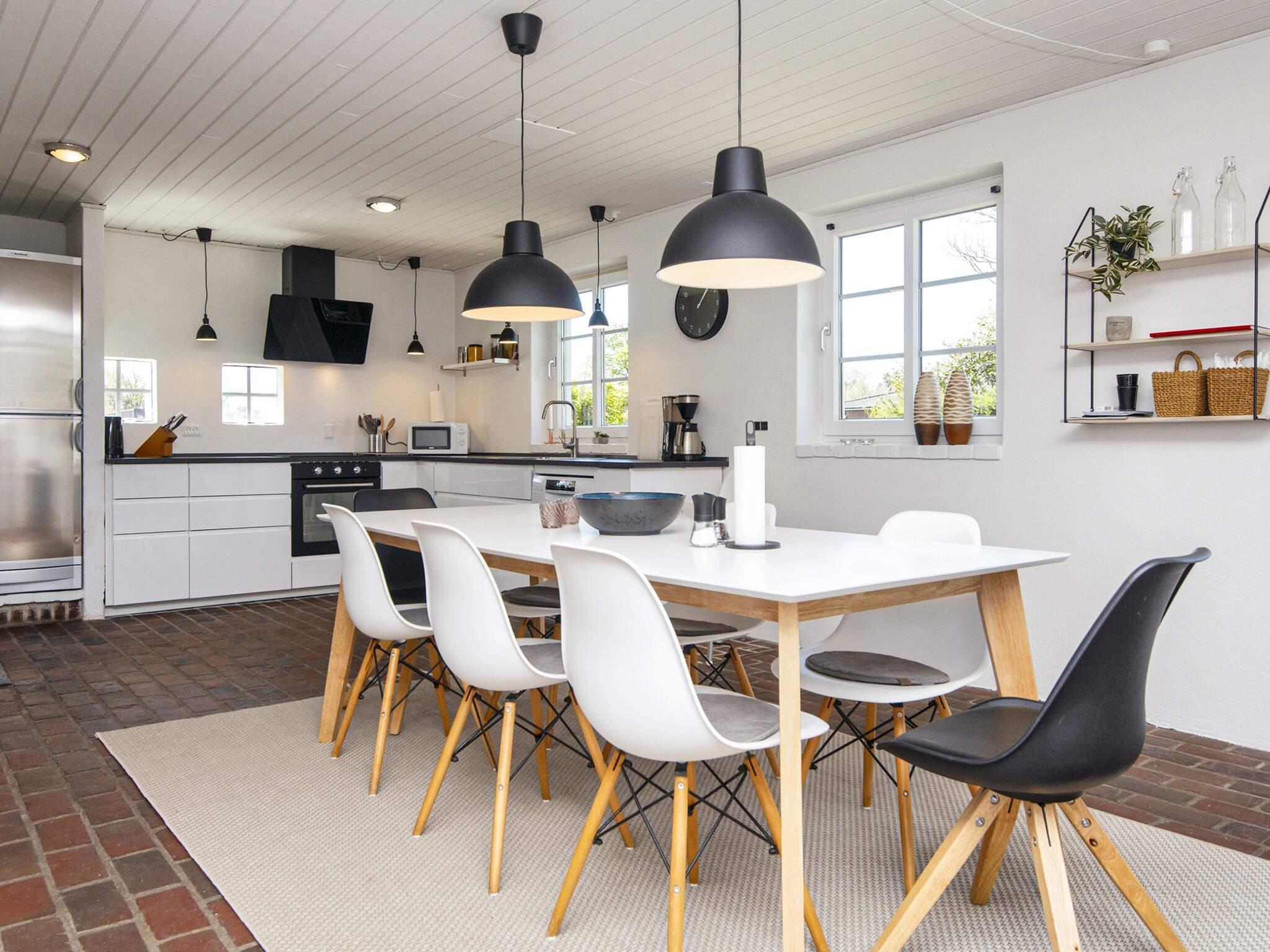 Dette lyse og indbydende feriehus i Kongsmark er perfekt til familier eller venner, der søger både komfort og afslapning tæt på havet. Træd ind i et moderne køkken, der åbner op til en rummelig spiseplads med et stort bord, der er ideelt til fælles måltider, latter og lange samtaler efter en dag på stranden. Interiøret er varmt og indbydende med hyggelige sofaer, velindrettede soveværelser og gennemtænkte detaljer, der får huset til at føles som et hjem væk fra hjemmet.