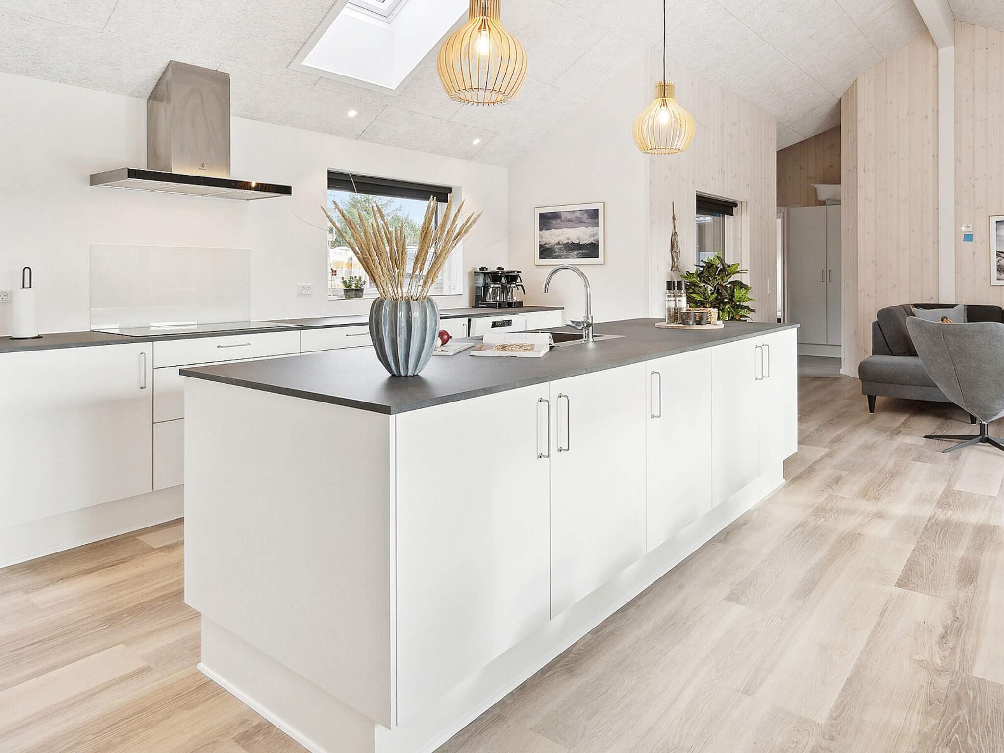 Køkkenet/alrummet har et stort køkken med alt det udstyr du skal bruge til at tilberede dine yndlingsretter. Måltider kan nydes omkring det store spisebord, som har plads til alle gæster. Tilbring aftenen på sofaerne med at se en film, læse en bog eller spille kort og terninger.