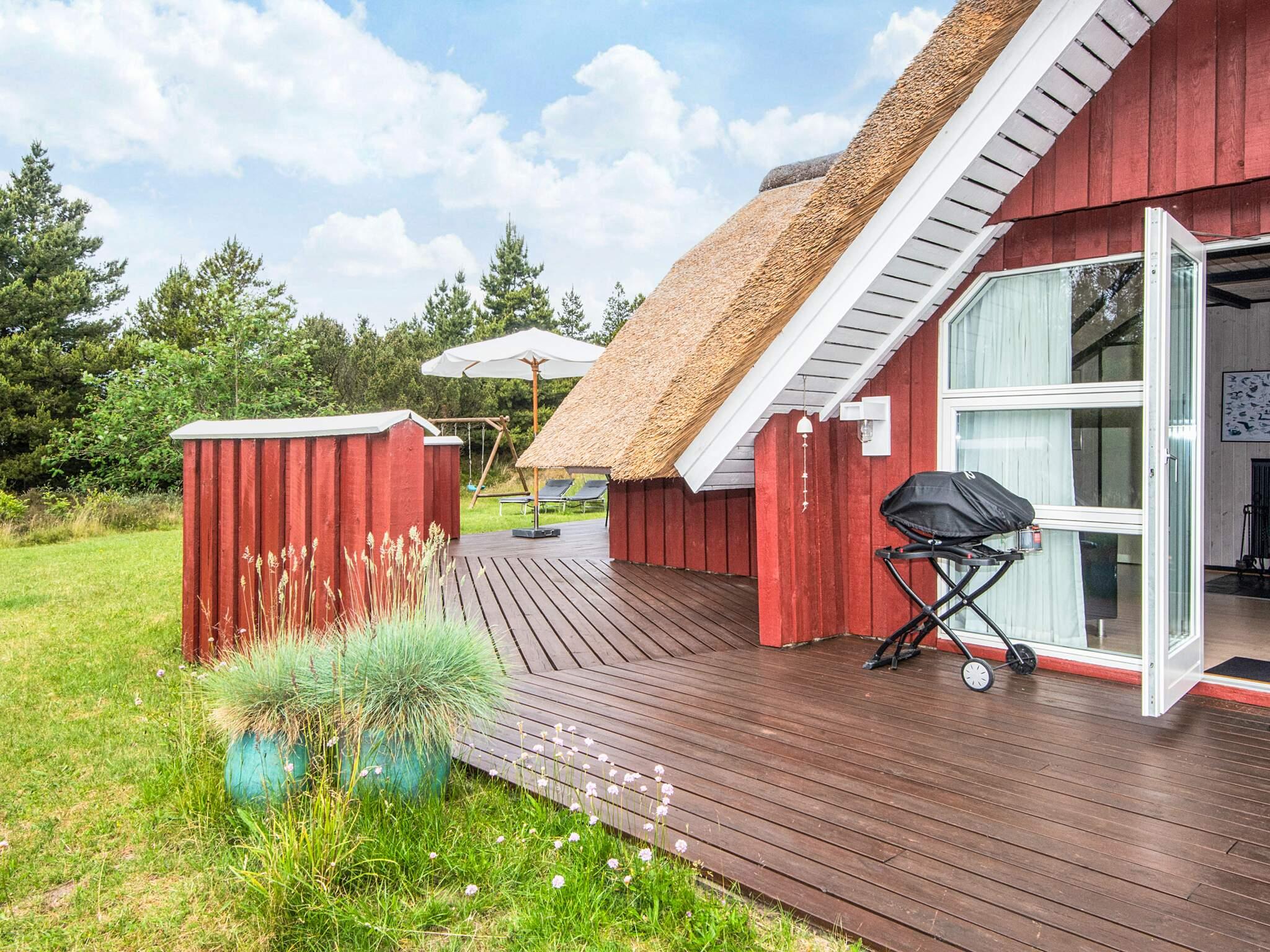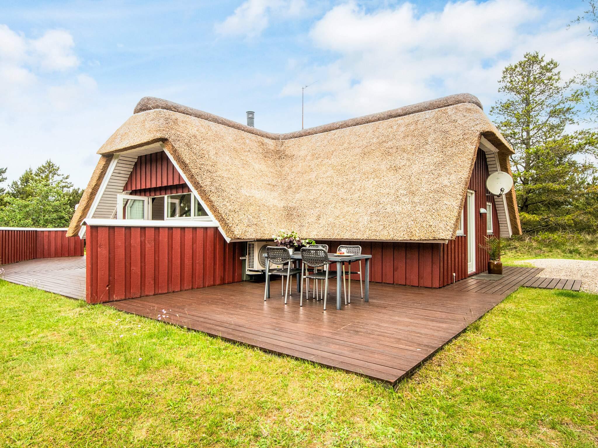 Stråtækt sommerhus beliggende på en dejlig stor og børnevenlig naturgrund midt i det naturskønne og rolige Kongsmark på Rømø. Sommerhuset har sauna og er løbende renoveret og fremstår pænt og indbydende. Køkkenet er lyst og meget veludstyret og ligger i åben forbindelse med opholdsstuen, hvor der er tv og brændeovn. Der er trådløst internet til rådighed. Der er i alt fire soverum fordelt på to med dobbeltseng og to med køjeseng. Køjesengene er bedst egnet til børn. Der er terrasser hele vejen rundt om huset og både fra køkkenet og fra opholdsstuen er der direkte adgang til terrassen. I badeværelset er der bruseniche samt vaskemaskine og tørretumbler. Herfra er der adgang til husets sauna. Der er også tænkt på de små i form af barneseng, høj barnestol samt sandkasse og gynger i haven. Udlejes ikke til ungdomsgrupper.