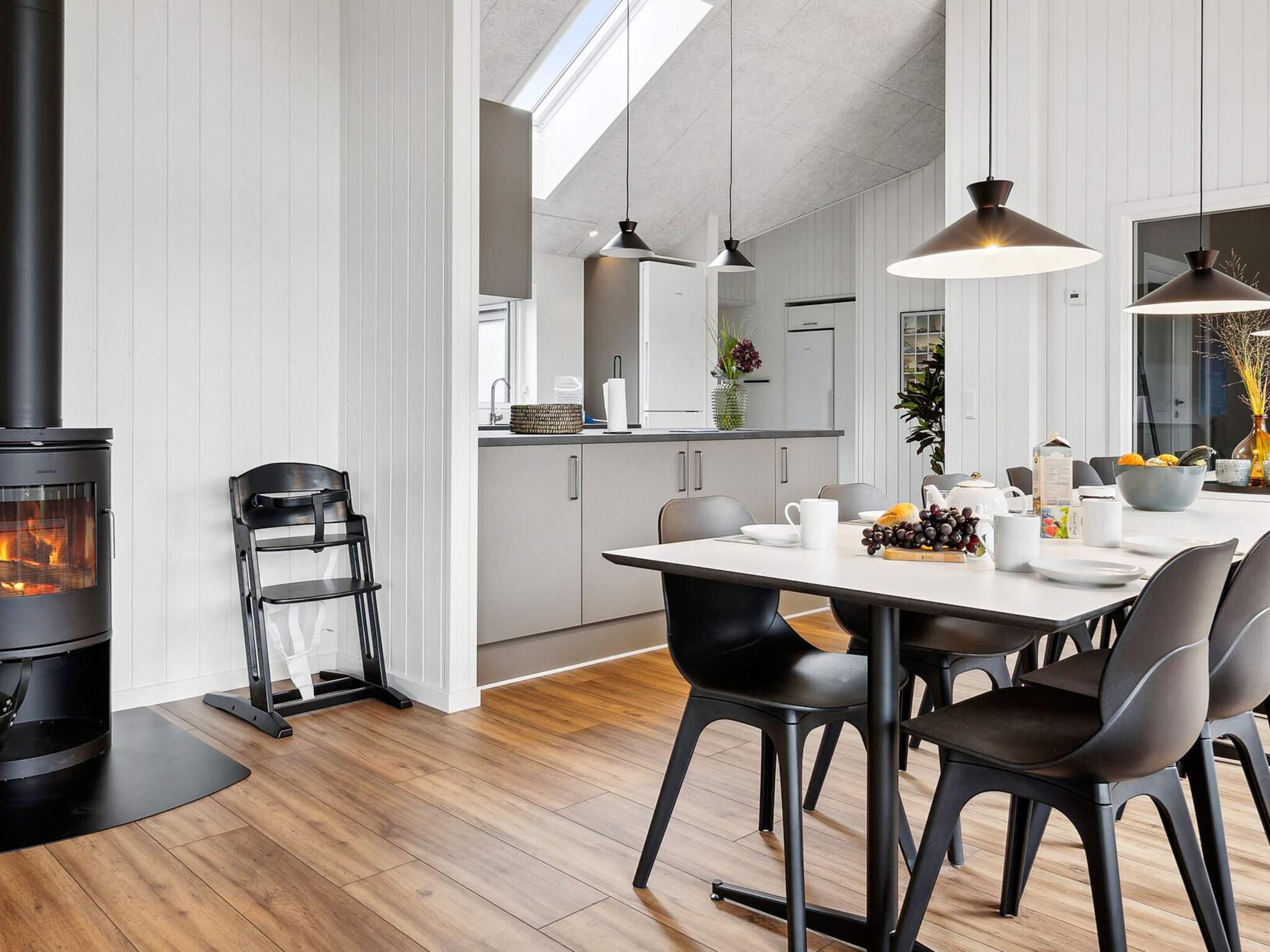 Kokkeholdet kan benytte det store køkken i stuen, hvor der er et bredt udvalg af udstyr, som kan bruges til madlavningen. Du kan også foretrække at lave mad på grillen ude på terrassen. Måltiderne kan nydes ved det lange spisebord indendørs eller ude på terrassen. Når du har fordøjet dit måltid, kan du hoppe på trampolinen, spille fodbold eller basketball eller spille på multibanen udenfor.