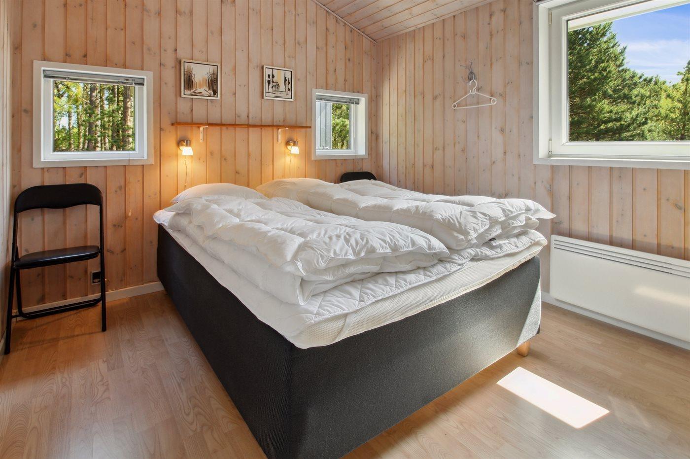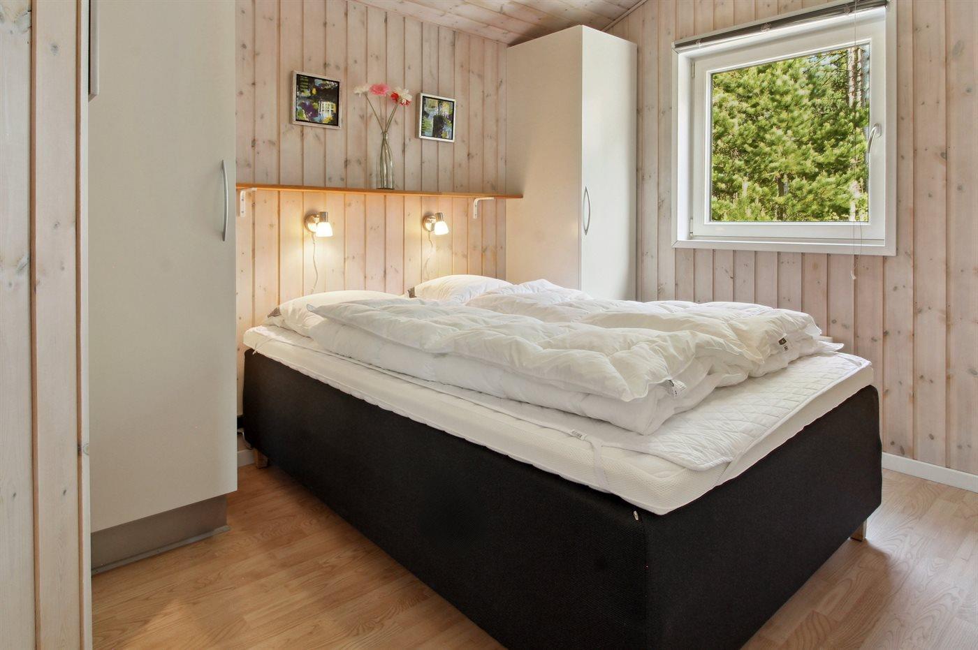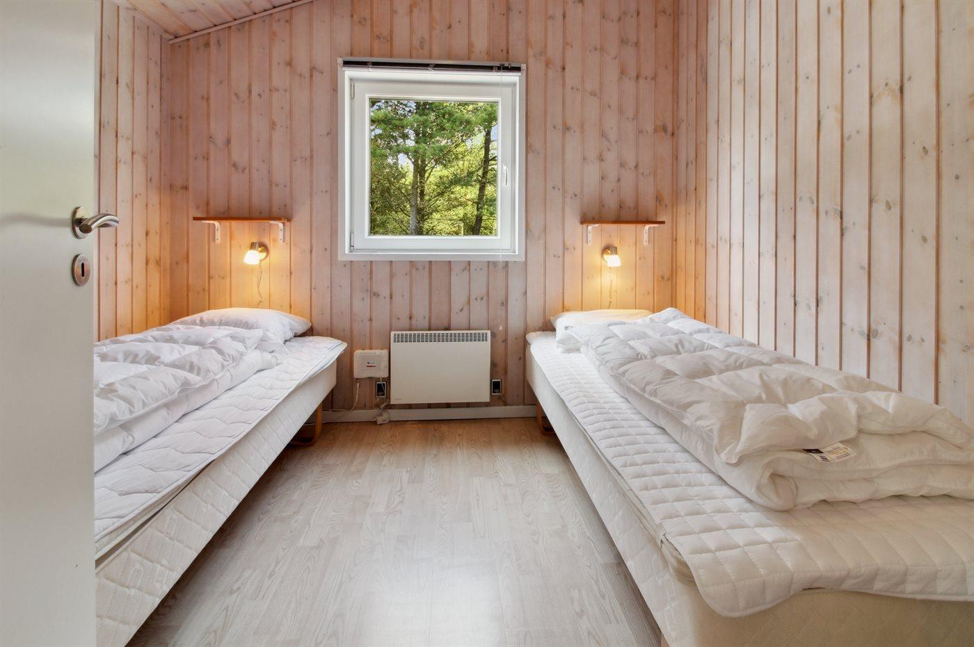 Der er i alt 3 soveværelser. Sovepladserne fordeler sig på: 4 sovepladser i dobbeltsenge. 2 sovepladser i enkeltsenge. Derudover er der 1 stk. barneseng.