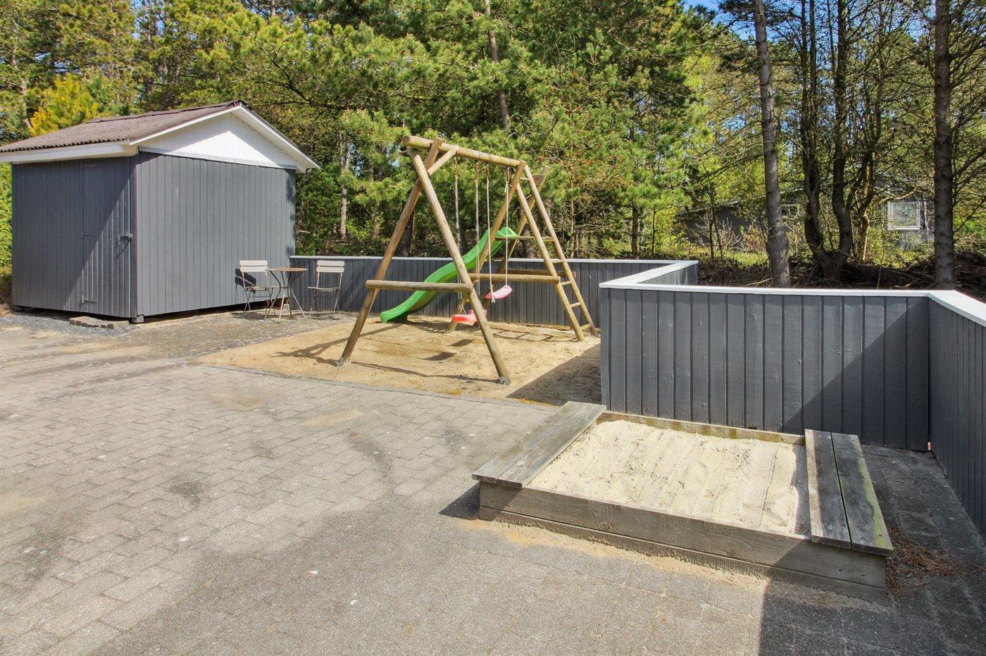Ferieboligen er beliggende på en 2681 m² stor naturgrund. Der er 4000 m til havet. Der er 800 m til Vadehavet. Nærmeste forretning er beliggende i en afstand af 4000 m. Der er en golfbane i en afstand af 6000 m. Til ferieboligen hører åbent terrasseareal. Desuden er der overdækket terrasse. Gynge. Sandkasse. Grill til rådighed. Der er carport til rådighed. Parkering ved ferieboligen.