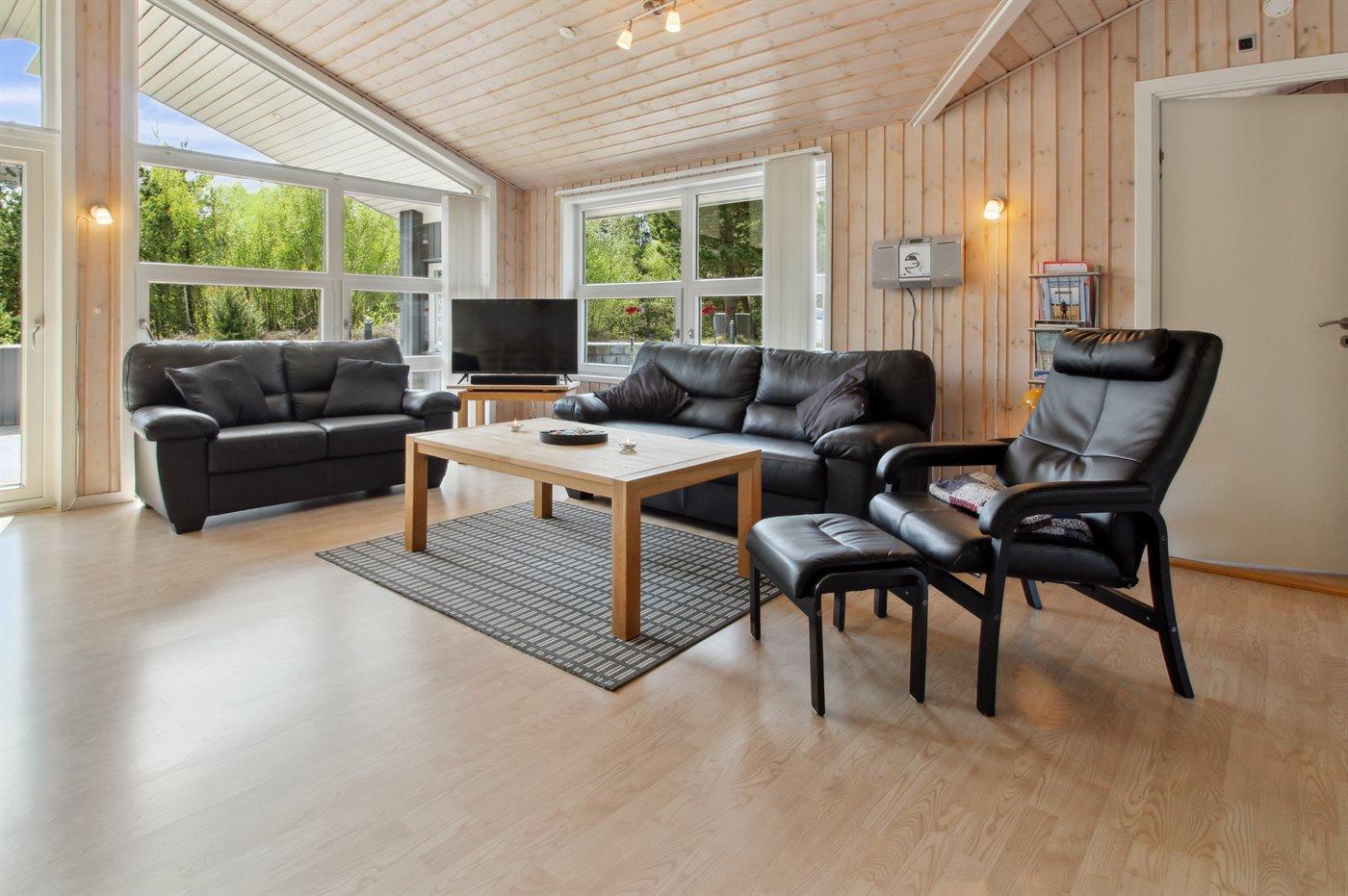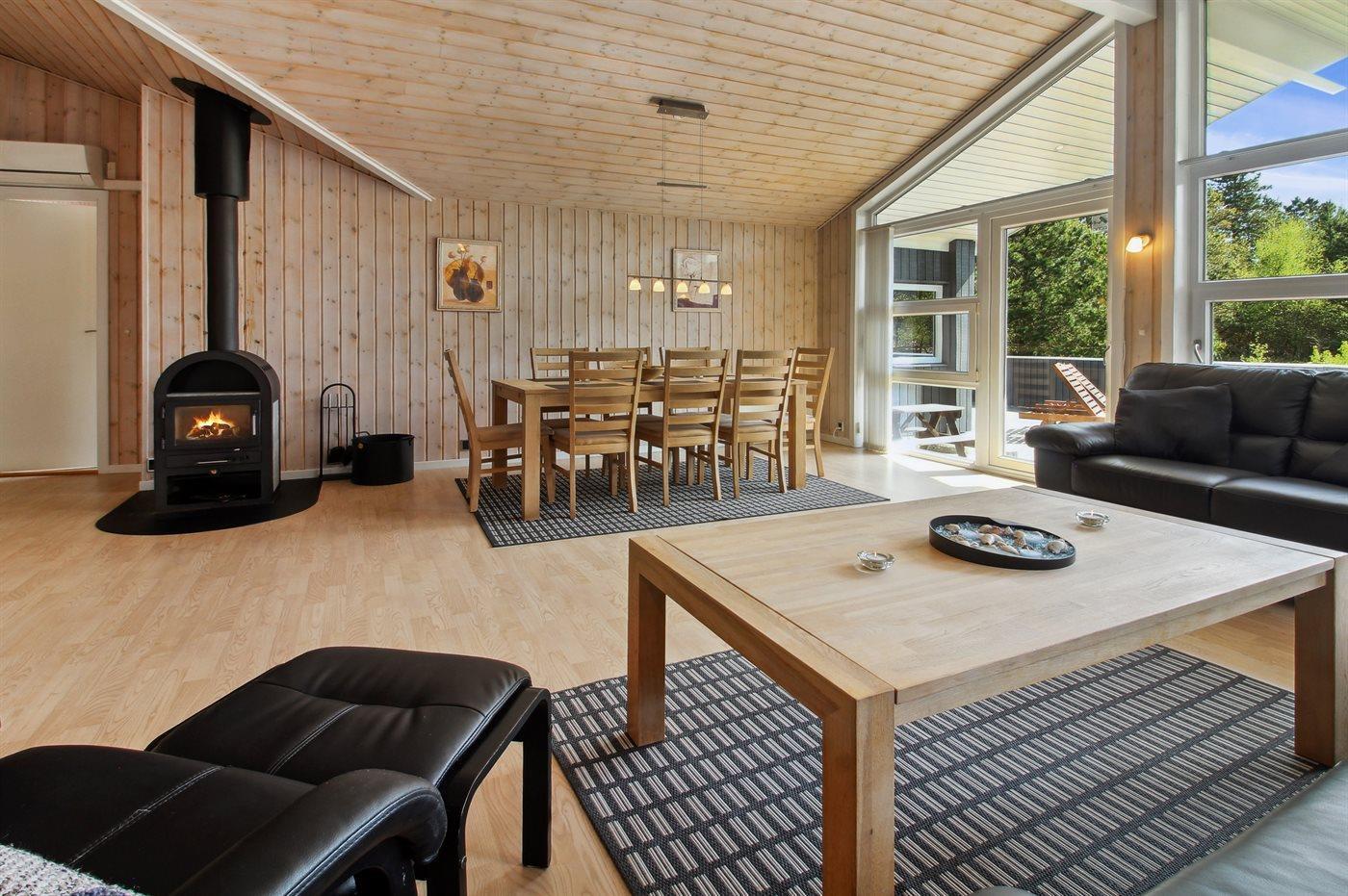 Med sine 98 m² er huset ideelt til op til seks voksne. Her får du både komfort og hygge med faciliteter som sauna, spabad og brændeovn – perfekt til afslapning, også når vejret viser sig fra sin kolde side.