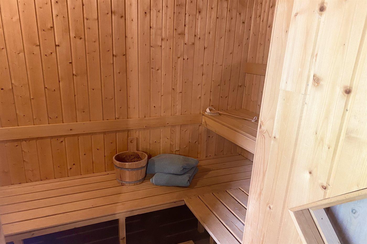 Der er 2 badeværelser med bruseniche og 2 toiletter. Der er gulvvarme på 2 badeværelser. I saunaen er der mulighed for afslapning.