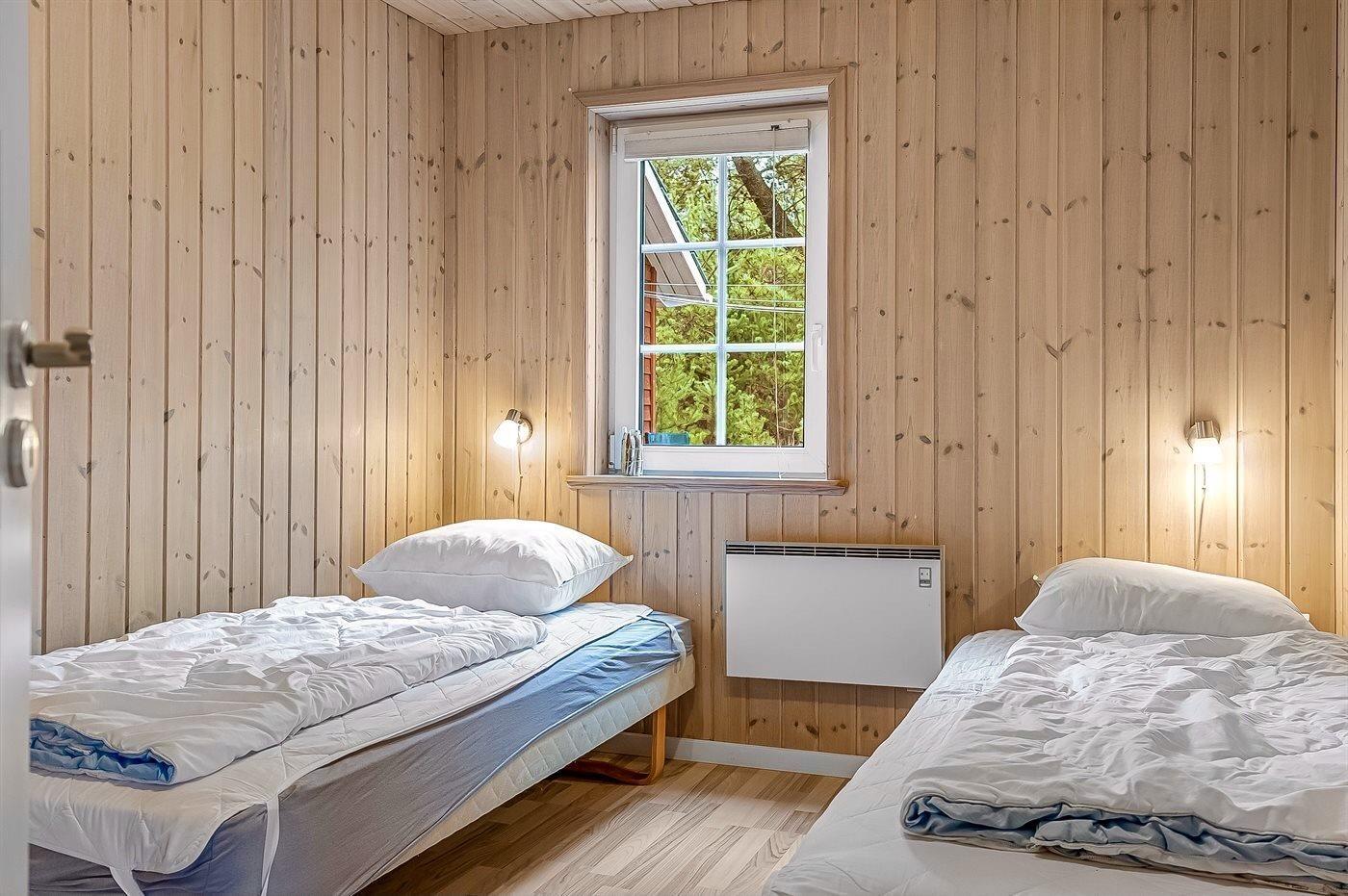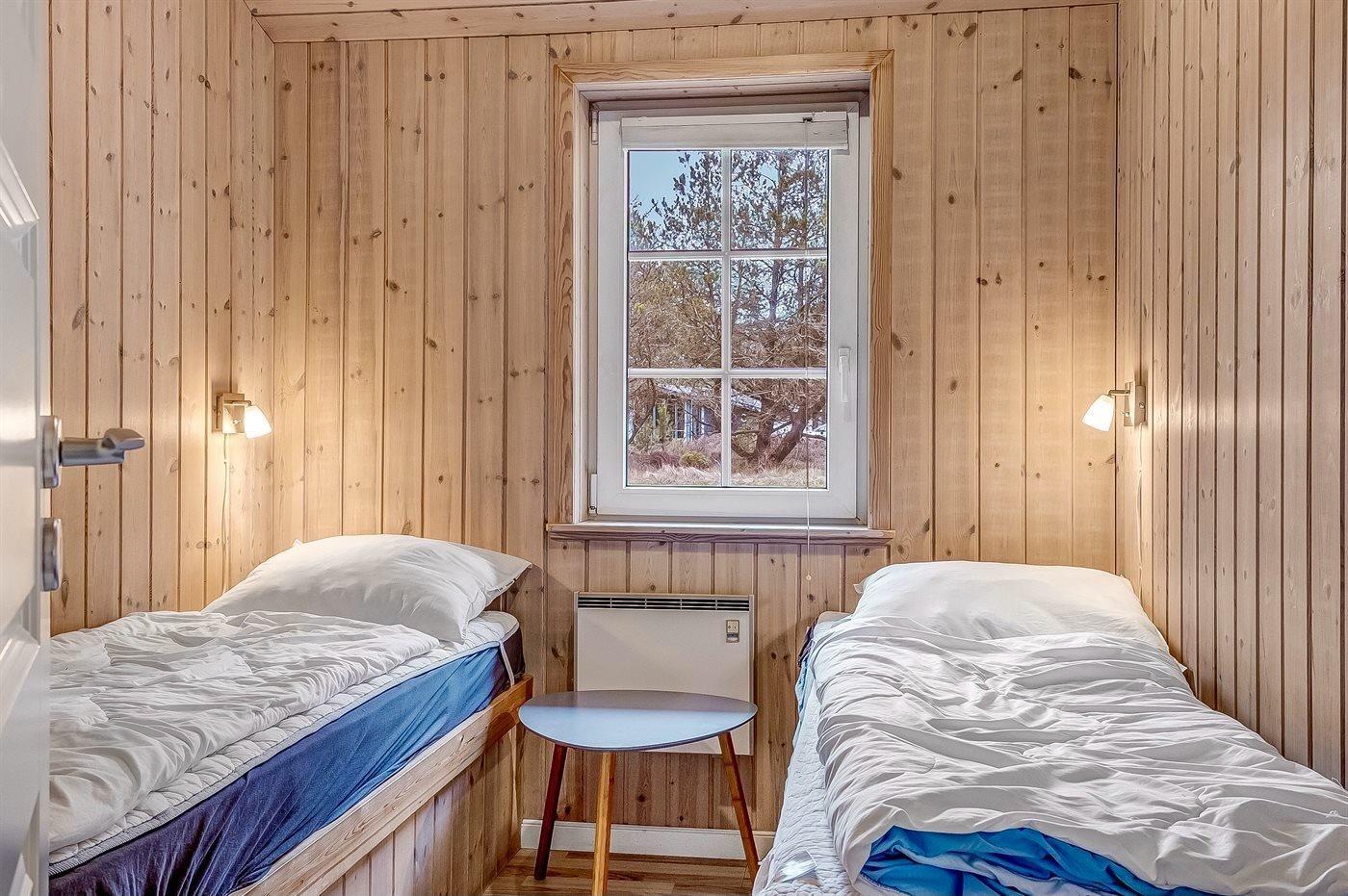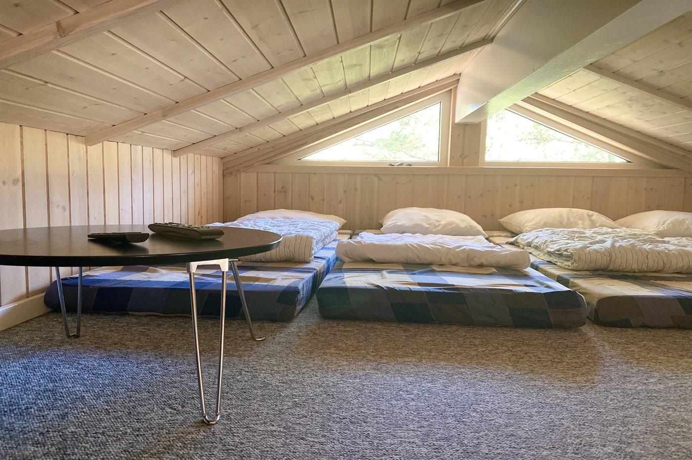 Der er i alt 4 soveværelser. Sovepladserne fordeler sig på: 4 sovepladser i dobbeltsenge. 4 sovepladser i enkeltsenge. 2 sovepladser på madrasser. 2 af disse sovepladser befinder sig på husets hems. Derudover er der 1 stk. barneseng.
