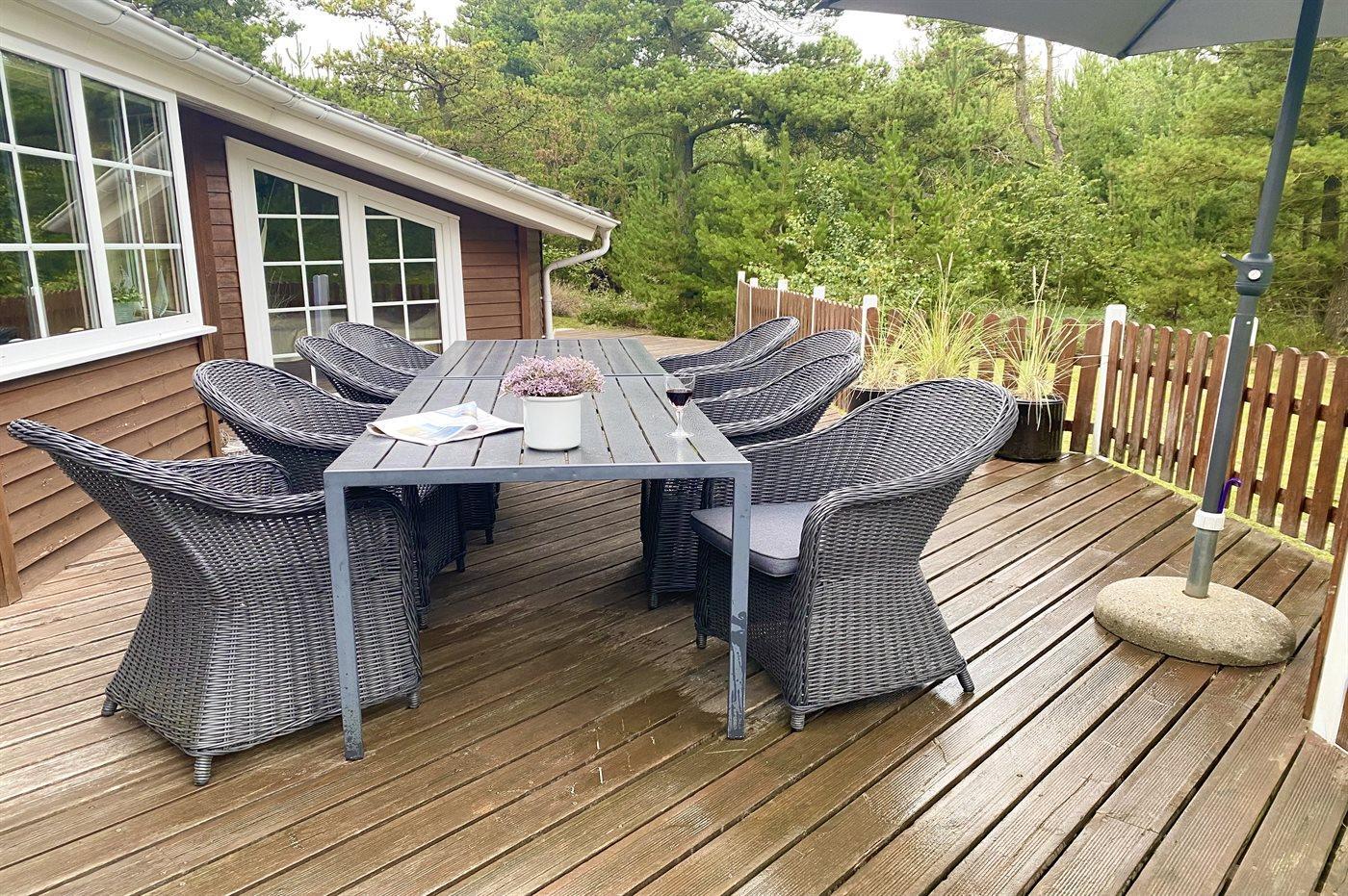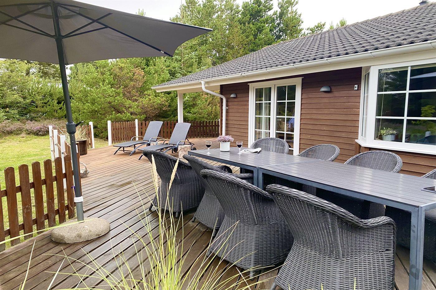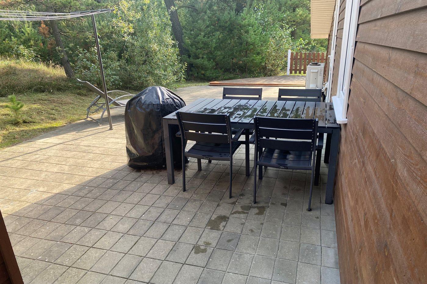 Ferieboligen er beliggende på en 2500 m² stor havegrund. Der er 2500 m til havet. Der er 3000 m til Vadehavet. Nærmeste forretning er beliggende i en afstand af 1000 m. Til ferieboligen hører 100 m² terrasseareal. Desuden er der 10 m² overdækket terrasse. Der er redskabsrum. Gynge. Sandkasse. Grill til rådighed. Der er installeret stik til opladning af elbil. Type 2 stik. Parkering ved ferieboligen.