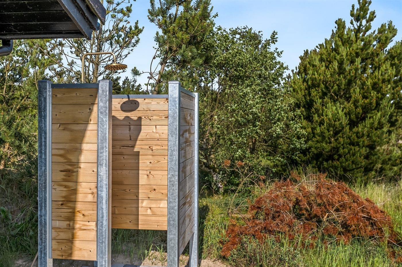 Ferieboligen med dejlig brede døre er beliggende på en 2500 m² stor naturgrund. Der er 3000 m til havet. Der er 1800 m til Vadehavet. Nærmeste forretning er beliggende i en afstand af 3000 m. Til ferieboligen hører åbent terrasseareal. Der er redskabsrum. Der ligger en legeplads i en afstand af 1500 m. Der findes en udendørs bruser med koldt vand. Kuglegrill til kul rådighed. I husets carport er der plads til 2 biler. Der er installeret et kraftstik med 11 kW ladeeffekt til opladning af elbil (ladekabel medbringes).