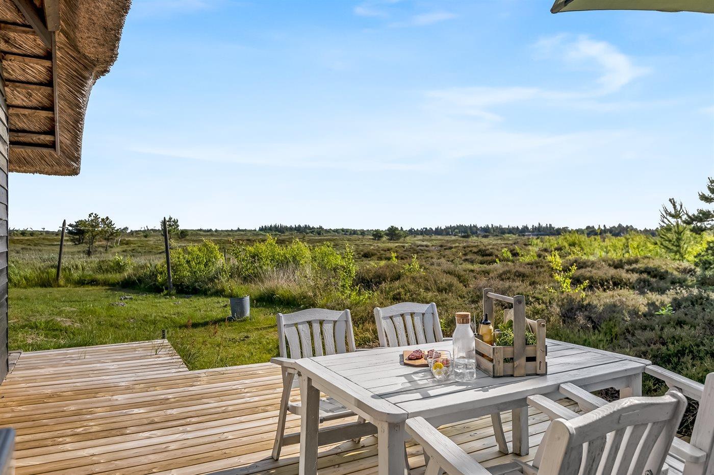Hyggeligt sommerhus med stråtag i Kongsmark med udsigt til fredede naturområder og tæt på Vadehavet.