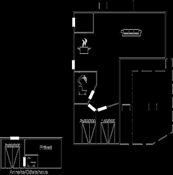 Der findes 2 soveværelser med dobbeltseng i hovedhuset, heraf en elevationsseng. Desuden findes der et anneks, som er indrettet med et værelse med dobbeltseng og et gæstetoilet.