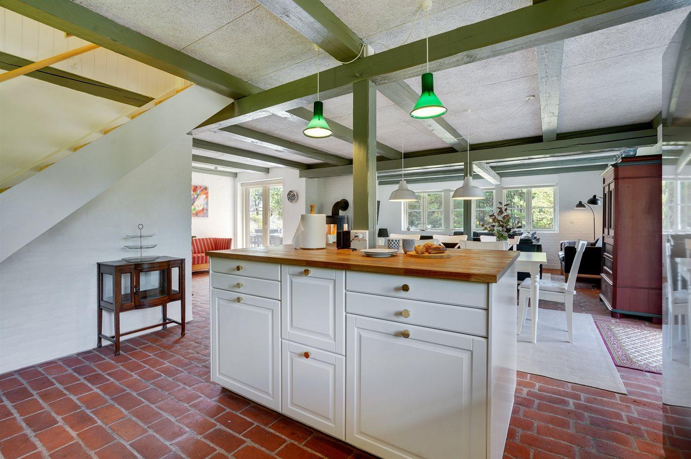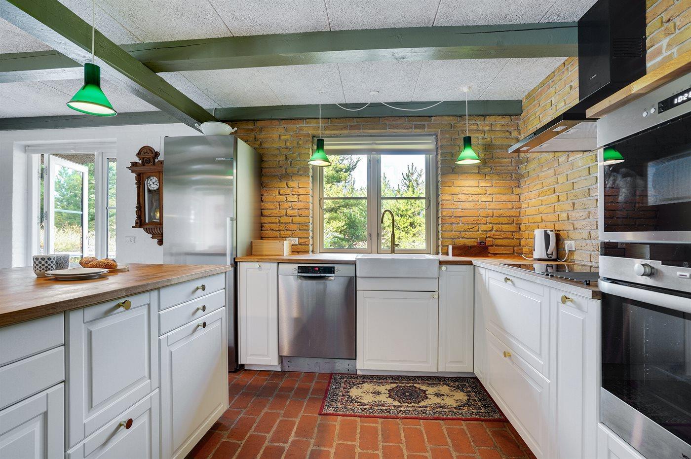 Køkkenet er udstyret med 1 køleskab. Der er 4 keramiske kogeplader, varmluftovn, mikrobølgeovn samt opvaskemaskine.