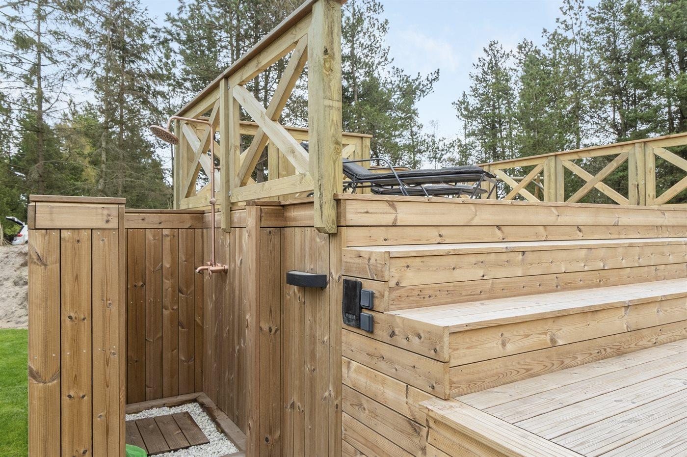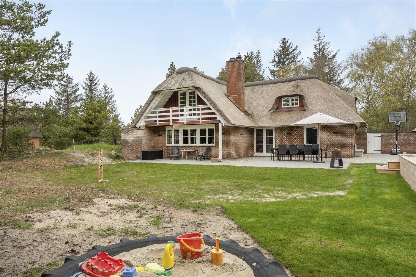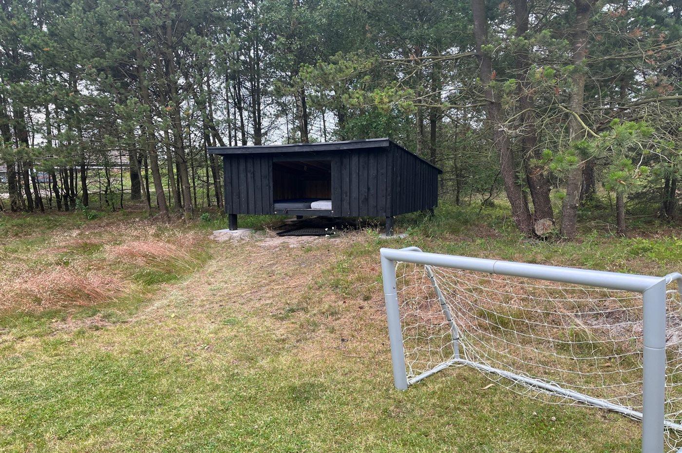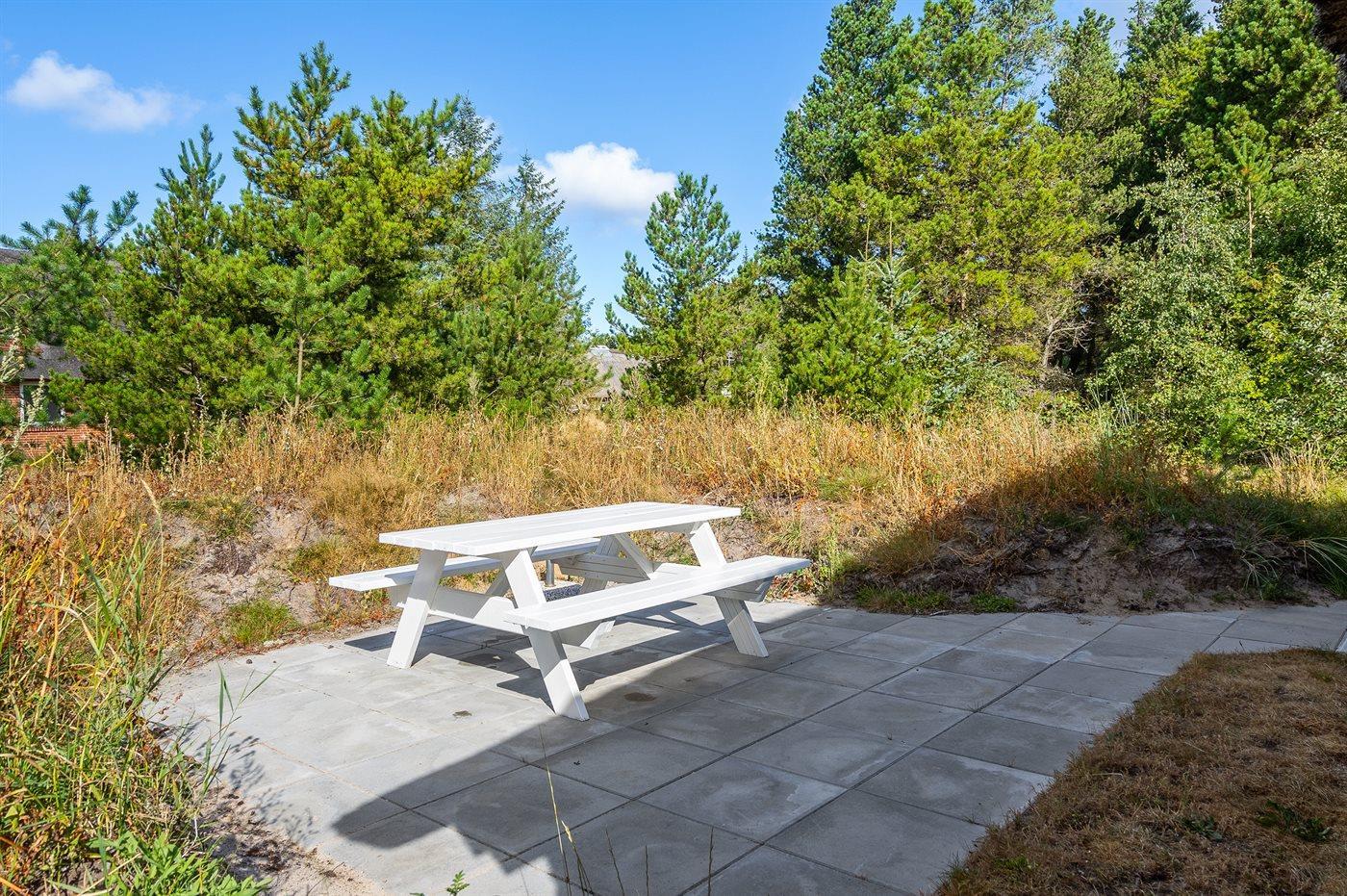 Ferieboligen er beliggende på en 2800 m² stor grund i skov/plantage. Der er 3500 m til havet. Der er 900 m til Vadehavet. Nærmeste forretning er beliggende i en afstand af 1000 m. Der er en golfbane i en afstand af 5300 m. Til ferieboligen hører 200 m² terrasseareal. Gynge. Sandkasse. Trampolin. Shelter. Der er installeret stik til opladning af elbil. Type 2 stik. Parkering ved ferieboligen.