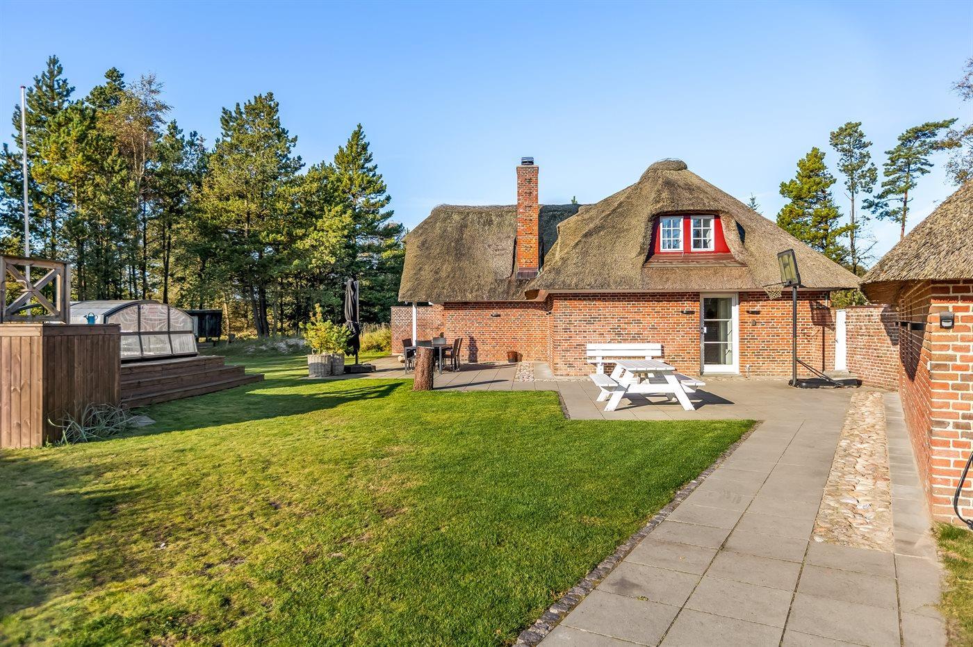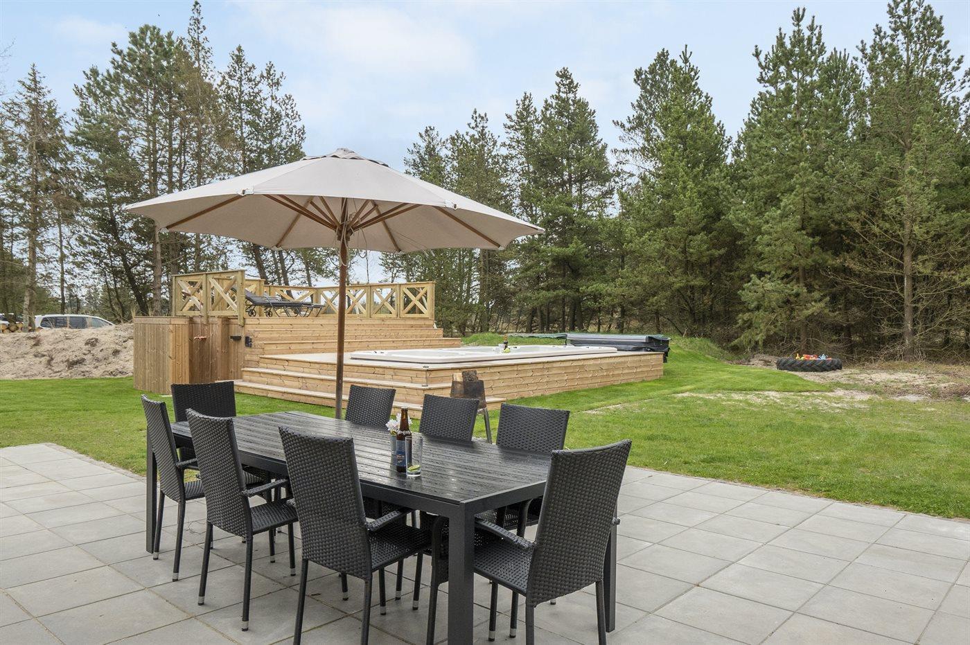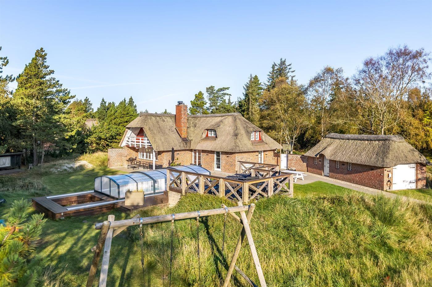 Ferieboligen er beliggende på en 2800 m² stor grund i skov/plantage. Der er 3500 m til havet. Der er 900 m til Vadehavet. Nærmeste forretning er beliggende i en afstand af 1000 m. Der er en golfbane i en afstand af 5300 m. Til ferieboligen hører 200 m² terrasseareal. Gynge. Sandkasse. Trampolin. Shelter. Der er installeret stik til opladning af elbil. Type 2 stik. Parkering ved ferieboligen.