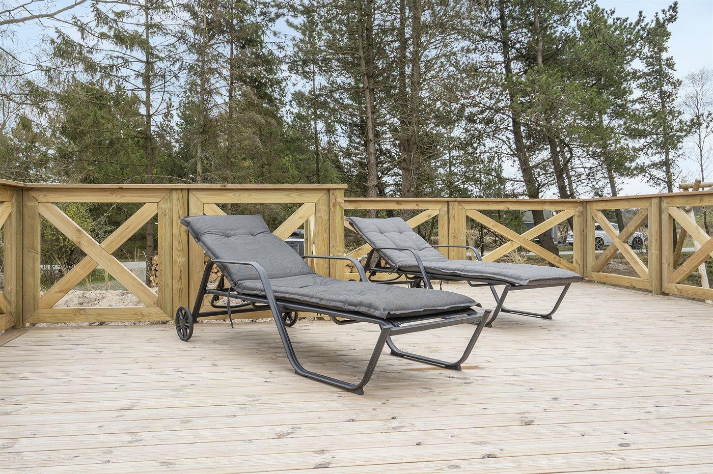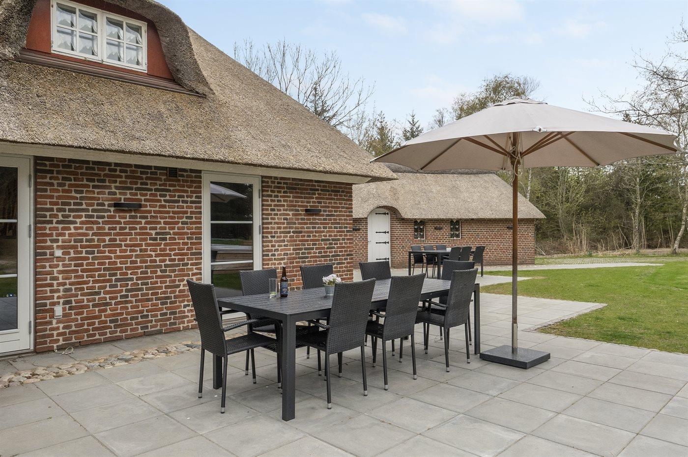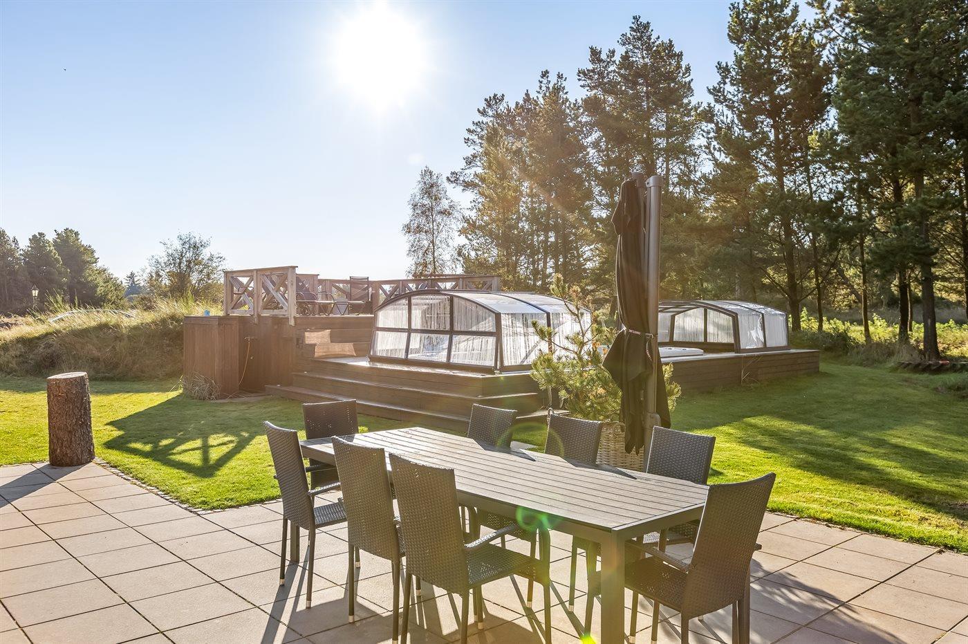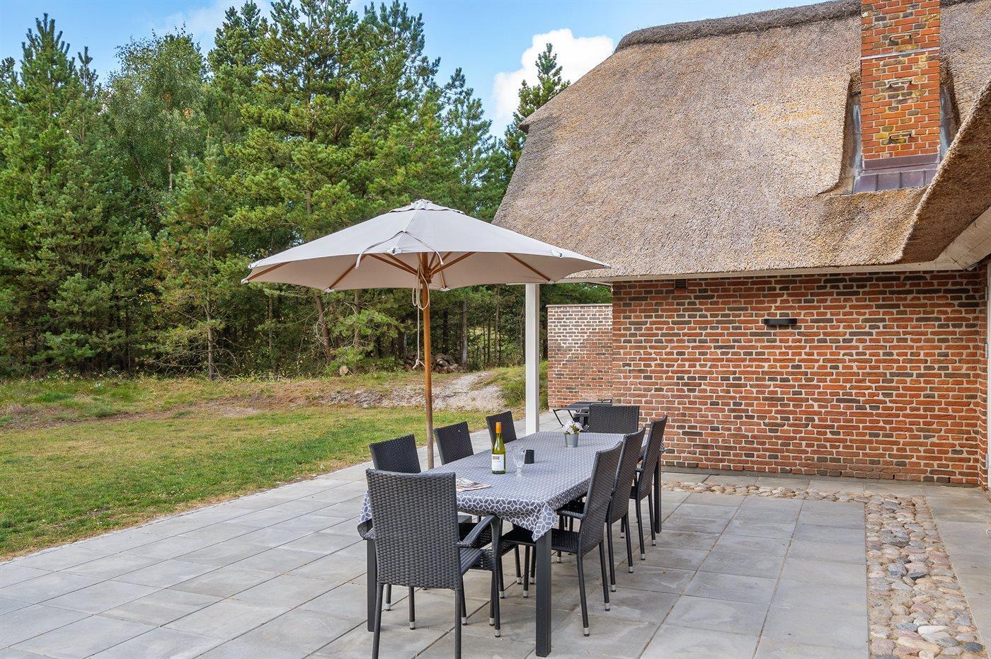 Ferieboligen er beliggende på en 2800 m² stor grund i skov/plantage. Der er 3500 m til havet. Der er 900 m til Vadehavet. Nærmeste forretning er beliggende i en afstand af 1000 m. Der er en golfbane i en afstand af 5300 m. Til ferieboligen hører 200 m² terrasseareal. Gynge. Sandkasse. Trampolin. Shelter. Der er installeret stik til opladning af elbil. Type 2 stik. Parkering ved ferieboligen.