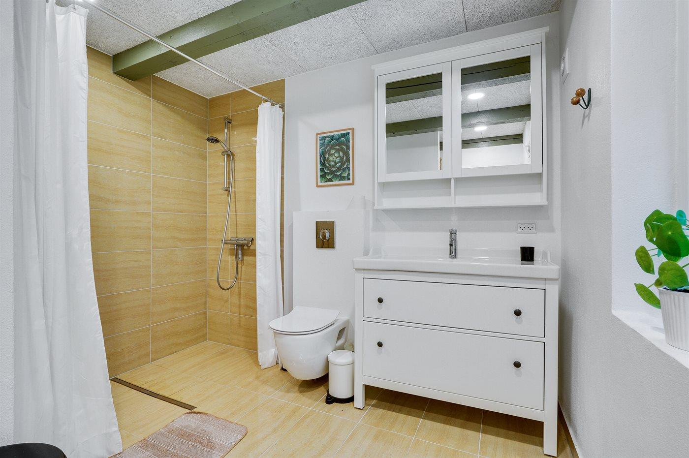 Der er 2 badeværelser med bruseniche og 3 toiletter, heraf 1 gæstetoilet. Der er gulvvarme på 2 badeværelser.