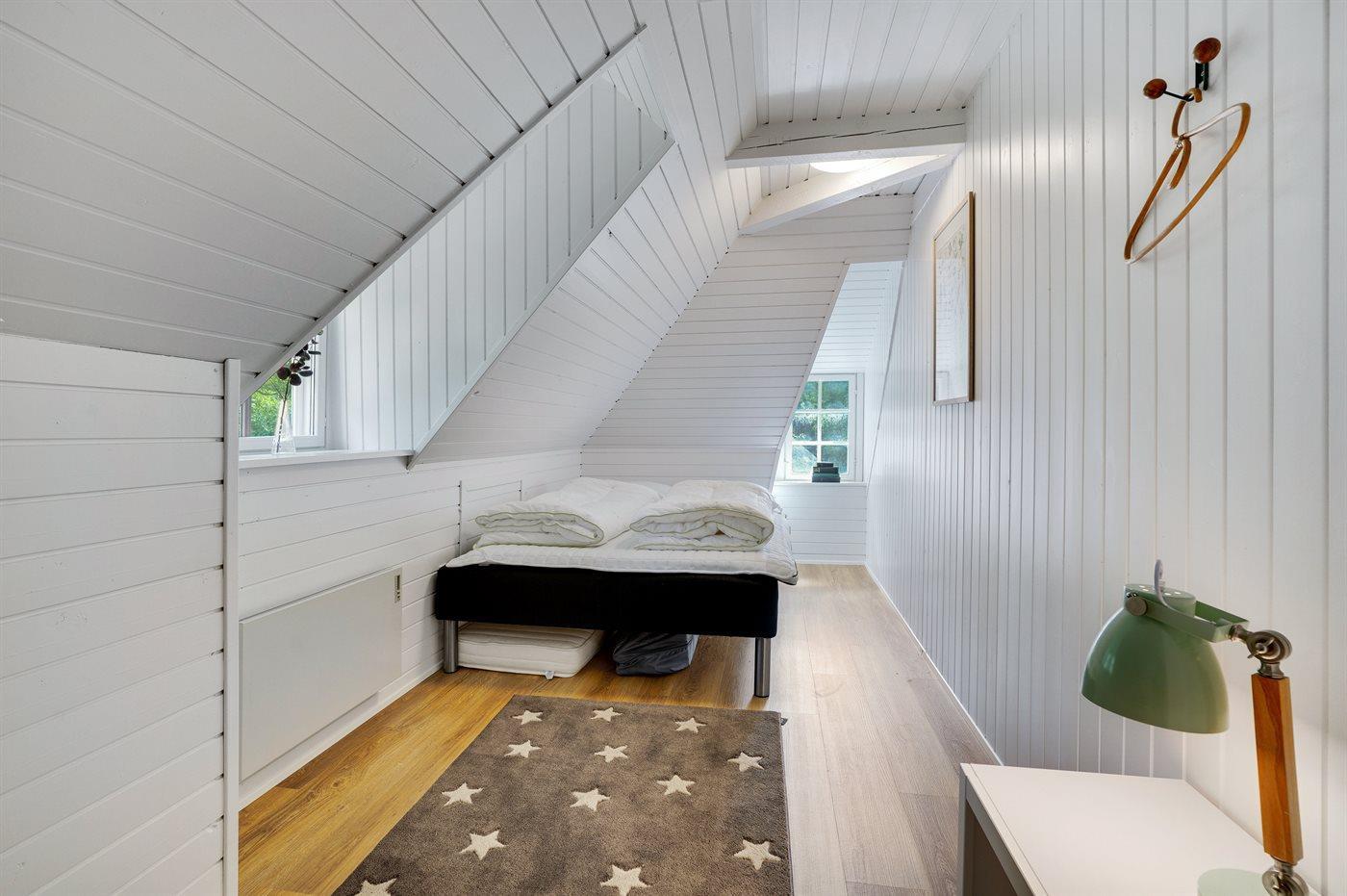 Fantastisk flot og hyggeligt sommerhus beliggende godt gemt bag træer på en meget stor grund, hvor også en bunker er at finde.