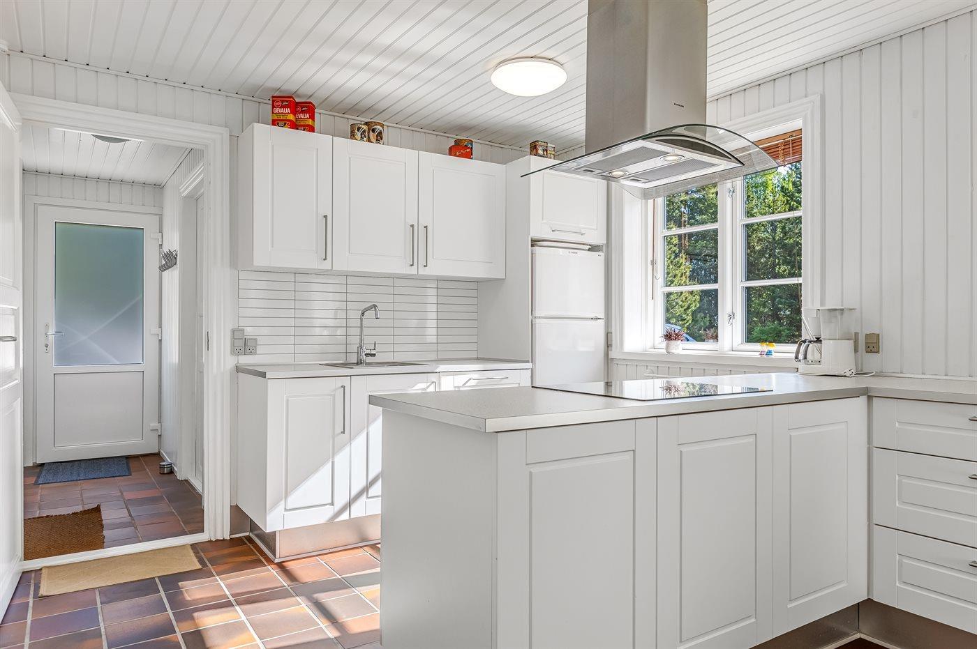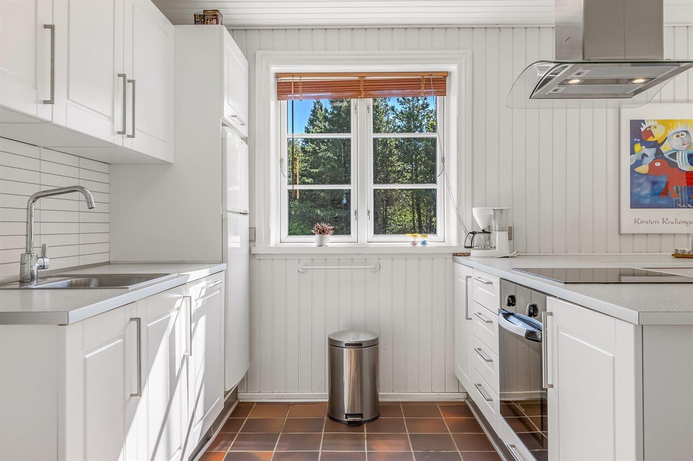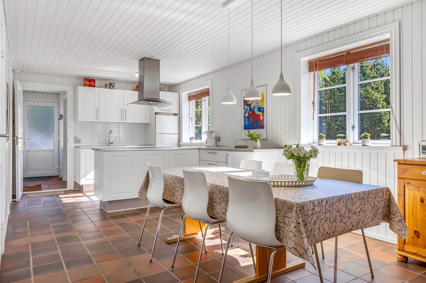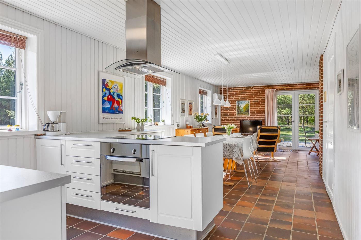 Køkkenet er udstyret med 1 køleskab. (Ekstra køleskab til rådighed i skuret) . Der er 4 keramiske kogeplader, varmluftovn, mikrobølgeovn samt opvaskemaskine.