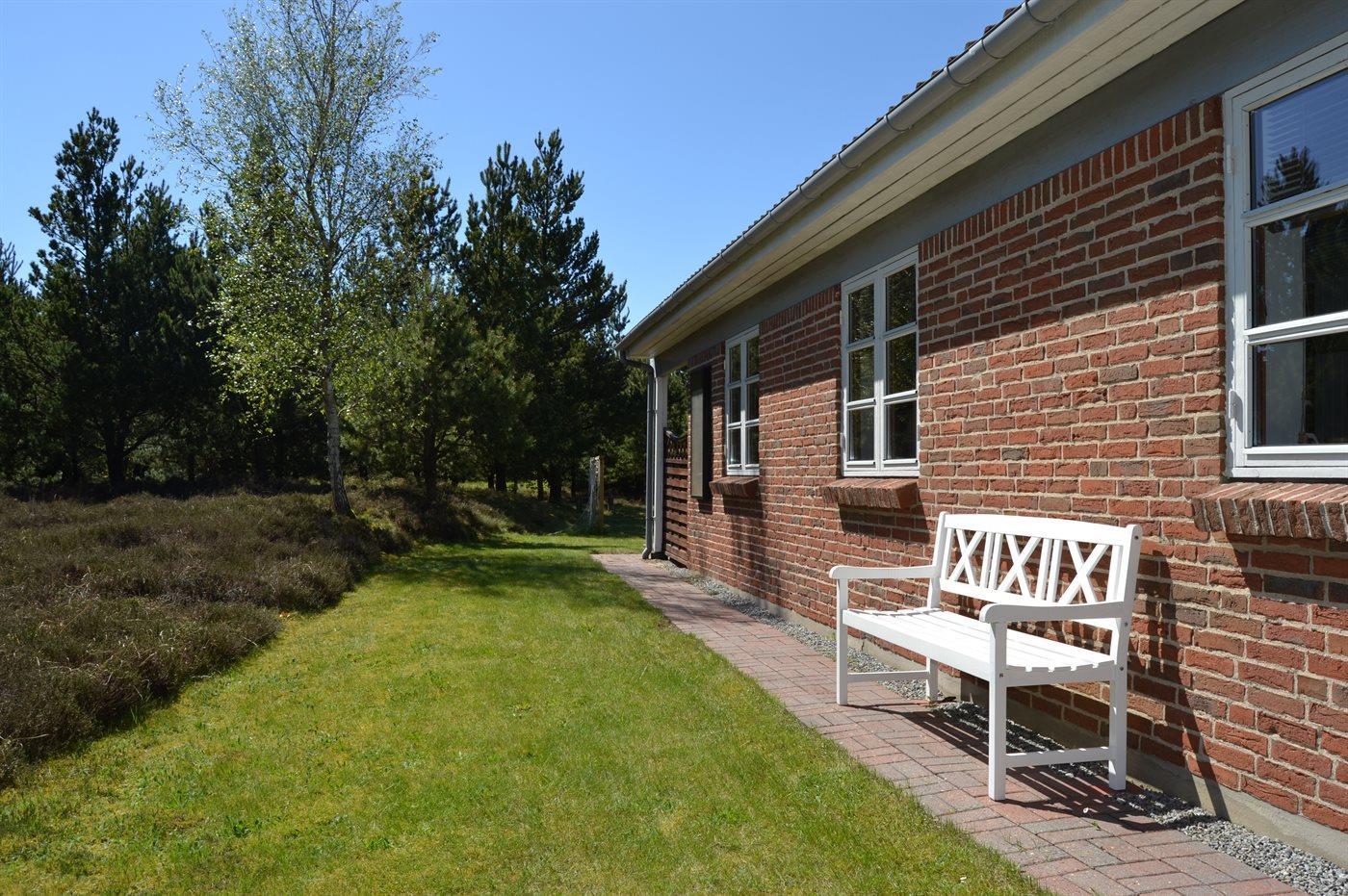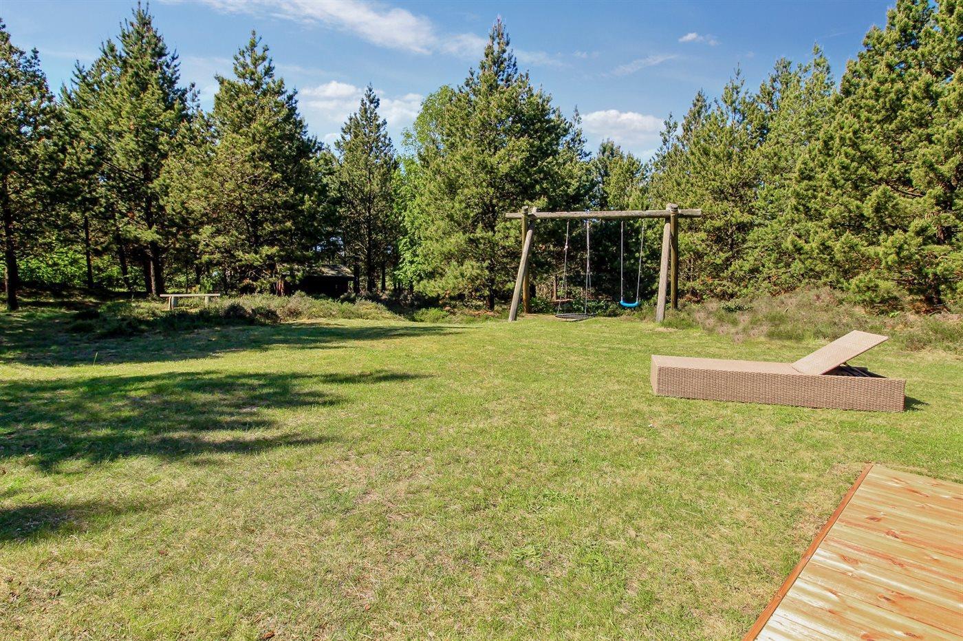 Ferieboligen er beliggende på en 2500 m² stor naturgrund. Der er 3500 m til havet. Nærmeste forretning er beliggende i en afstand af 1200 m. Til ferieboligen hører 35 m² terrasseareal. Desuden er der 10 m² overdækket terrasse. Der er redskabsrum. Gynge. Fodboldmål. Shelter. Parkering ved ferieboligen.