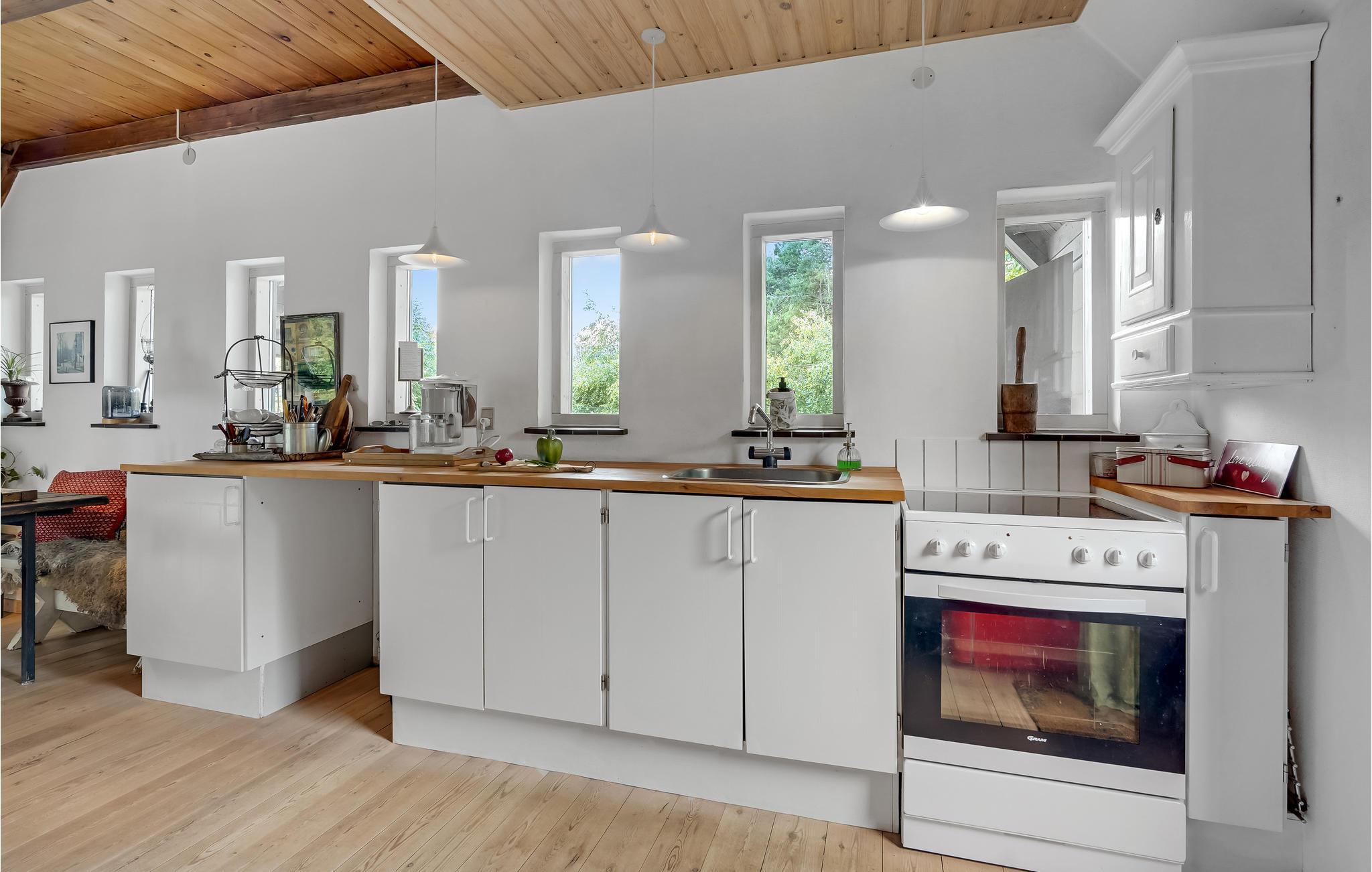 Dette dejlige sommerhus ligger naturskønt placeret og passer perfekt til den lille familie eller en gruppe venner, som gerne vil holde ferie sammen og have hunden med. Her kan I slappe af og nyde livet. Huset er flot og autentisk indrettet med gode stilvalg, og så kan I se frem til en have og en lille terrasse, hvor I kan sætte jer med et glas vin sidst på dagen.