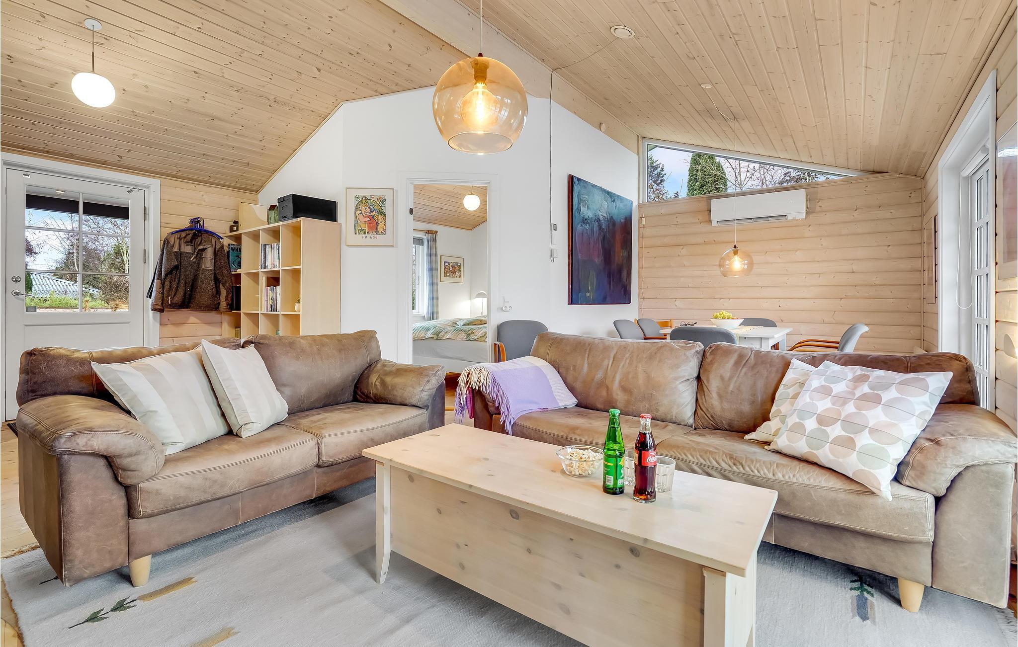 Glæd jer til ferien i dette skønne og hyggelige sommerhus med hele familie. Soveværelserne er fordelt over hovedhuset og et lille udhus. Det komfortable hus er udstyret med alt hvad I behøver for en ubekymret ferie. Nyd jeres feriemåltider på terrassen i de varme måneder, og se jeres børn boltre sig i haven.