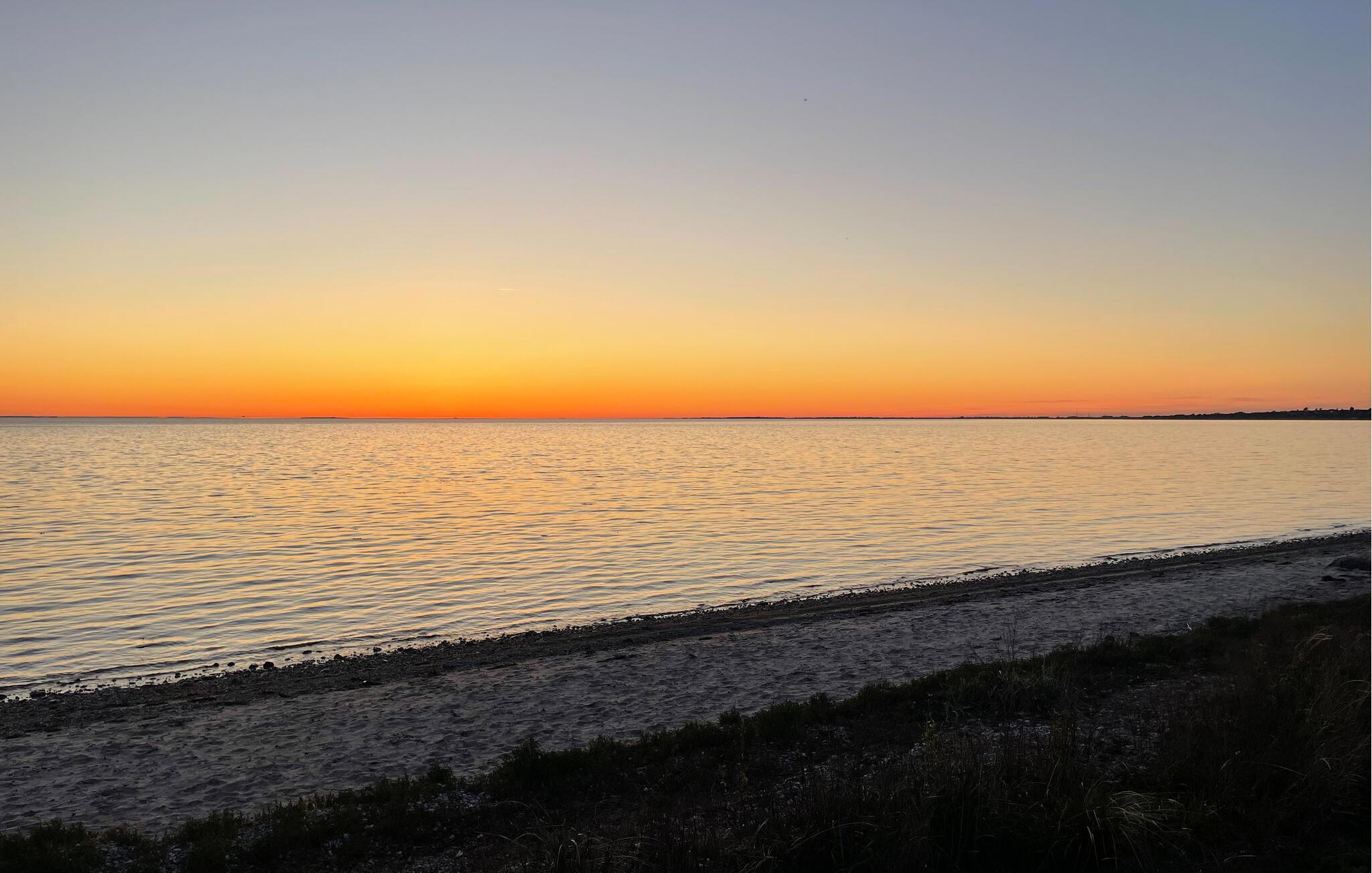 Hyggeligt sommerhus med panoramaudsigt over havet ved Kongsmark strand.