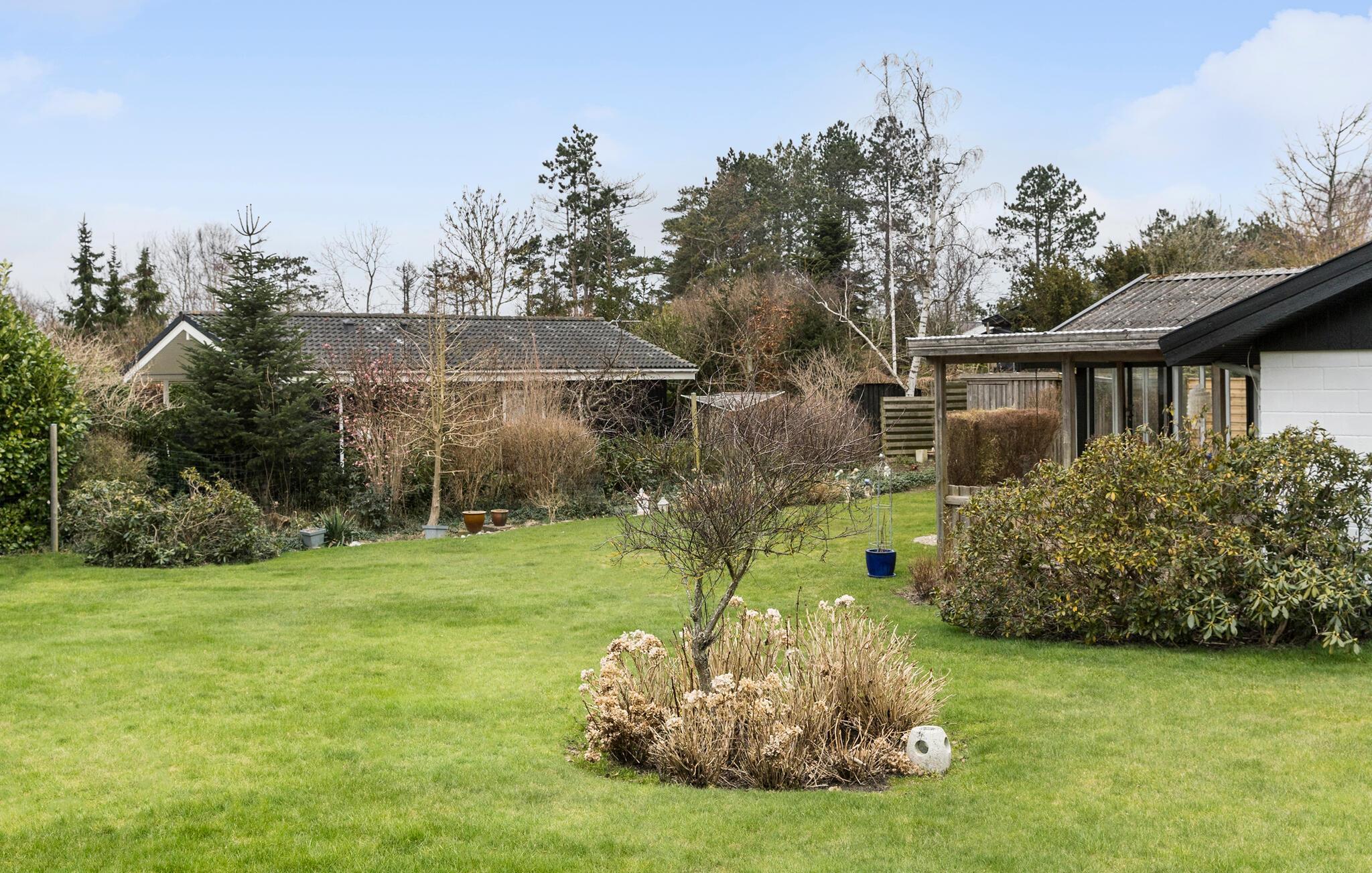 Hyggeligt feriehus nær Kongsmark Strand med stor have og terrasse, perfekt til afslapning og strandliv.