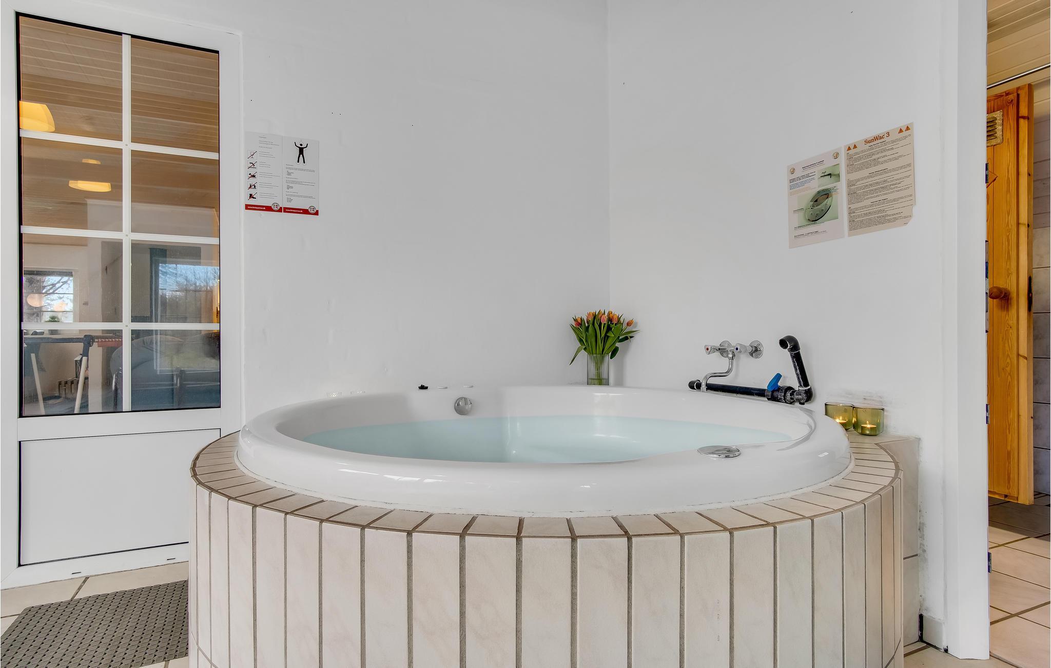 Her er der et helt igennem skønt feriehus til hele familien samt jeres gode venner og deres børn. Alle får god plads at brede sig på, for I kan se frem til nogle store fællesarealer med moderne, smagfulde møbler og lækre indretningsdetaljer. Her kan I komme helt ned i gear og glemme alt om hverdagens travle program. Hop en tur i poolen og nyd udsigten til haven imens. Børnene vil garanteret elske rutsjebanen og bruge en god del af tiden her. Efter en lang gåtur på stranden kan I slappe af i hotellets sauna og derefter lægge fødderne op på sofaen. I vinterhalvåret kan I skrue ekstra op for hyggen ved at tænde ild i brændeovnen og snakke om dagens oplevelser, ??mens flammerne knitrer i baggrunden.