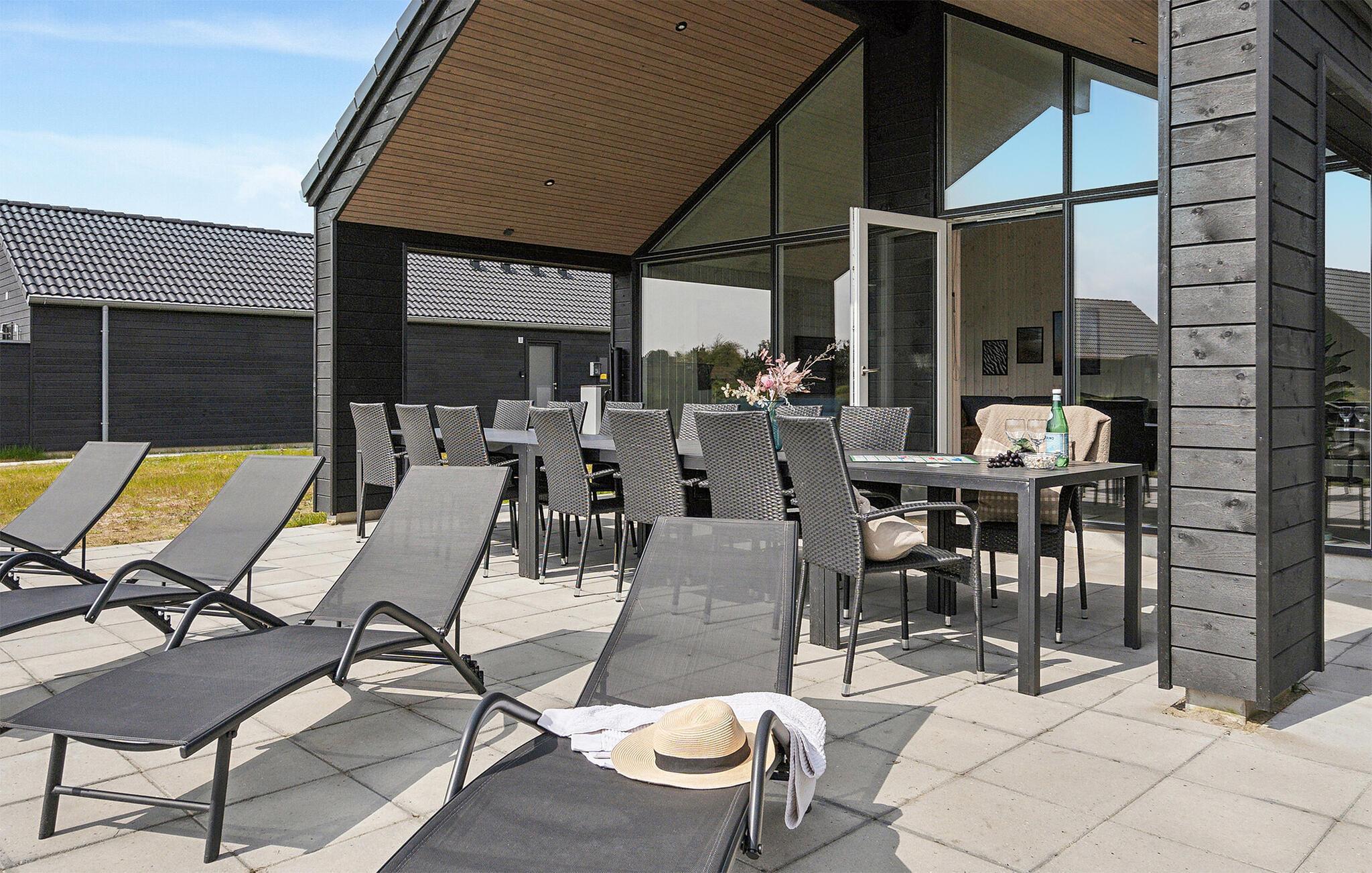Luksuriøst feriehus på Rømø med indendørspool, sauna og stor terrasse til afslapning og leg.