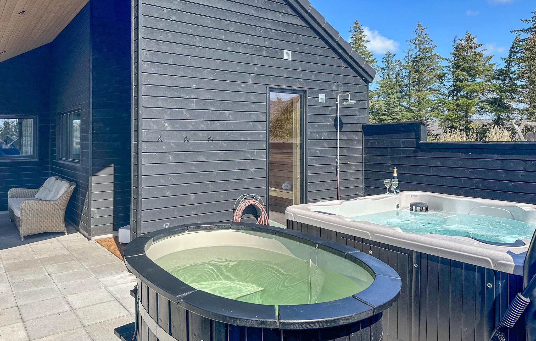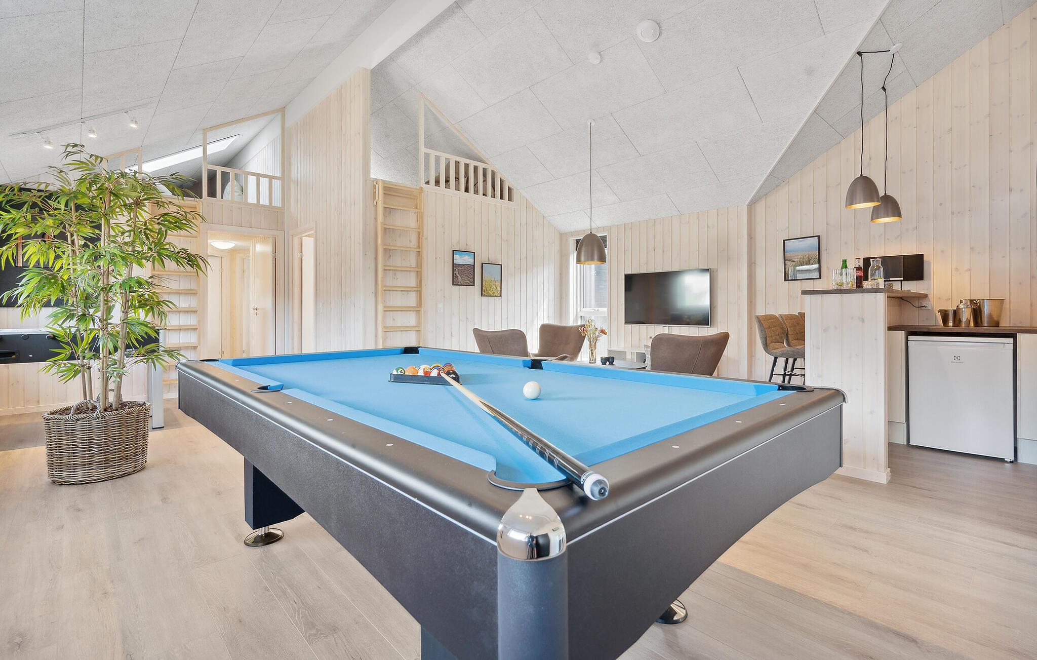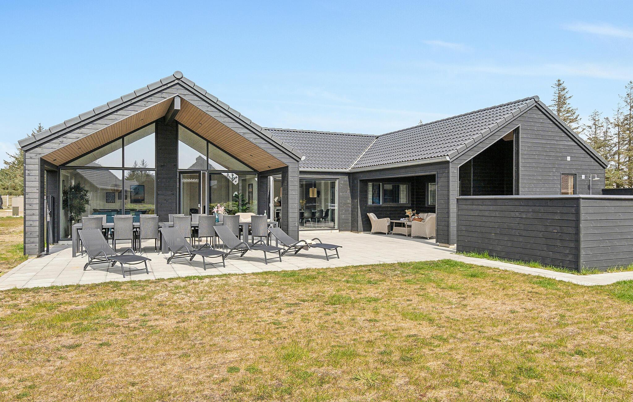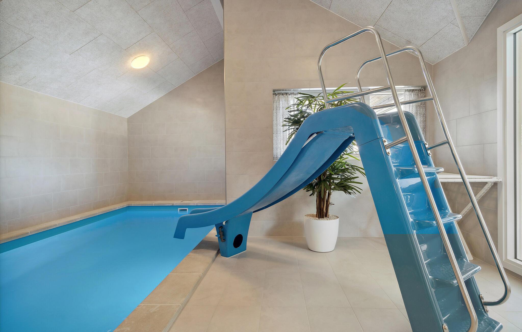 Der er lagt op til en herlig ferie for børn og voksne, som kan boltre sig frit i dette store, skønne feriehus. Huset har moderne, smagfulde indretningsløsninger og lækre faciliteter, så her kommer ingen til at mangle noget. Fyld dagene med hyggelige aktiviteter og afslappende pauser. Noget af det bedste ved huset er indendørspoolen, hvor børnene vil elske rutsjebanen og have det sjovt i timevis. Efter en lang gåtur på stranden kan I slappe af i jacuzzi, tage et varmt fodbad, gå i sauna - og der også er et koldtvandskar til dem, der trænger til et koldt gys. På de kølige dage kan I tænde op i brændeovnen og skrue op for varmen og hyggen i stuen.