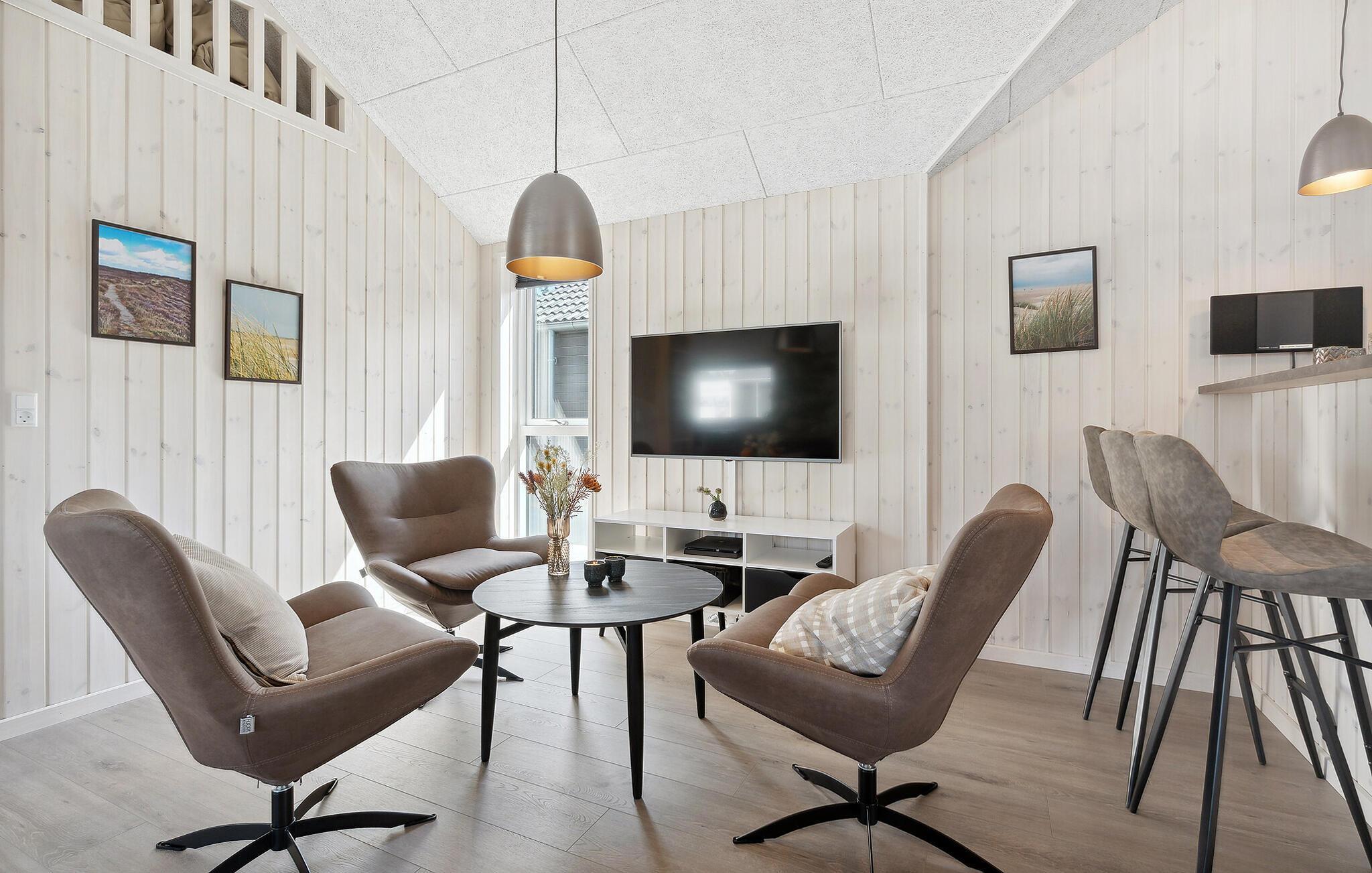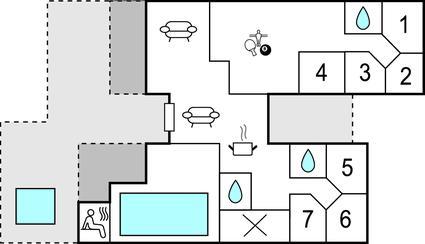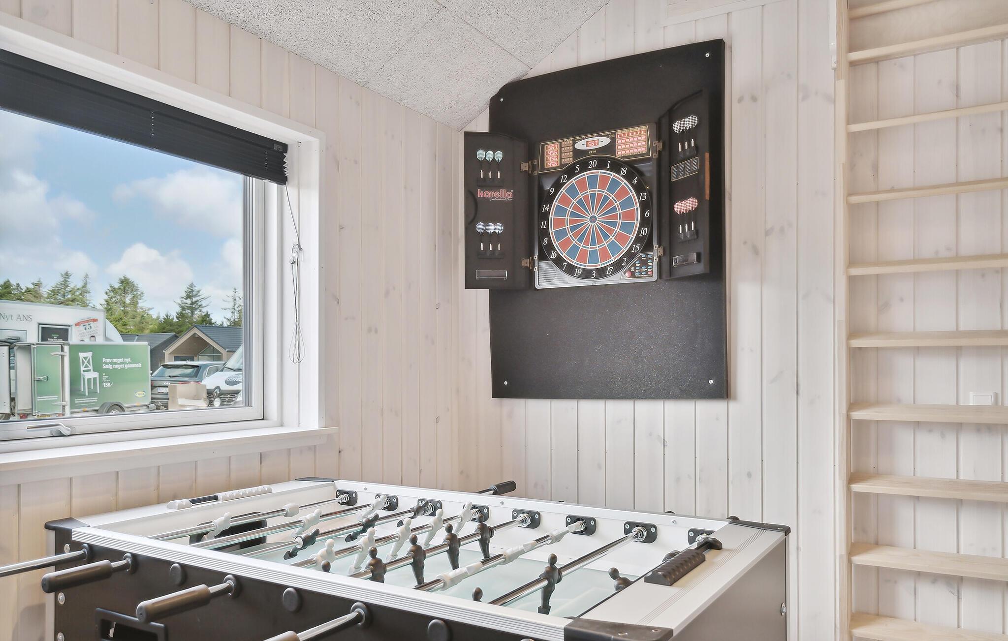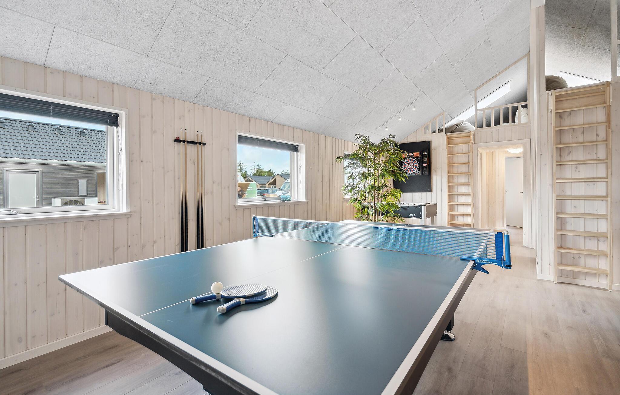 Der er lagt op til en herlig ferie for børn og voksne, som kan boltre sig frit i dette store, skønne feriehus. Huset har moderne, smagfulde indretningsløsninger og lækre faciliteter, så her kommer ingen til at mangle noget. Fyld dagene med hyggelige aktiviteter og afslappende pauser. Noget af det bedste ved huset er indendørspoolen, hvor børnene vil elske rutsjebanen og have det sjovt i timevis. Efter en lang gåtur på stranden kan I slappe af i jacuzzi, tage et varmt fodbad, gå i sauna - og der også er et koldtvandskar til dem, der trænger til et koldt gys. På de kølige dage kan I tænde op i brændeovnen og skrue op for varmen og hyggen i stuen.