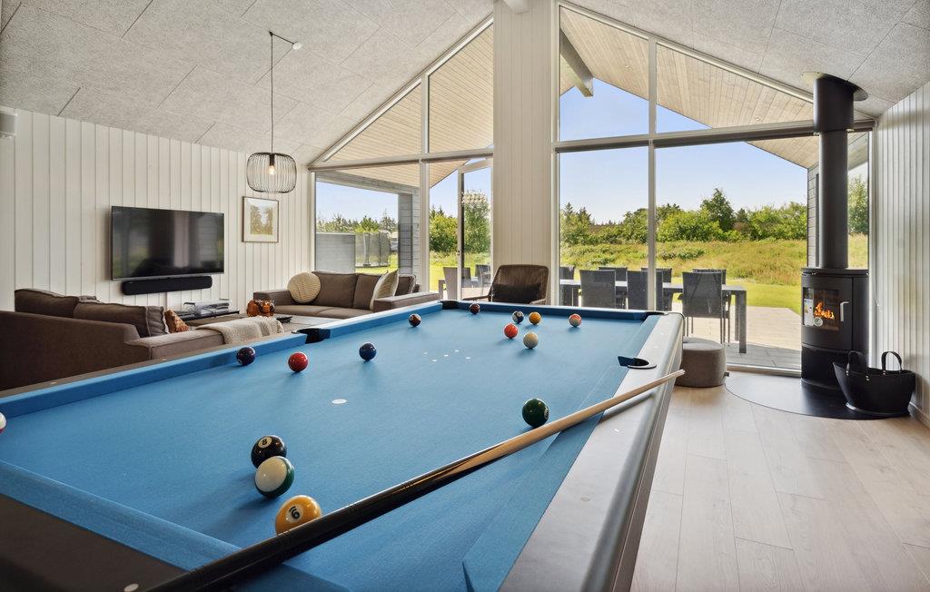 I Kongsmark på Rømø ligger dette flotte feriehus med plads til op til flere familier. Her kan I tilbringe sjove dage i poolen eller nyde varmen i saunaen eller den udendørs jacuzzi efter en lang gåtur i den friske luft. I løbet af dagen kan I udfordre hinanden til et spil billard, bordtennis eller bordfodbold. Hyg jer i det store, skønne terrasseområde, mens de yngste feriegæster leger i haven.