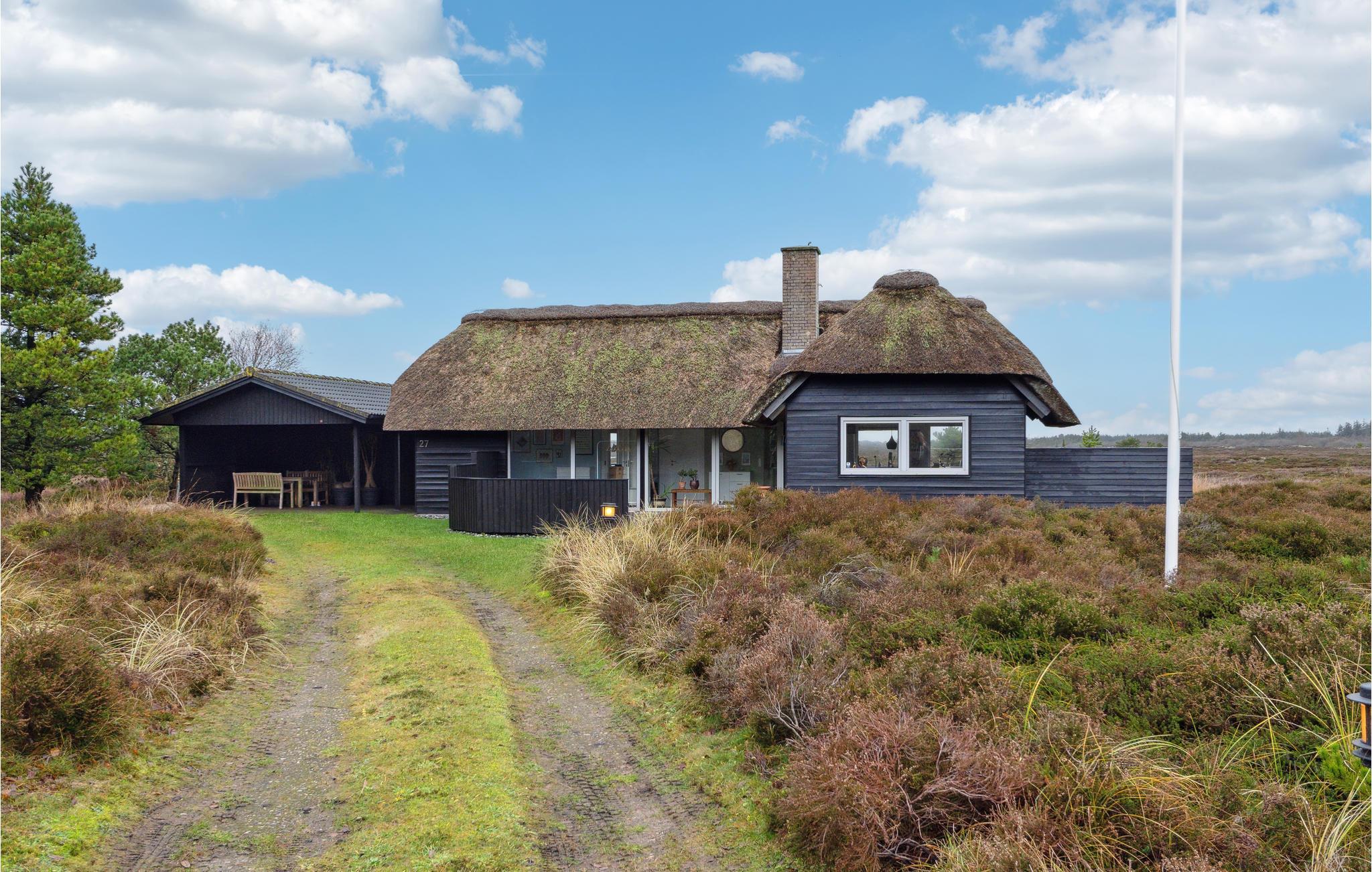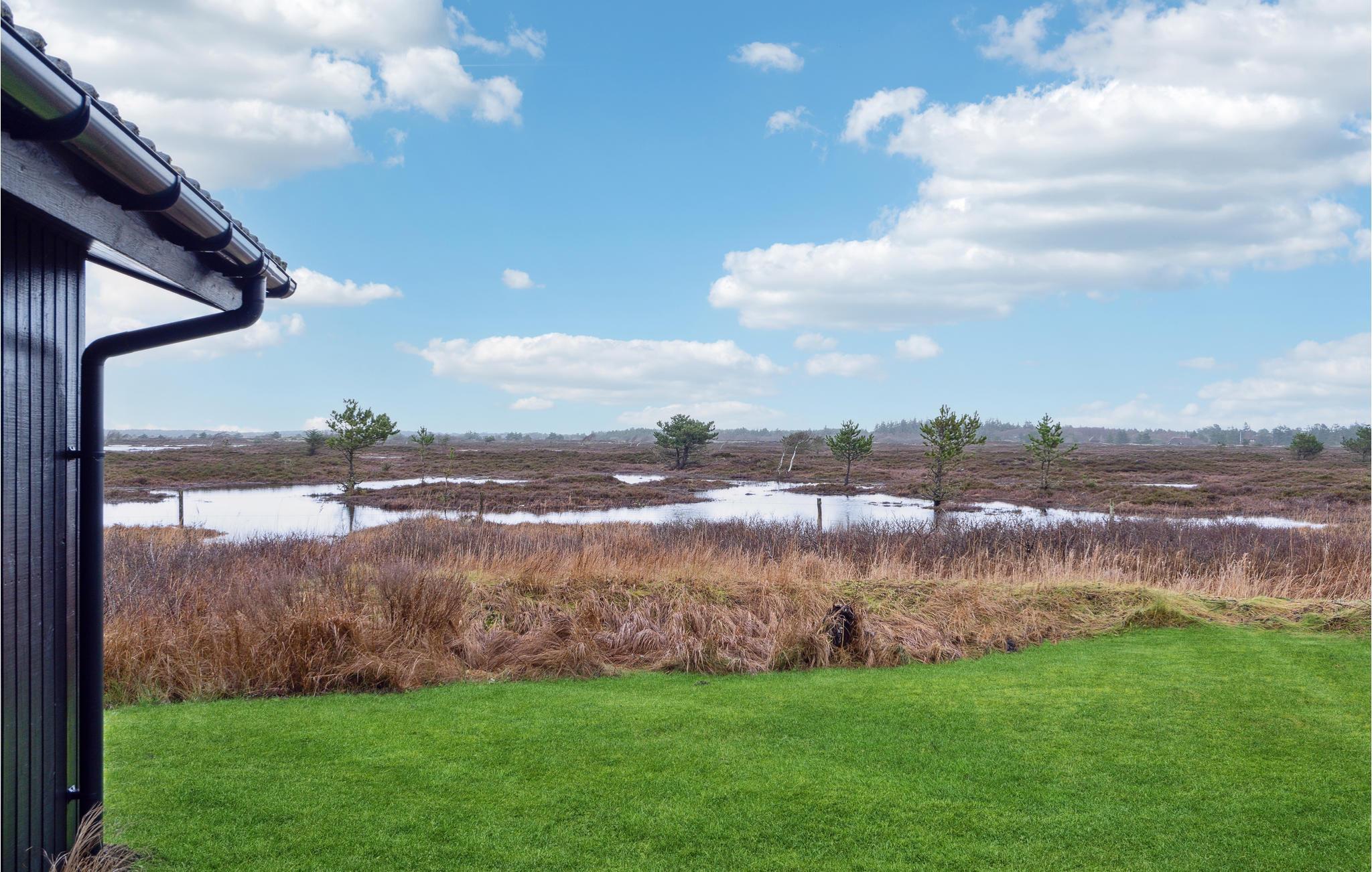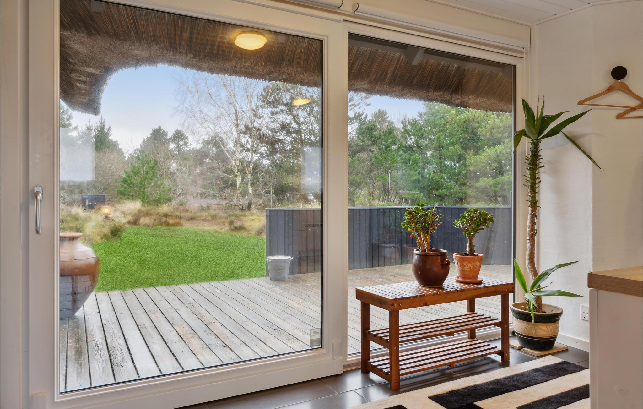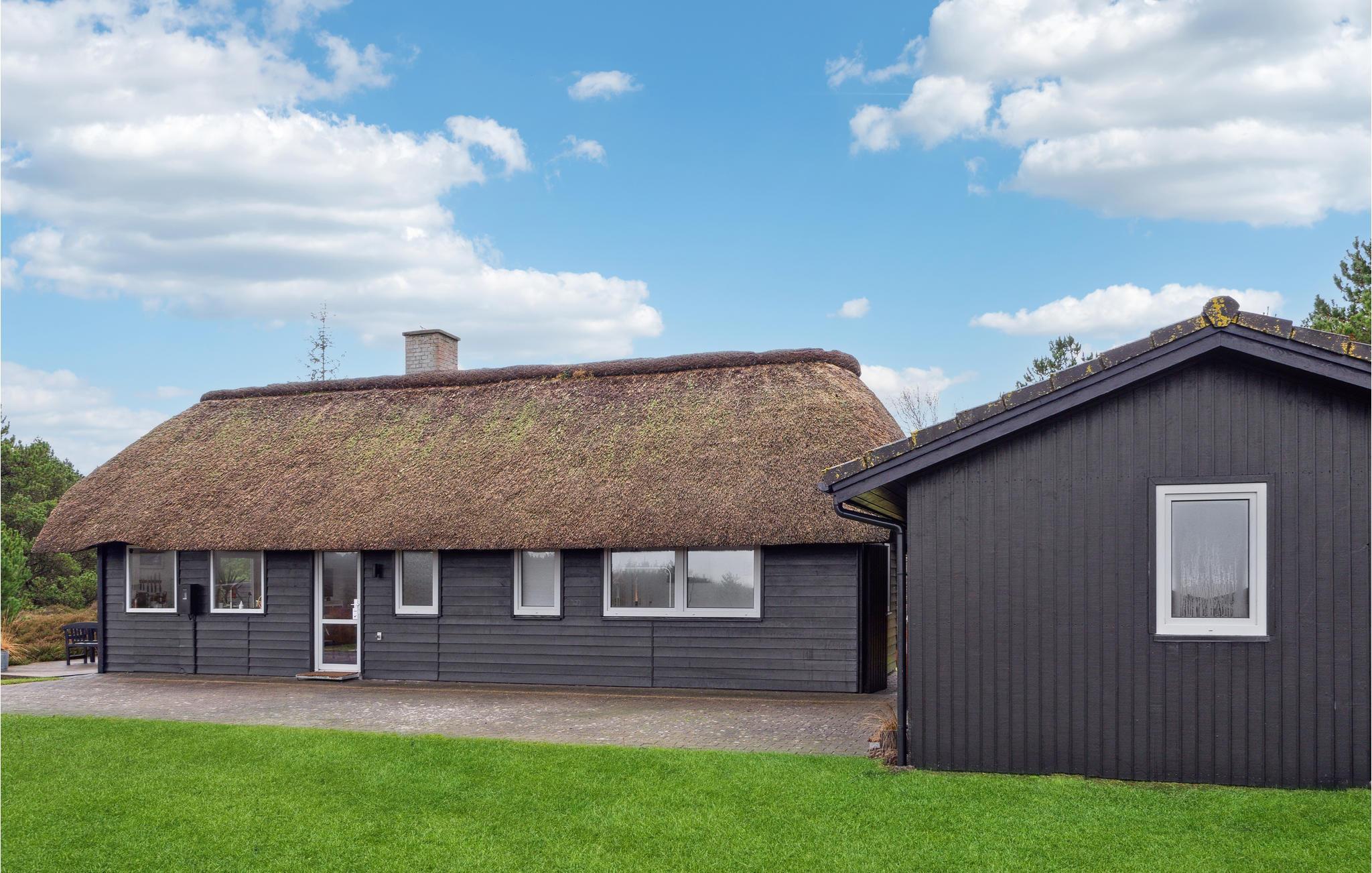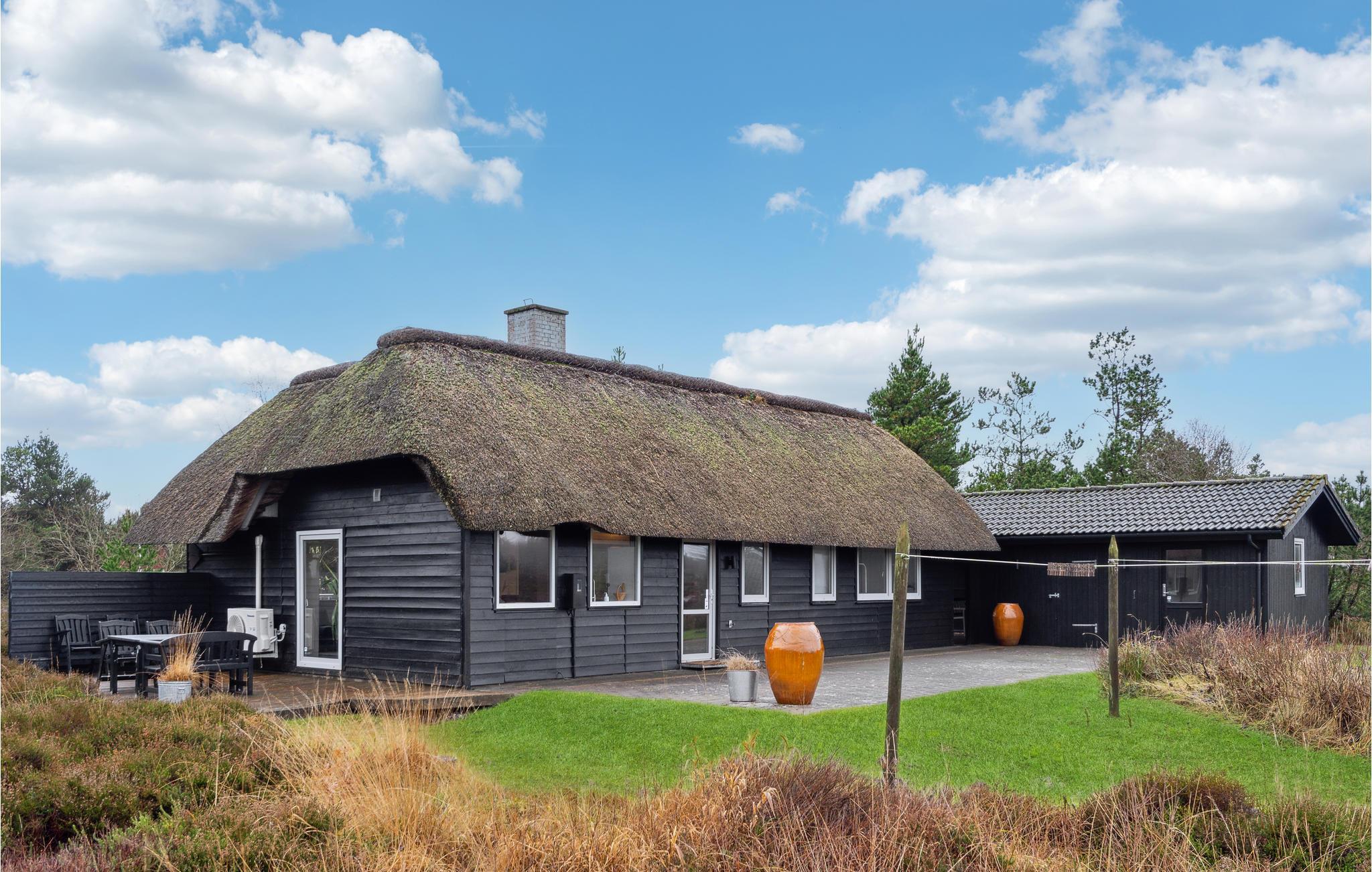 Hyggeligt stråtagshus på Rømø med panoramaudsigt over heden og søer, ideelt til afslapning og naturoplevelser.