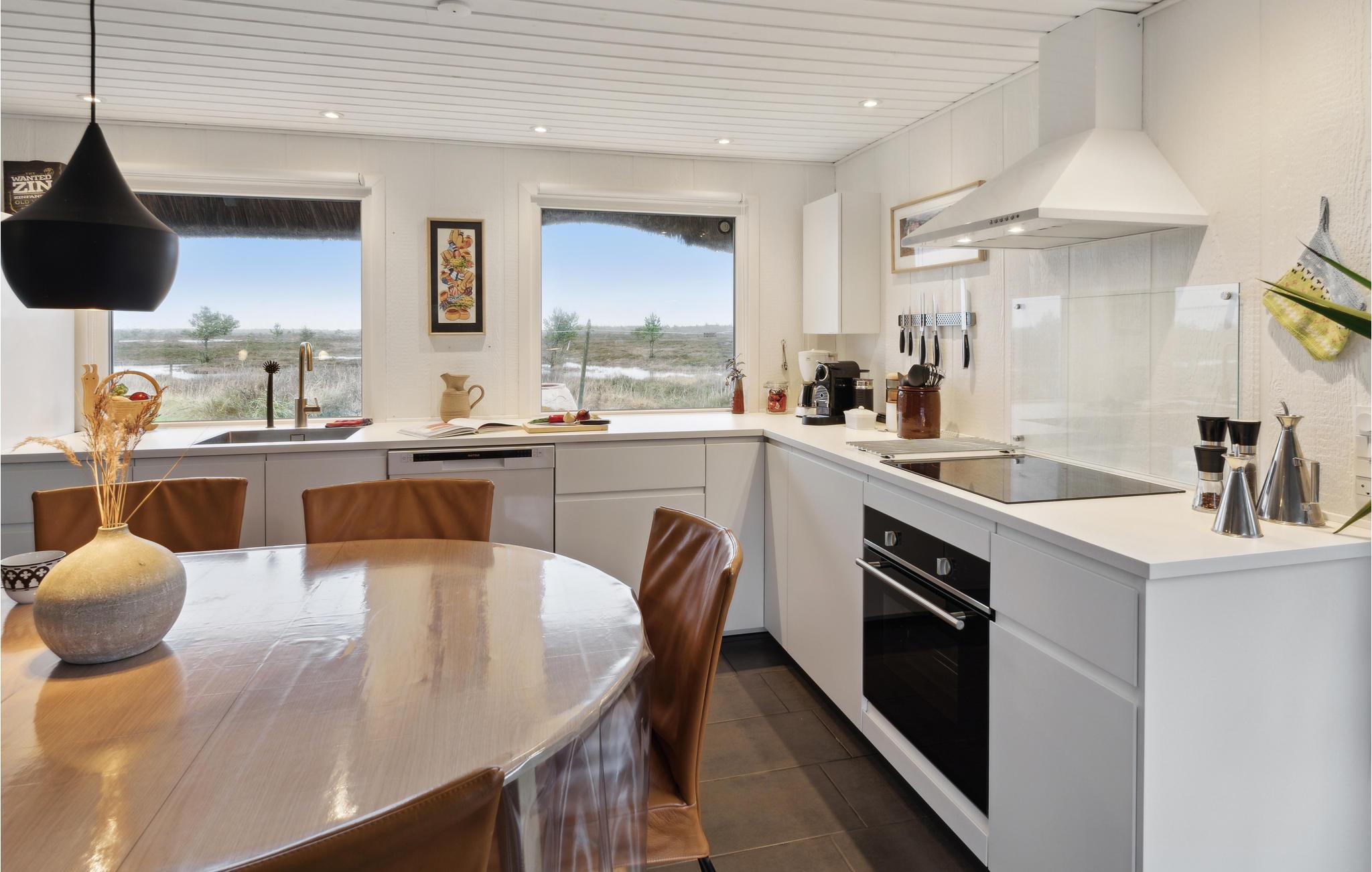 Der er lagt op til en vidunderlig vadehavsferie i dette idylliske hus med en lys og komfortabel indretning. Huset har en varm og hyggelig atmosfære, hvor I straks vil føle jer hjemme og få lyst til at læse en god bog, spille brætspil eller smide nogle lækre retter sammen i køkkenet med udsigt over landskabet. Når aftenen falder på, kan I varme jer ved brændeovnen og se nogle gode film sammen.