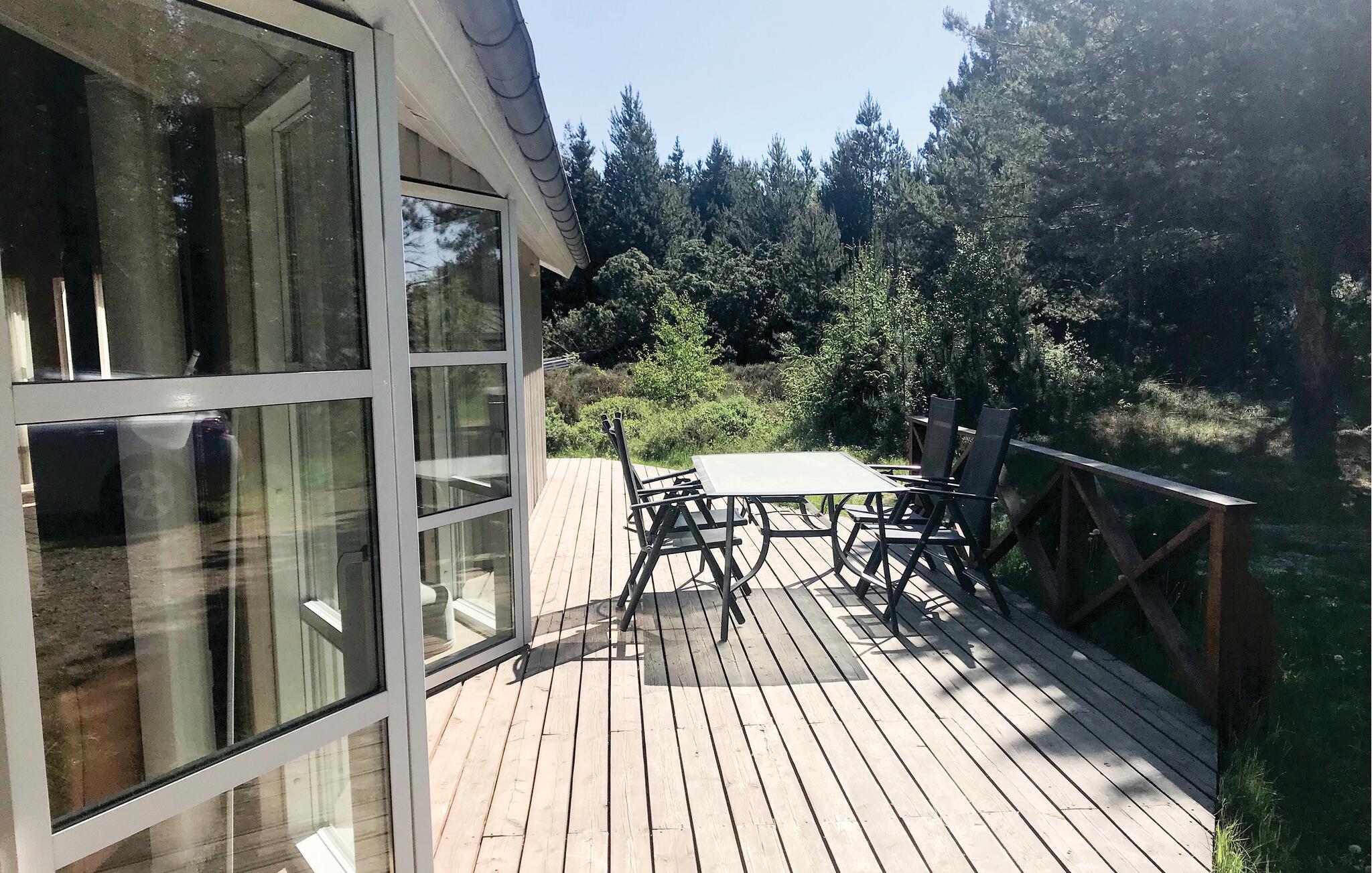Dette meget smukke feriehus er opført i træ med store flotte vinduespartier. På terrasserne kan I nyde solen i fred og ro, da grunden er omkranset af træer. Huset har tre gode soveværelser og en hyggelig hems. Den store stue er smagfuldt indrettet og såvel det praktiske køkken som badeværelserne har gulvvarme. Huset ligger centralt på øen. Der er næsten samme afstand til den bredde sandstrand ved Lakolk som til Vadehavet. I de senere år er der anlagt mange cykelstier på øen - medbring cykler eller book dem sammen med huset.