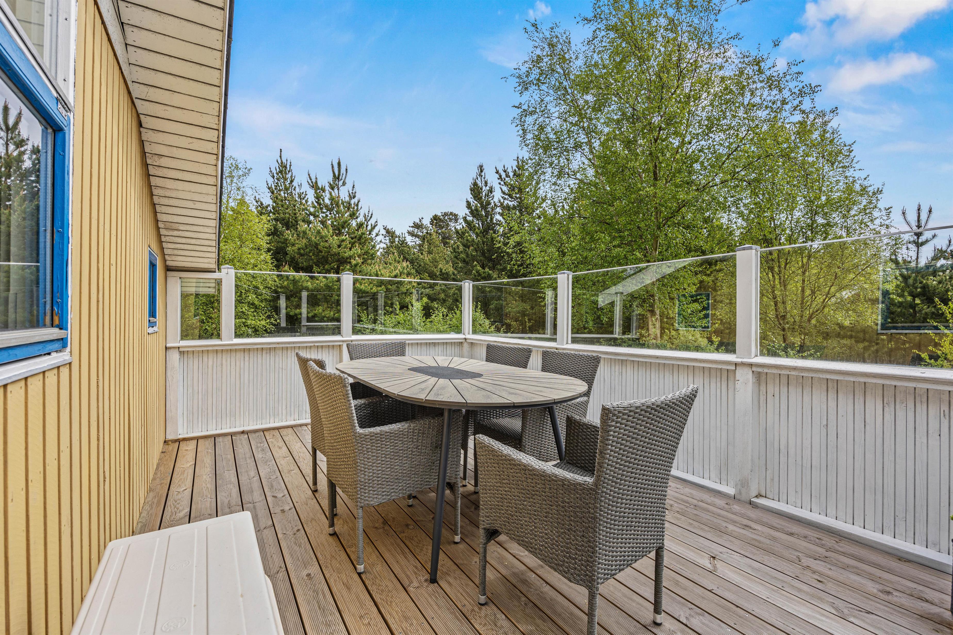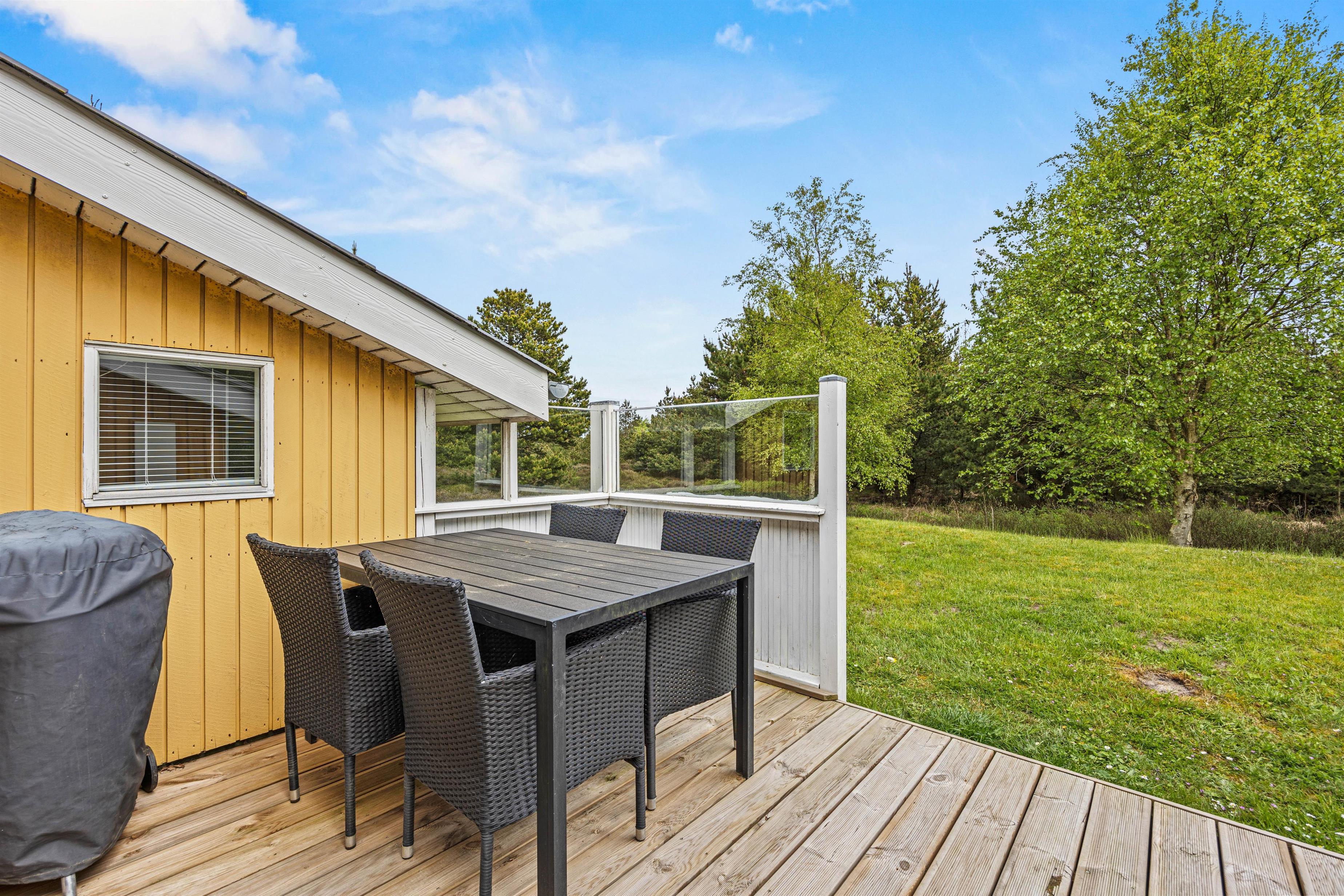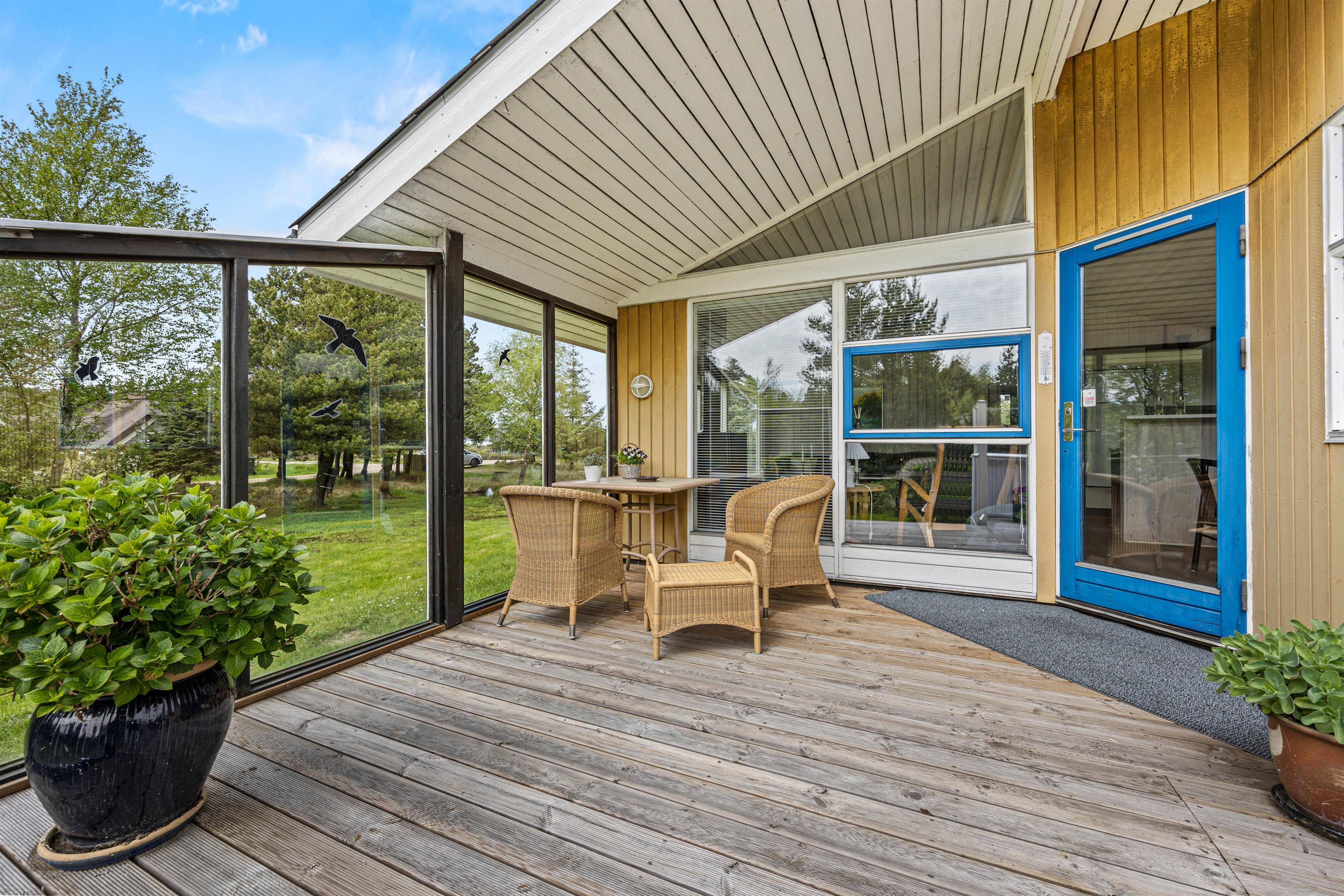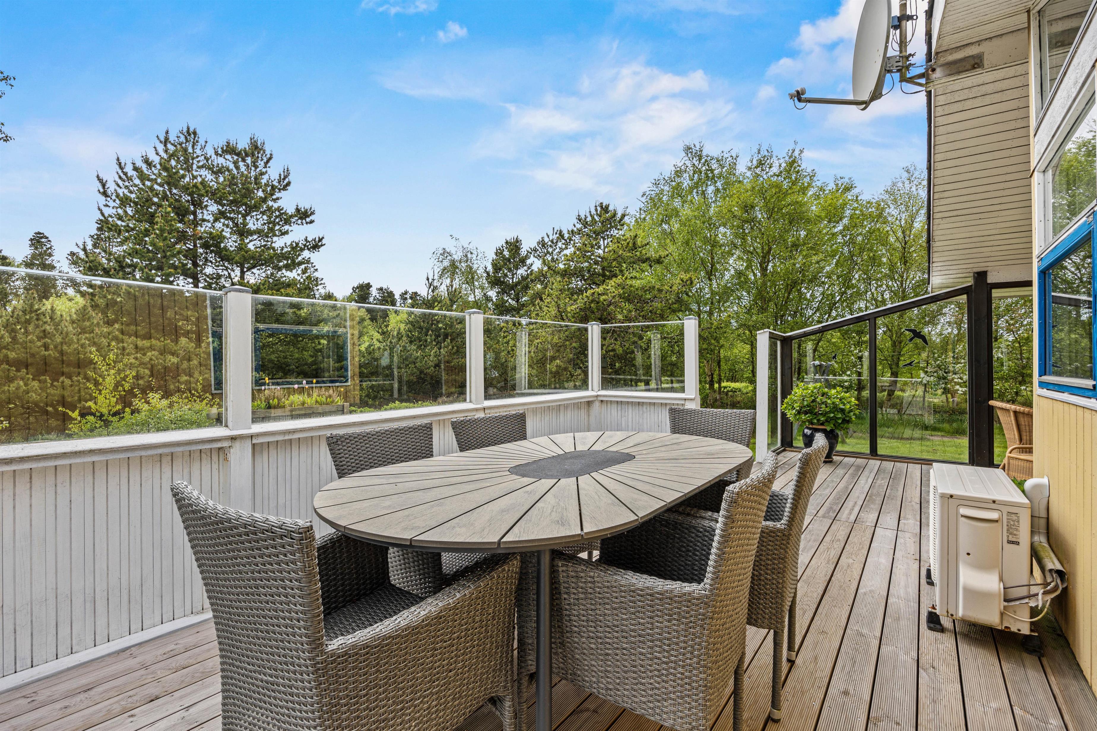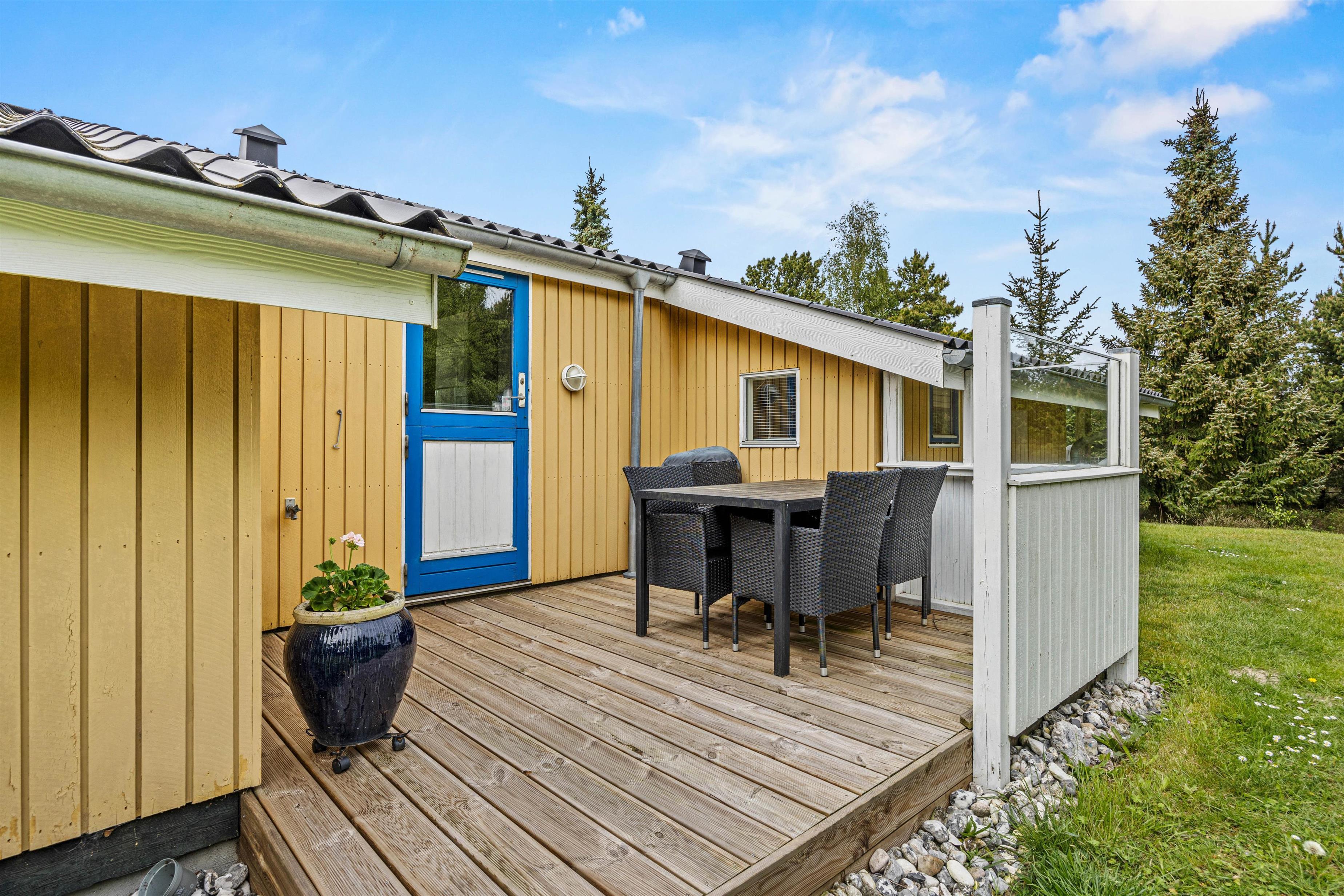 Udenfor er der tre skønne terrasser, hvor I kan nyde fridagene i den friske luft. Fra stuen træder I direkte ud på den store flotte træterrasse mod syd. Terrassen er delvist overdækket og rigtig godt afskærmet, så I kan sidde i ly for vinden. Find et dejligt spot i solen med yndlingsbogen, mens børnene tumler rundt på den grønne græsplæne. Her er plads til alt fra kongespil til fodbold, og gyngestativet kan familiens mindste få glæde af.