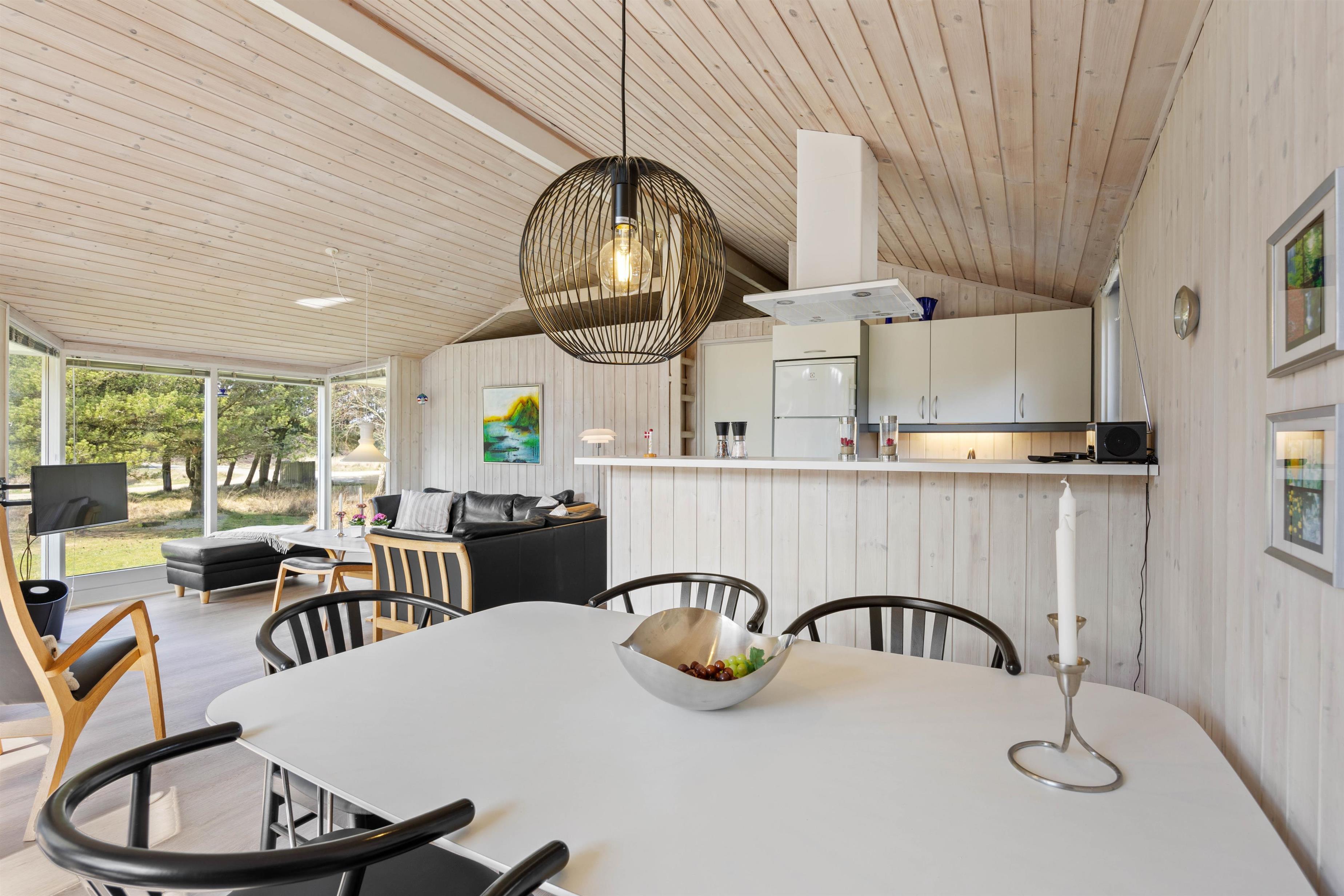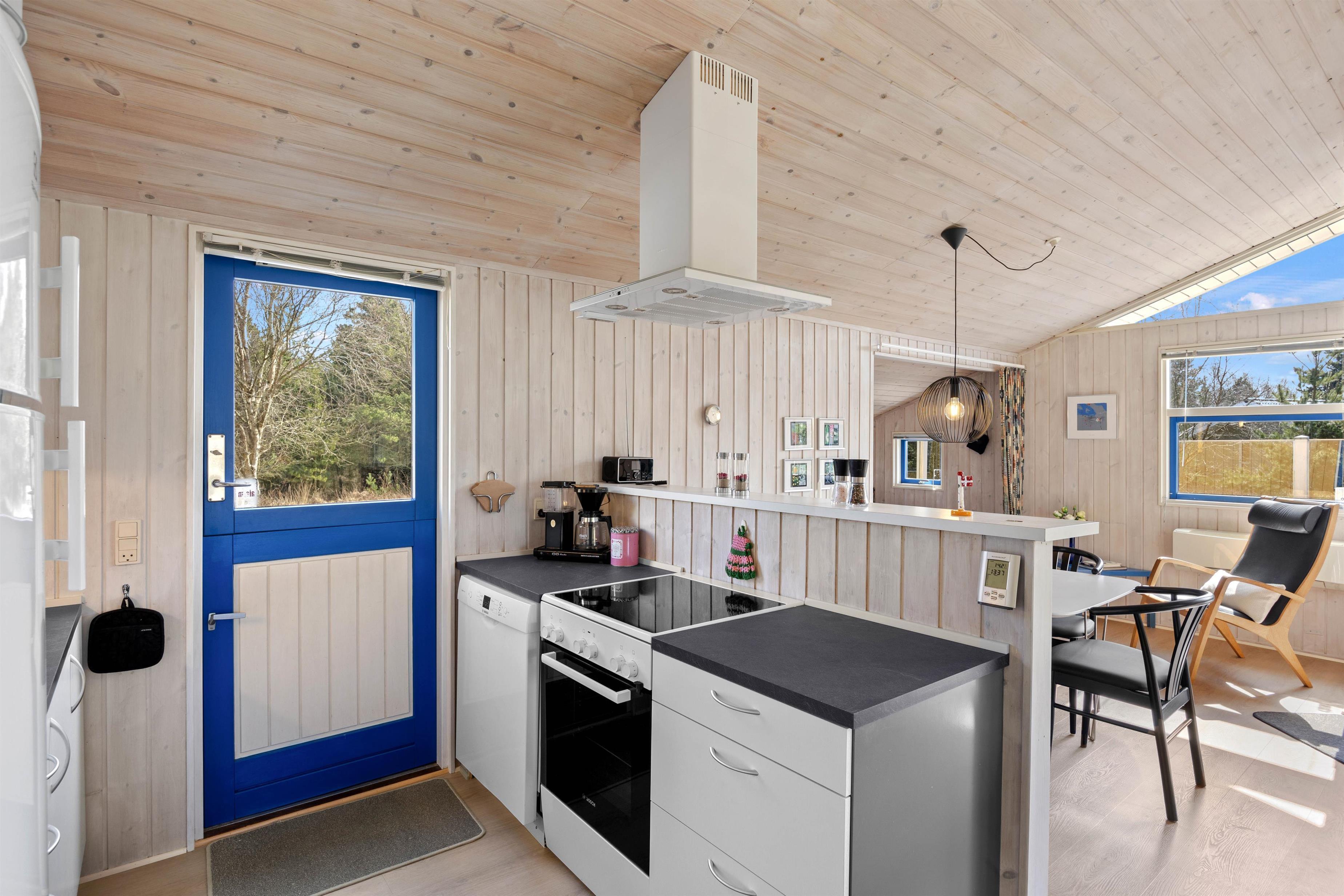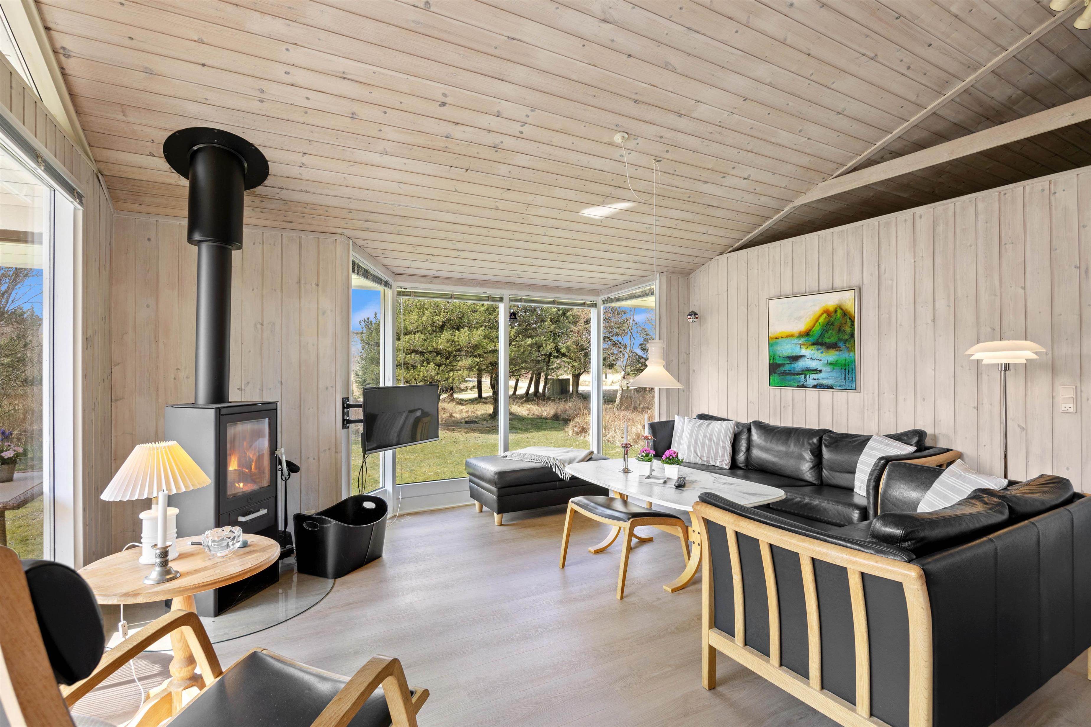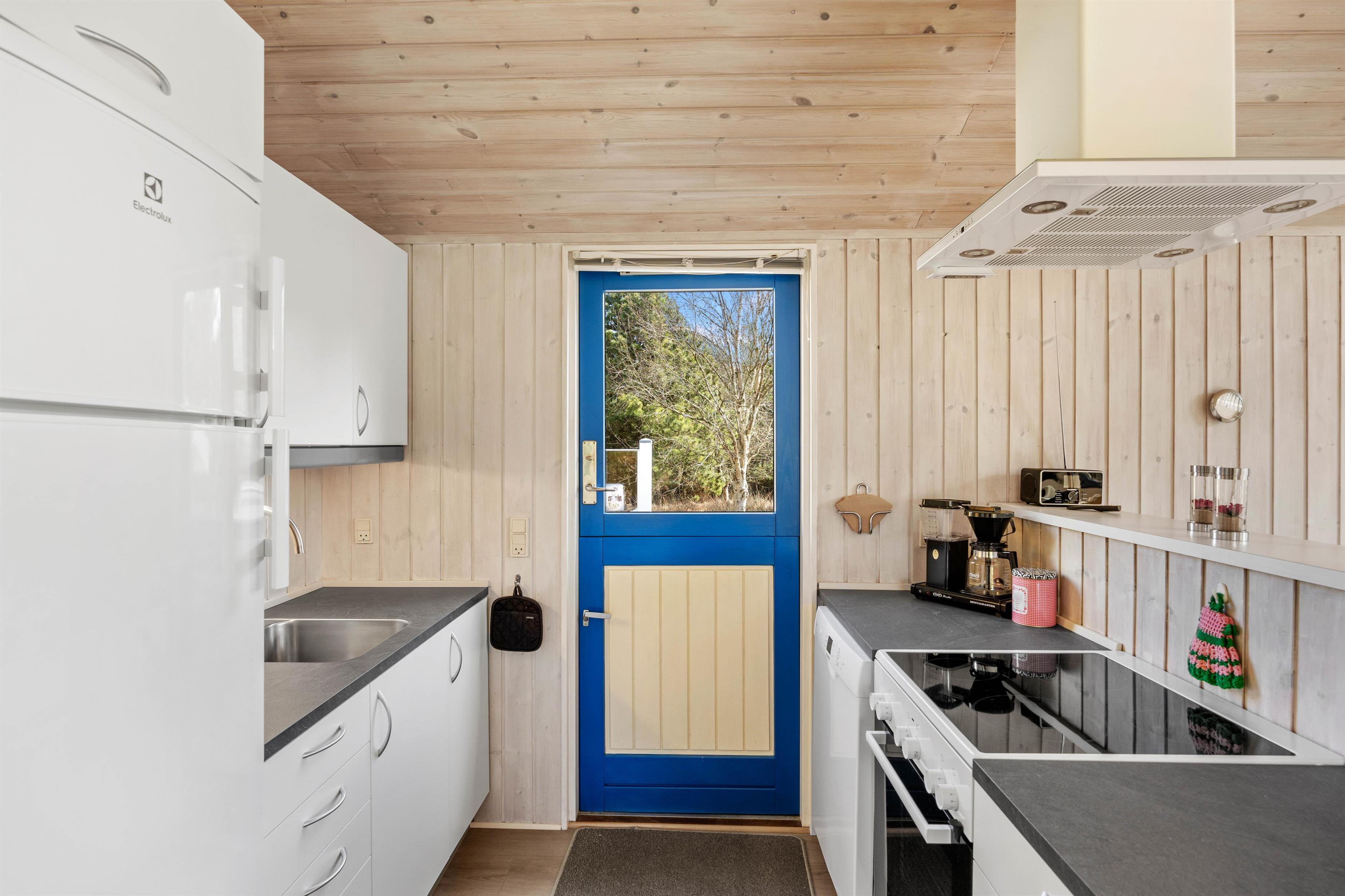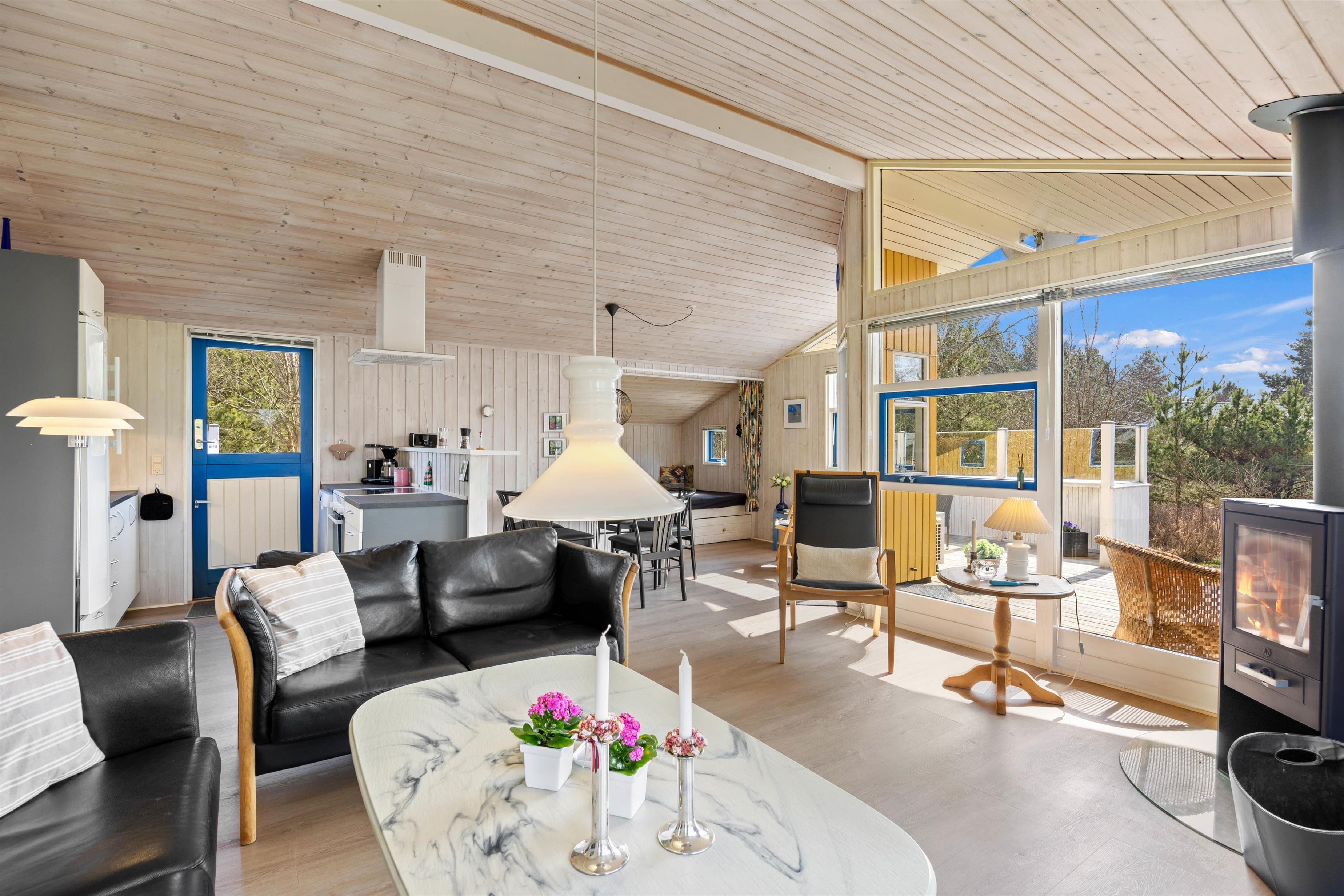 Feriehuset på Godthåbsvej 10 er egnet til seks feriegæster. Her er tre gode soveværelser med indbyggede skabe og et åbent køkkenalrum til familielivet med en hyggelig atmosfære. Indretningen er lys og med komfortable møbler, og de store vinduer inviterer dagslyset og naturen indenfor. Det velfungerende køkken med opvaskemaskine gør madlavningen til en leg, og i sofaen kan I rigtig slappe af og nyde fridagene. I stuehjørnet finder i brændeovnen, der holder jer varme på de køligere dage.