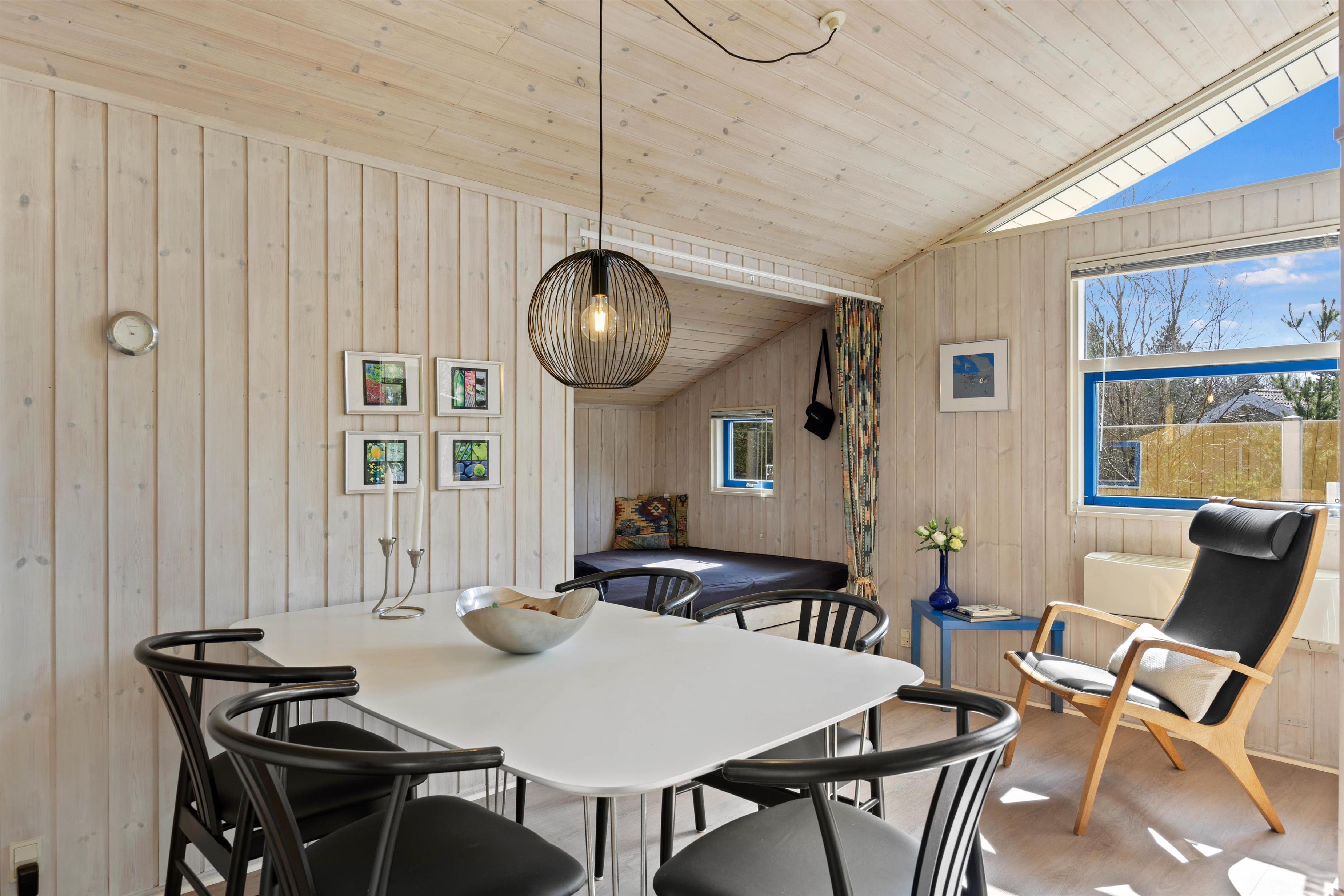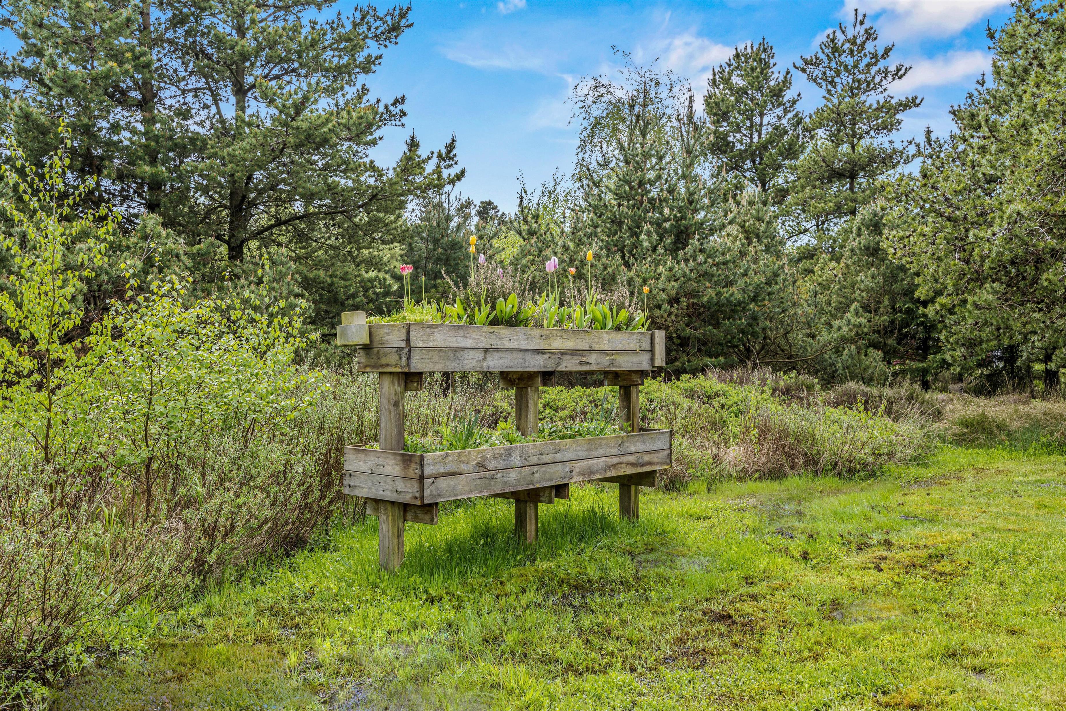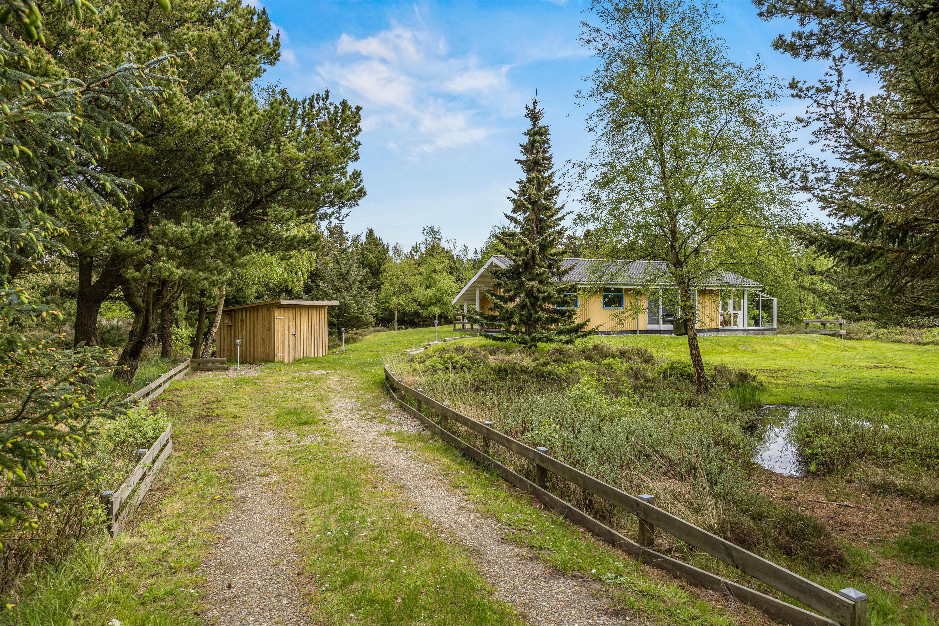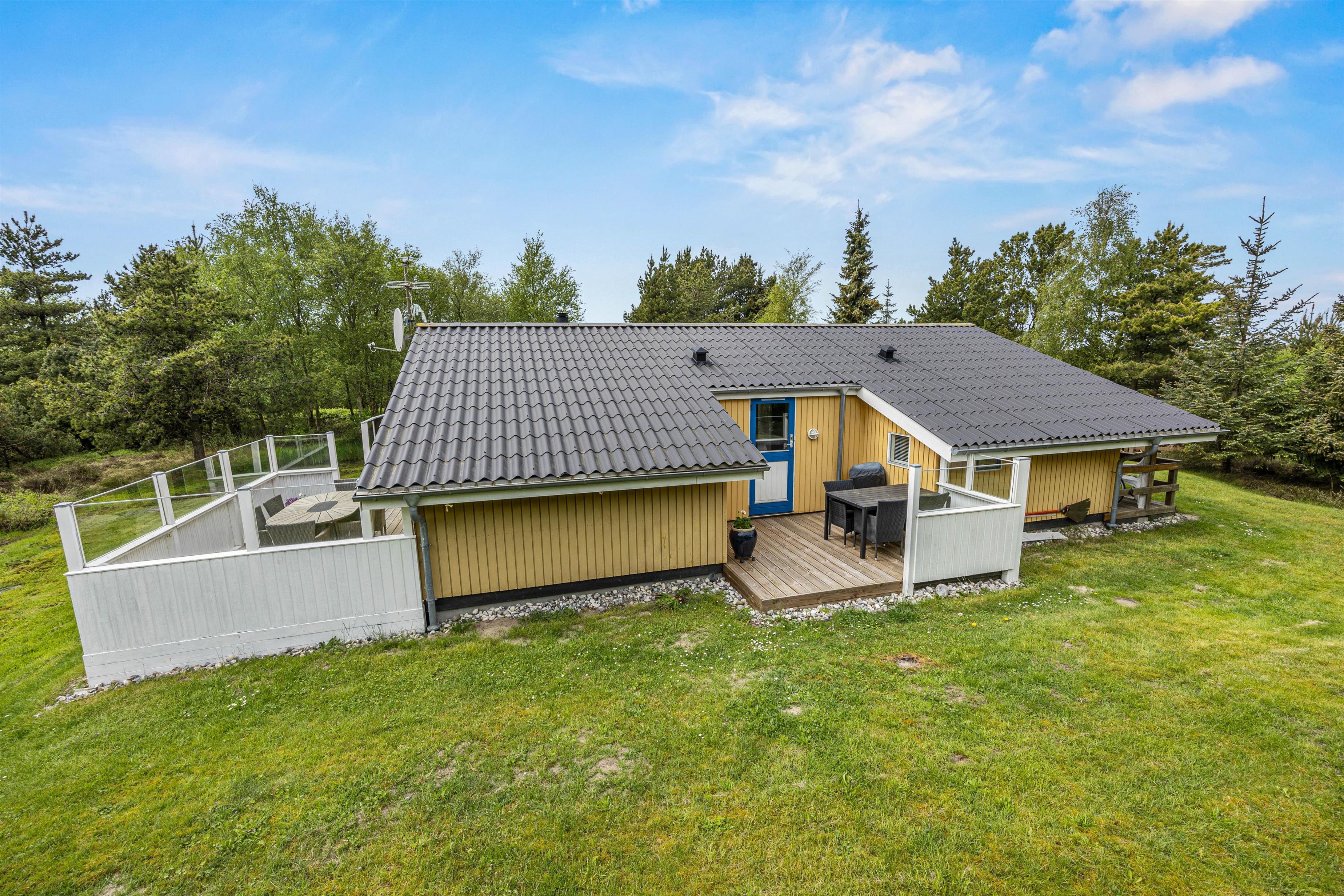 Hjertelig velkommen i dette velholdte feriehus med sauna og spa. Sommerhuset er beliggende på en smuk afskærmet grund med stor have på en rolig blind vej. Lige ved siden af ligger en fredet plantage med skov og hede. Den attraktive strand ved Lakolk ligger kun ca. 2 km væk.